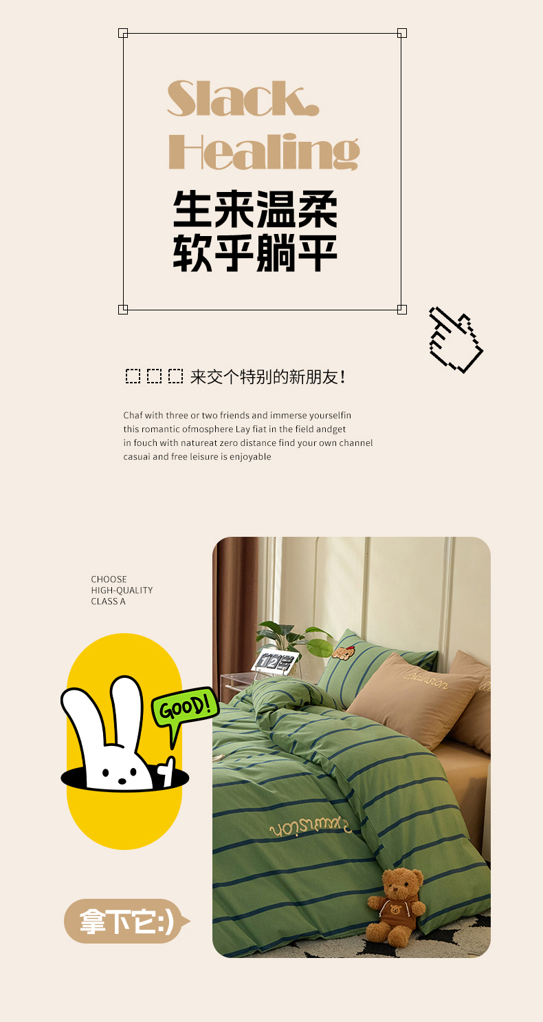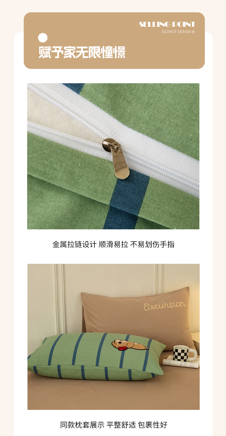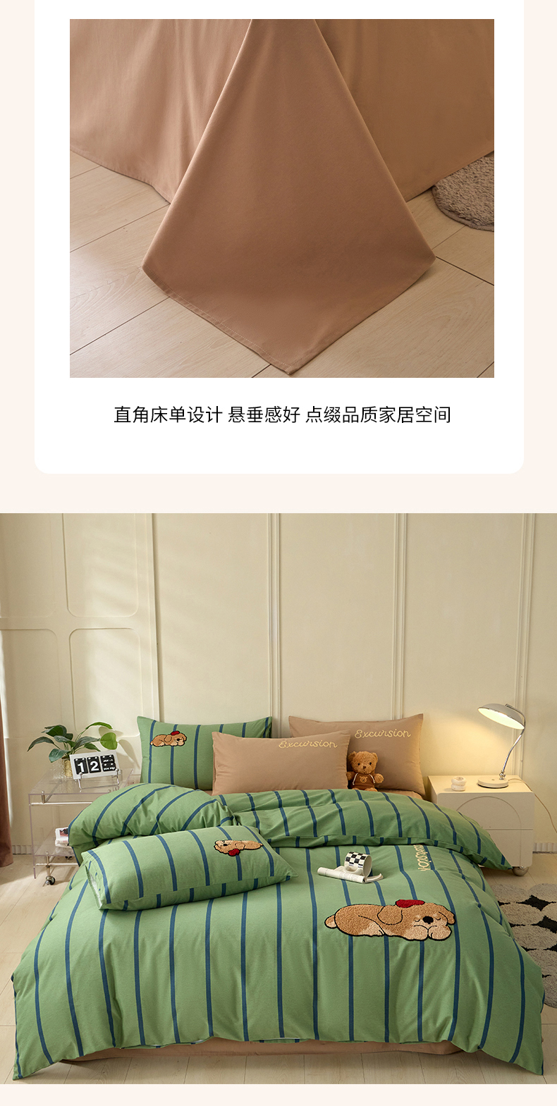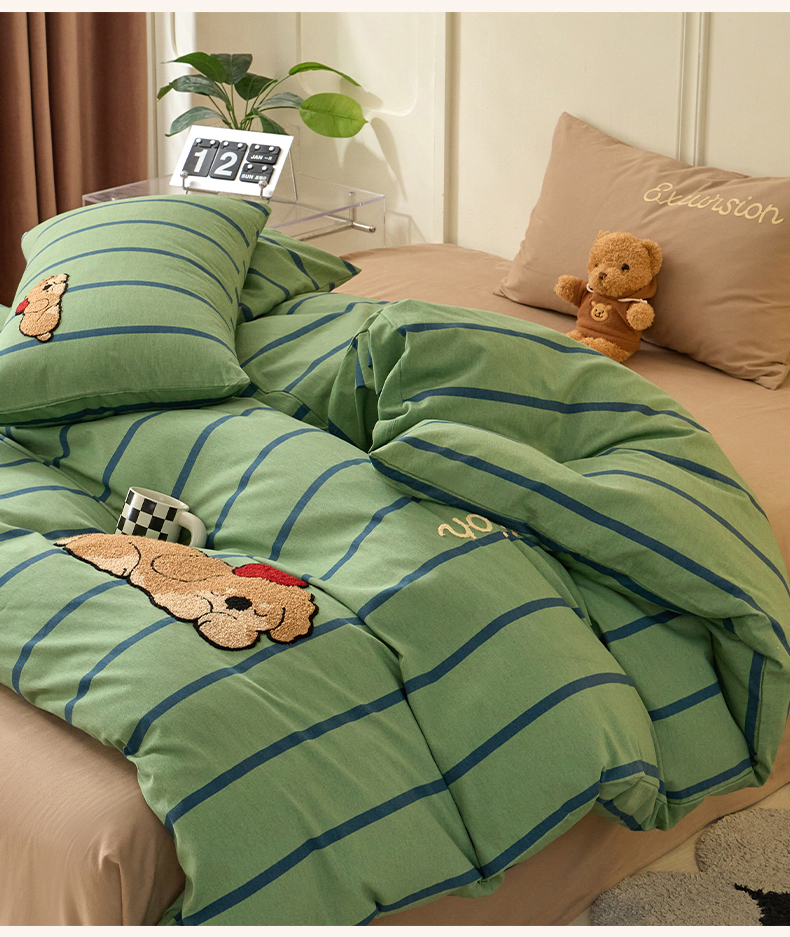 当前位置: 91家纺网 > 商品网购 > 床品套件 > 四件套 > 普通磨毛四件套 > 蓝邻家纺 2025新款全棉磨毛卡通刺绣款四件套--毛巾绣系列 瑞瑞-绿
