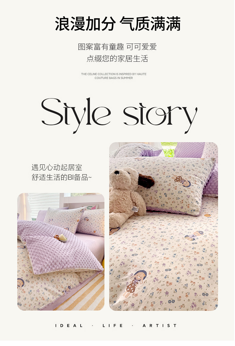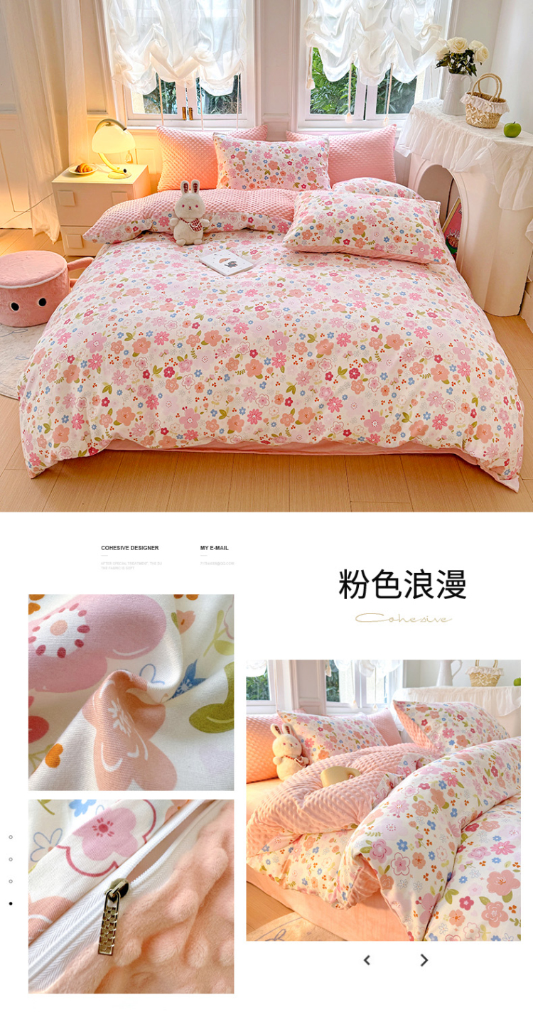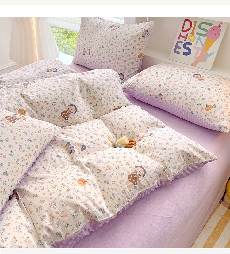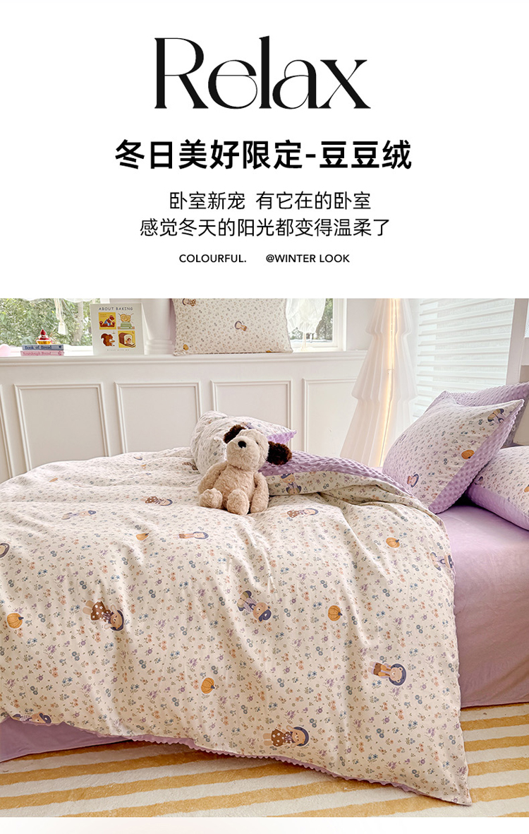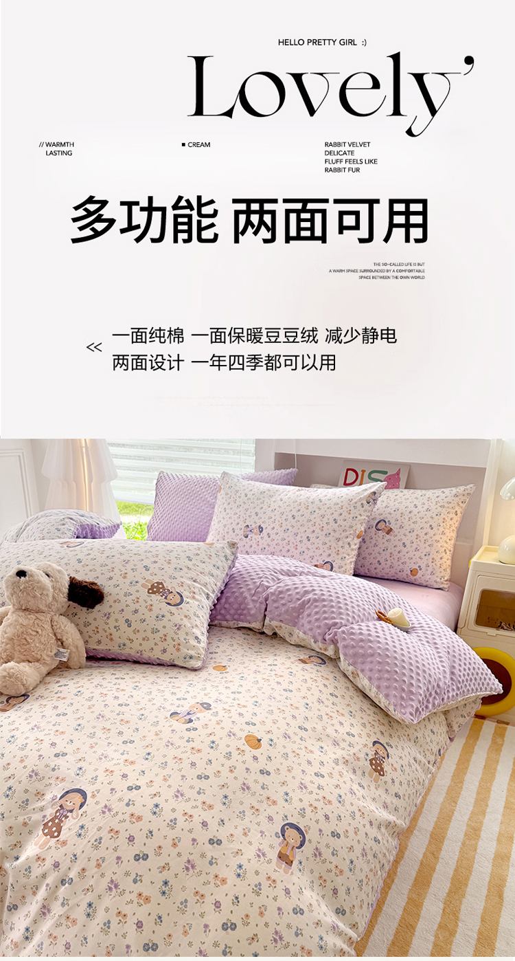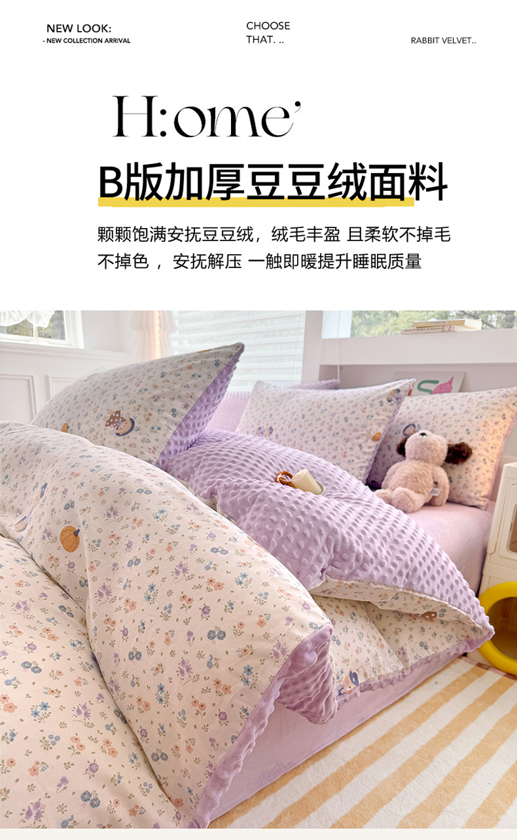 当前位置: 91家纺网 > 商品网购 > 床品套件 > 四件套 > 全棉普通四件套 > 丫丫家纺 2025学生季全棉高克重豆豆绒三四件套加厚保暖婴儿绒牛奶绒单被套单人双人被套加大号棉加绒三四件套 碎花熊兔
