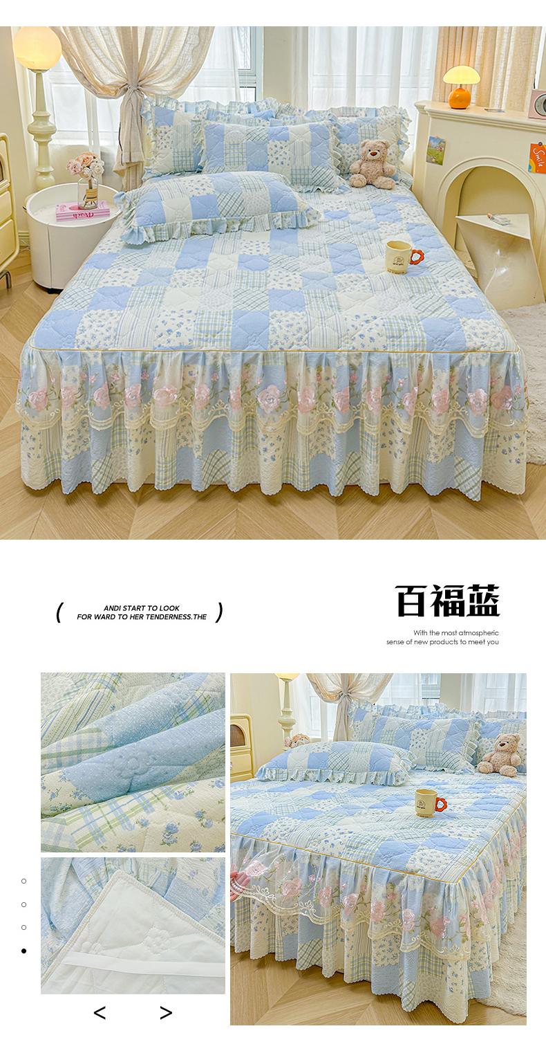 • 91家纺网 家纺一手货源 找家纺 (总)艾裙海 2025秋冬新款木棉皱皱双层纱夹棉床裙系列单品床裙,百福蓝,繁华碟影,黑色波点,可爱小女孩,兰桂芳绿,盛夏光年,素碟吟,紫藤花语
