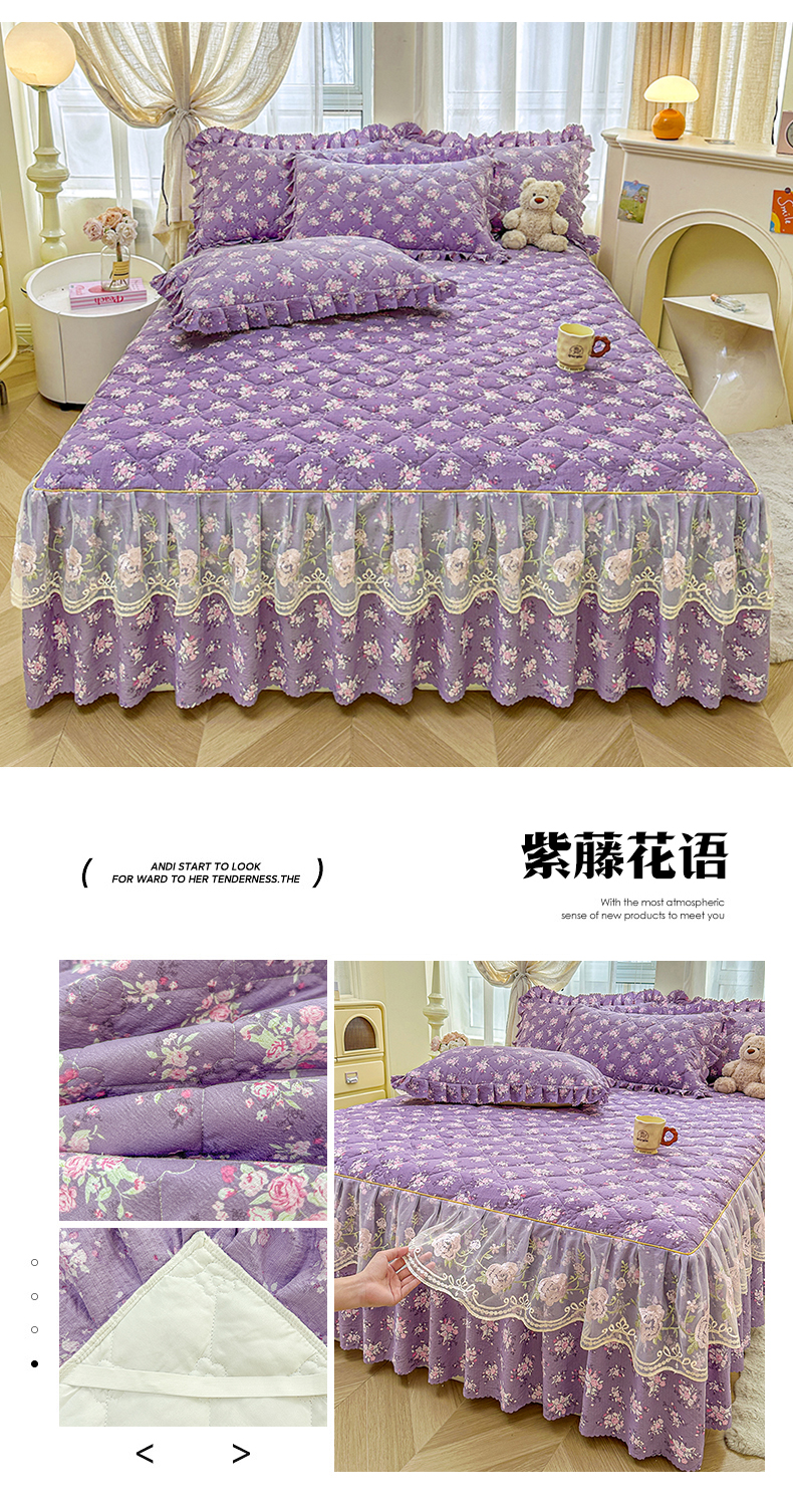 (总)艾裙海 2025秋冬新款木棉皱皱双层纱夹棉床裙系列单品床裙,百福蓝,繁华碟影,黑色波点,可爱小女孩,兰桂芳绿,盛夏光年,素碟吟,紫藤花语