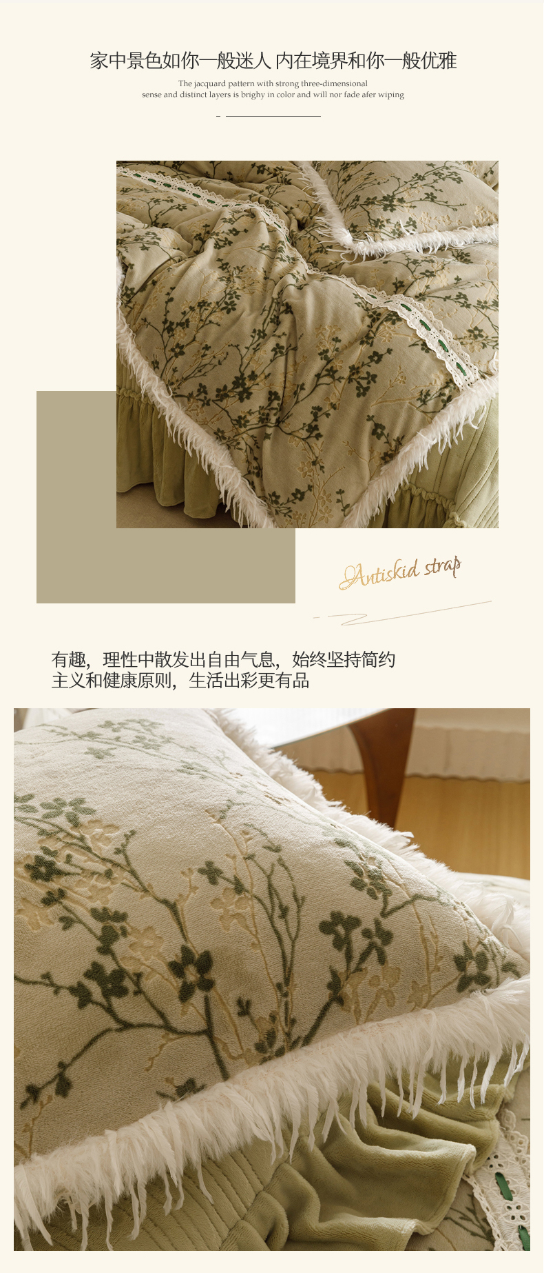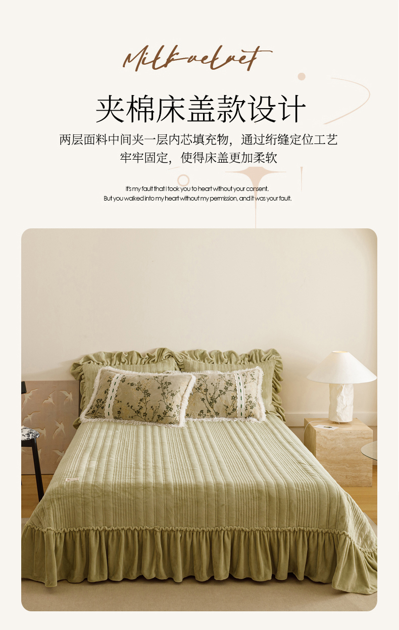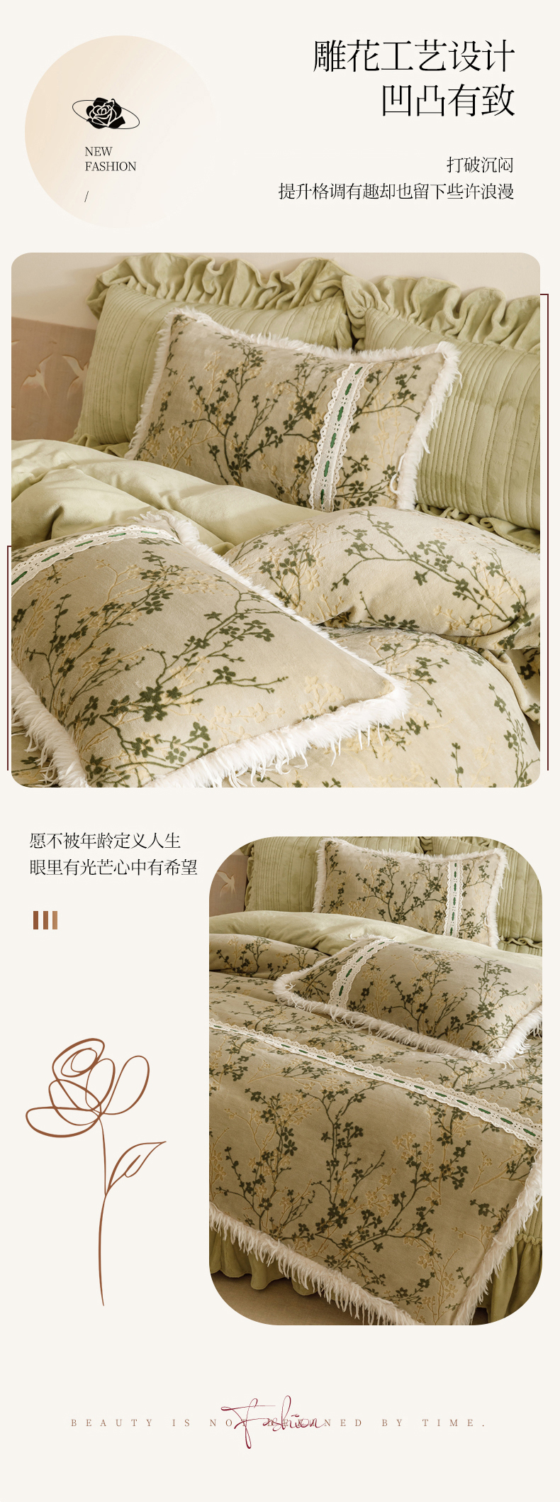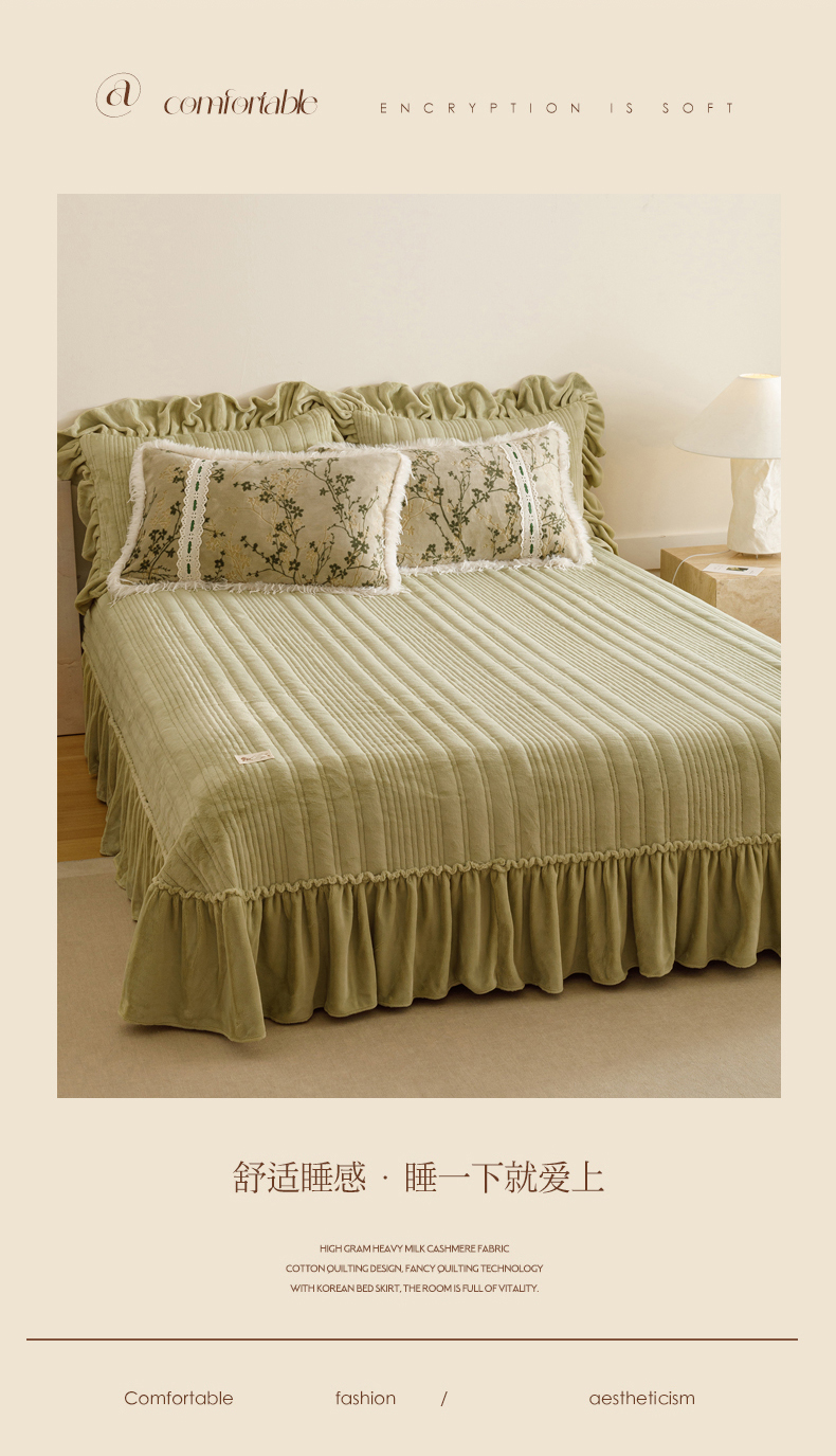 当前位置: 91家纺网 > 商品网购 > 床品套件 > 四件套 > 牛奶绒四件套 > 菊上家纺 2025新款高克重5D雕花牛奶绒时尚仿皮草国潮风床盖四件套-羽妃系列 羽妃-豆绿