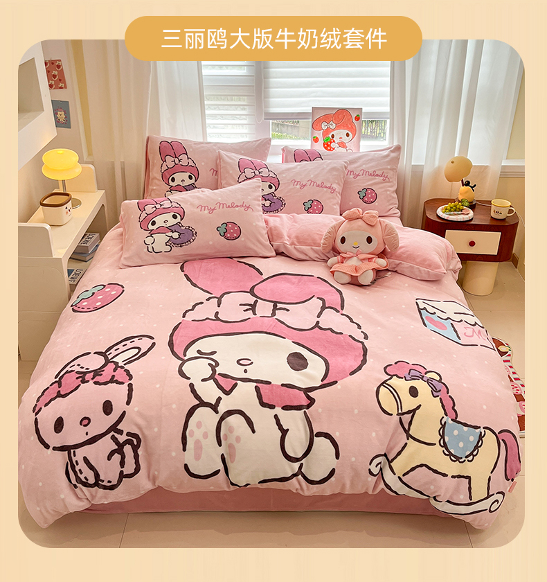当前位置: 91家纺网 > 商品网购 > 床品套件 > 四件套 > 牛奶绒四件套 > 金爱家 2025新品大版卡通平网数码印花加厚高克重牛奶绒皮卡丘系列四件套 绒大版-木马美乐蒂