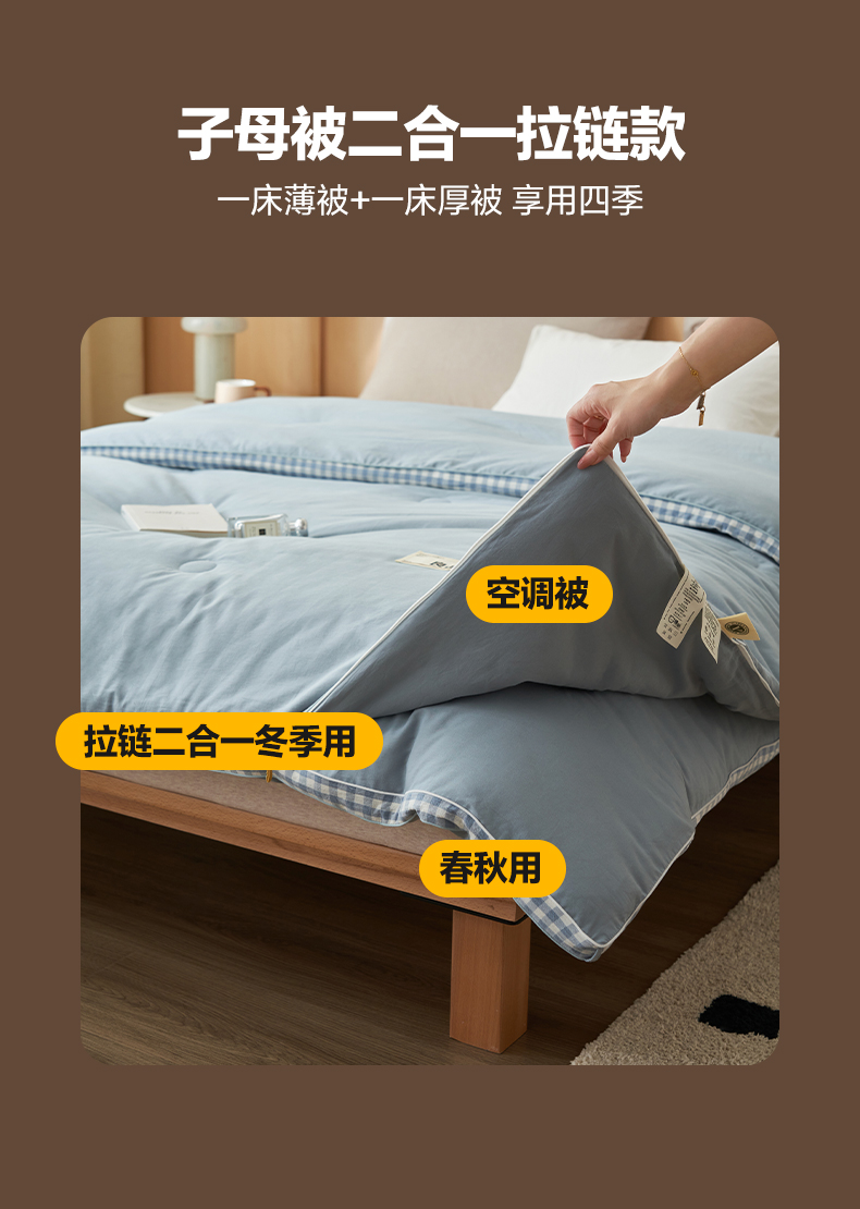 当前位置: 91家纺网 > 商品网购 > 被子 > 冬被 > 子由家居 2025新款无印风棋盘格立体大豆子母被被子被芯 棋盘格子母被-浅蓝