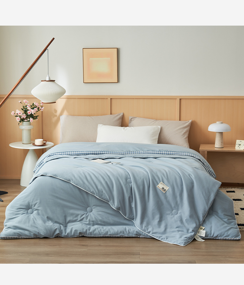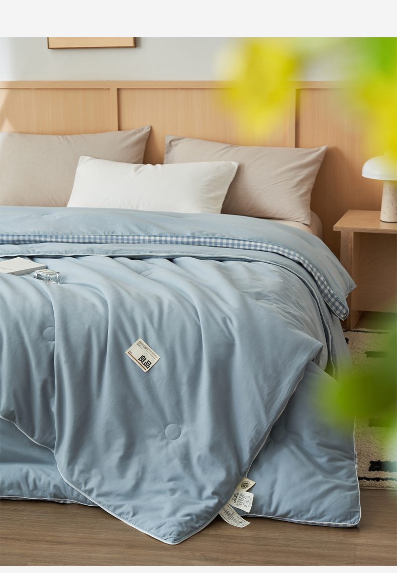 • 91家纺网 家纺一手货源 找家纺 子由家居 2025新款无印风棋盘格立体大豆子母被被子被芯 棋盘格子母被-浅蓝