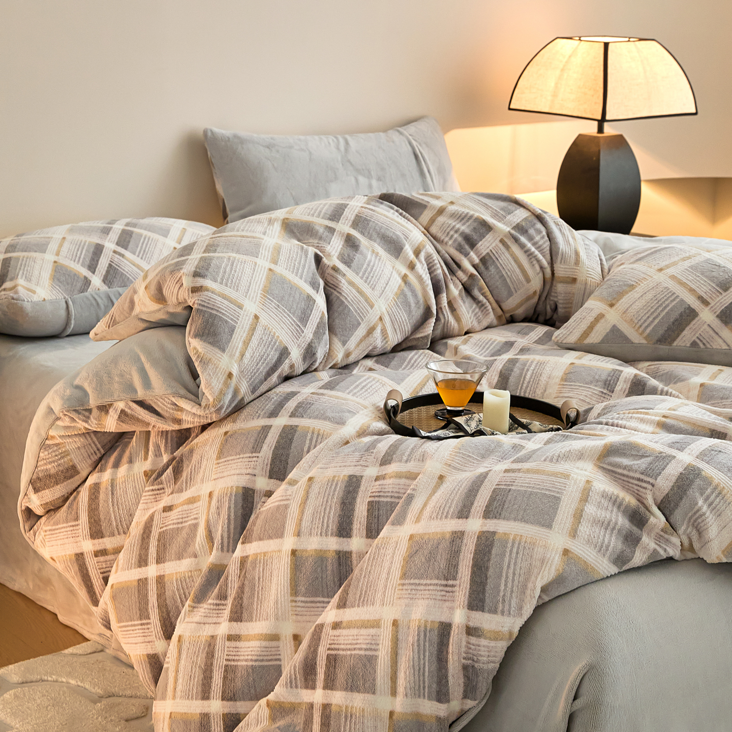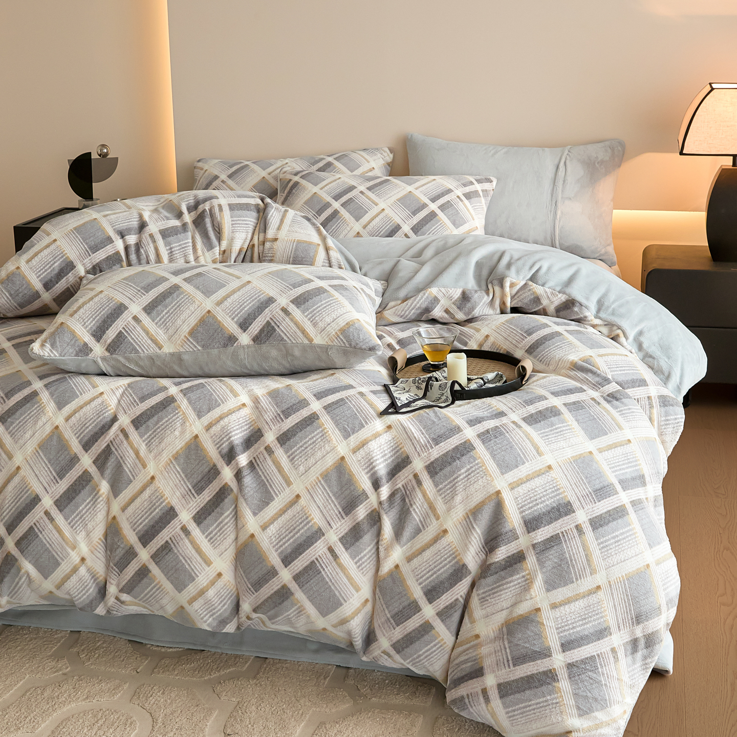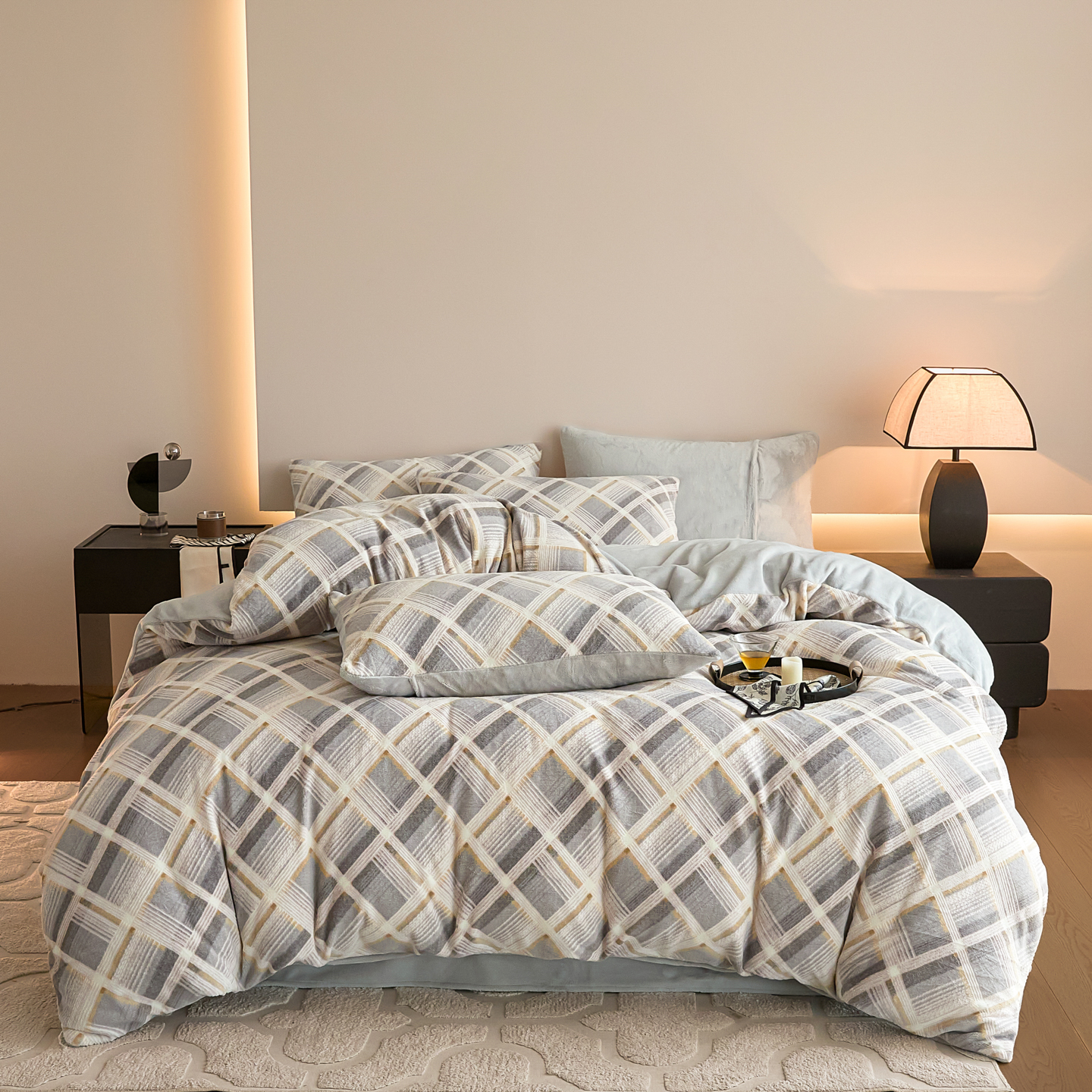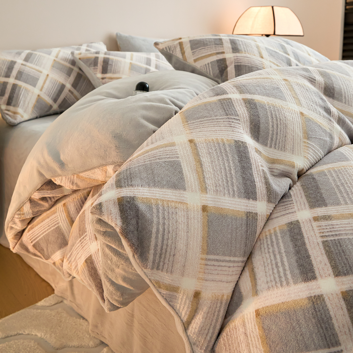 当前位置: 91家纺网 > 商品网购 > 床品套件 > 四件套 > 牛奶绒四件套 > 言一 2025新款A类全消光超柔260G保暖加厚立体雕花牛奶绒四件套 沁暮-灰