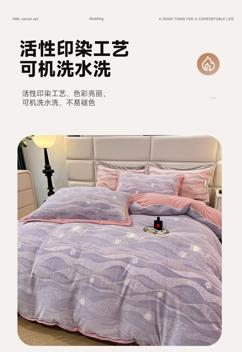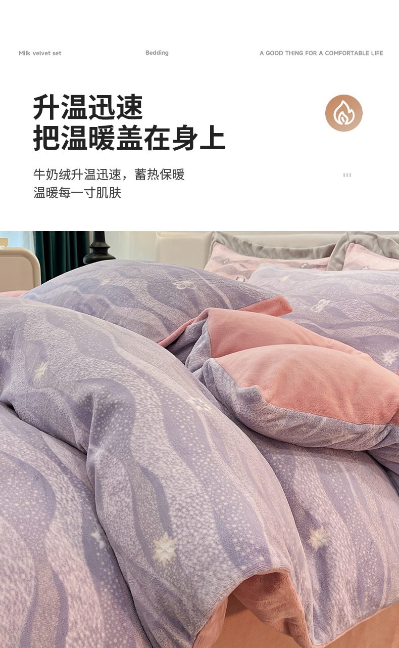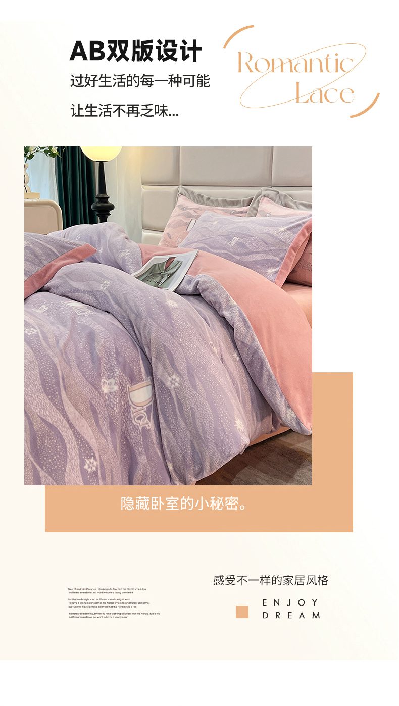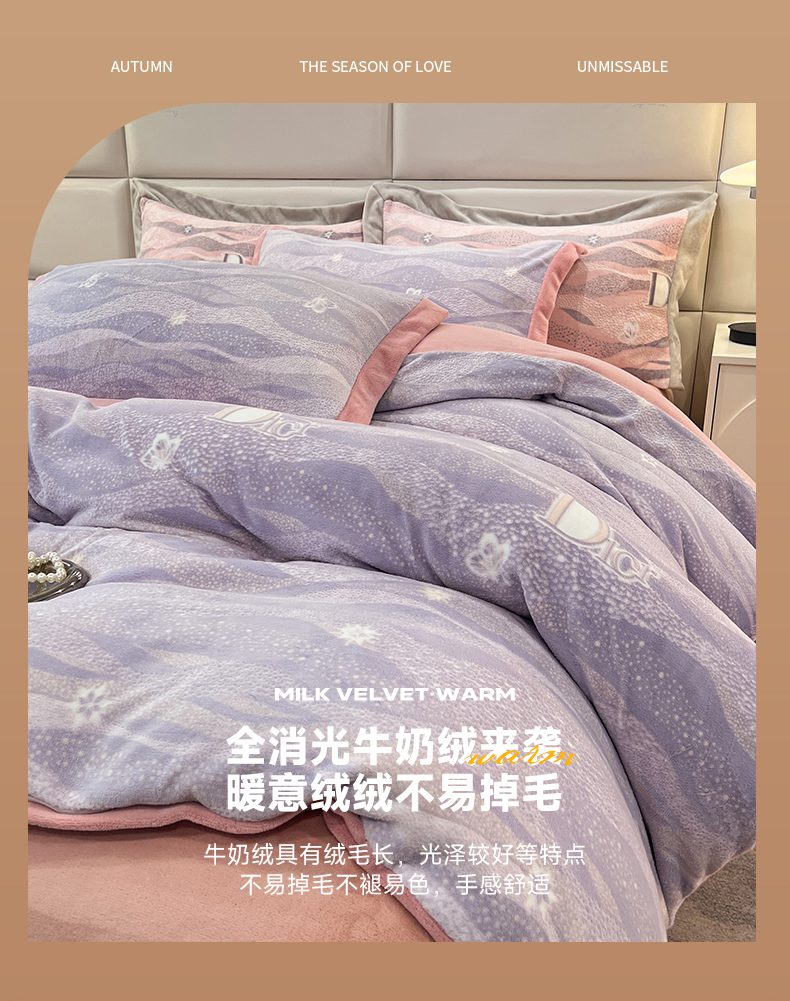 商品名称:花香四季家纺 2025新款全消光工艺320克牛奶绒四件套 迷失幻境-紫