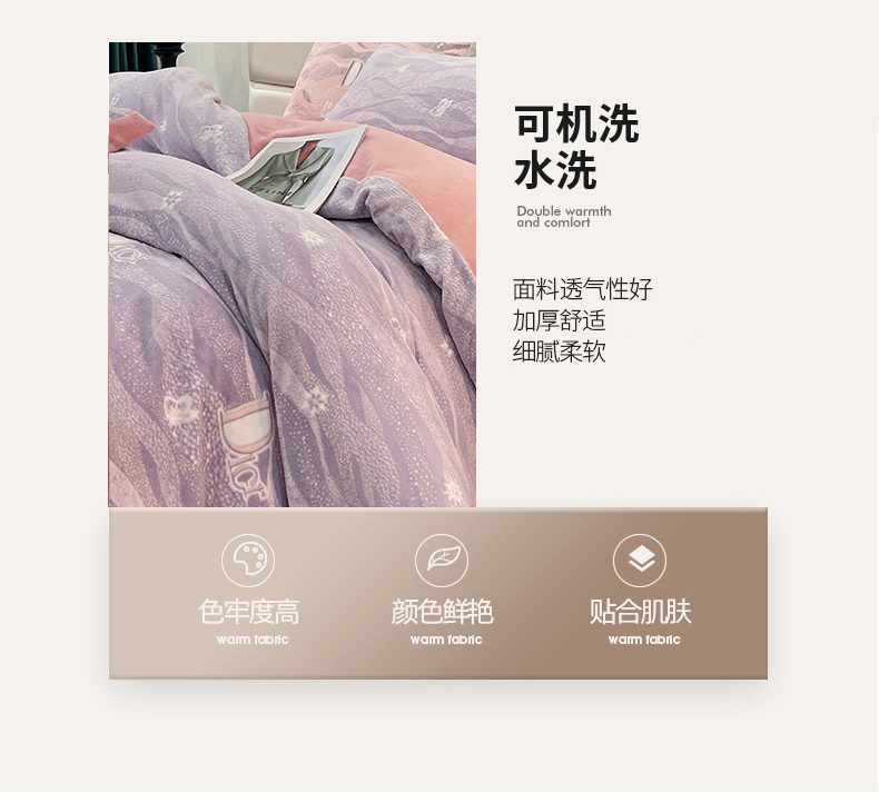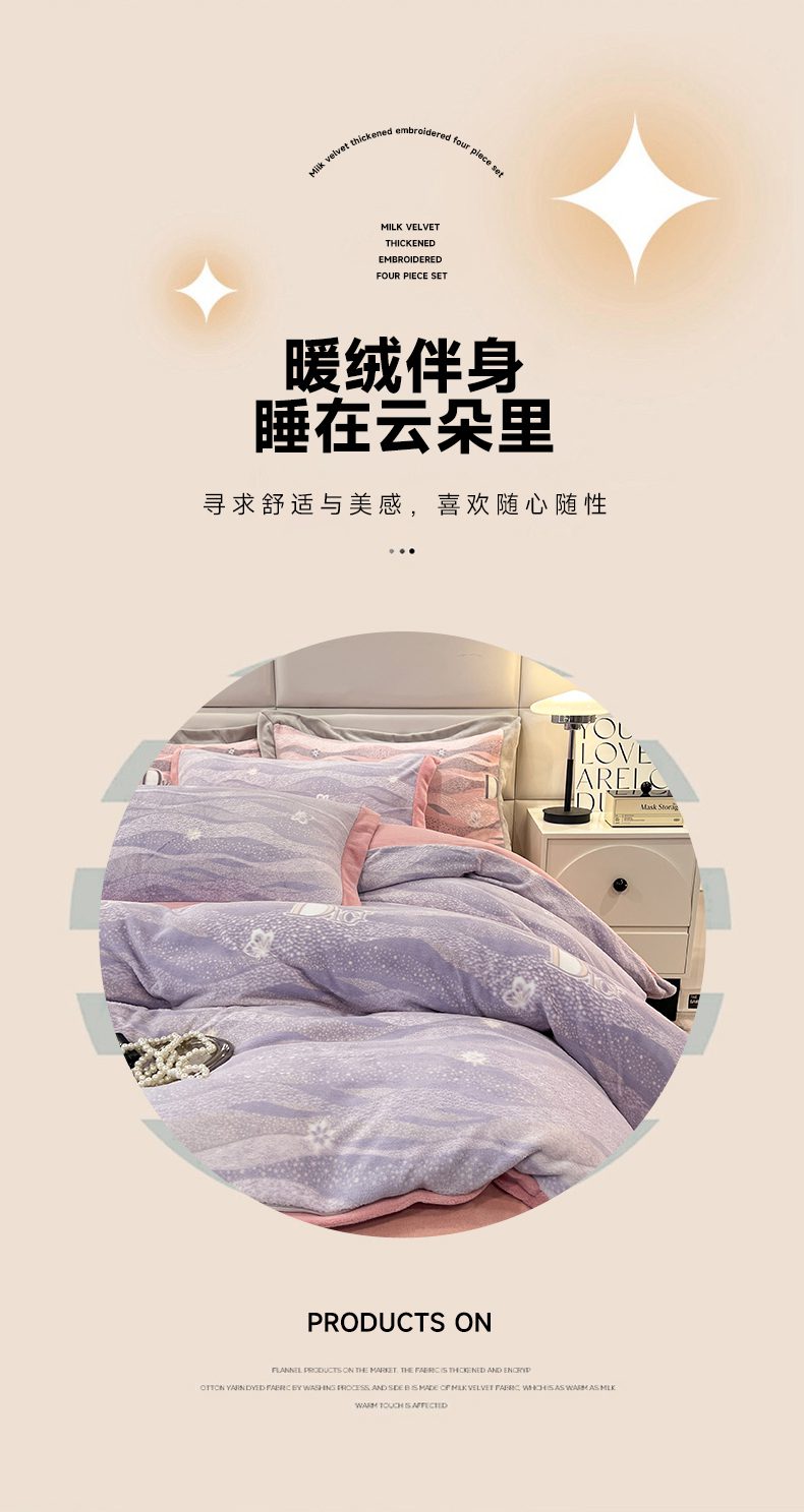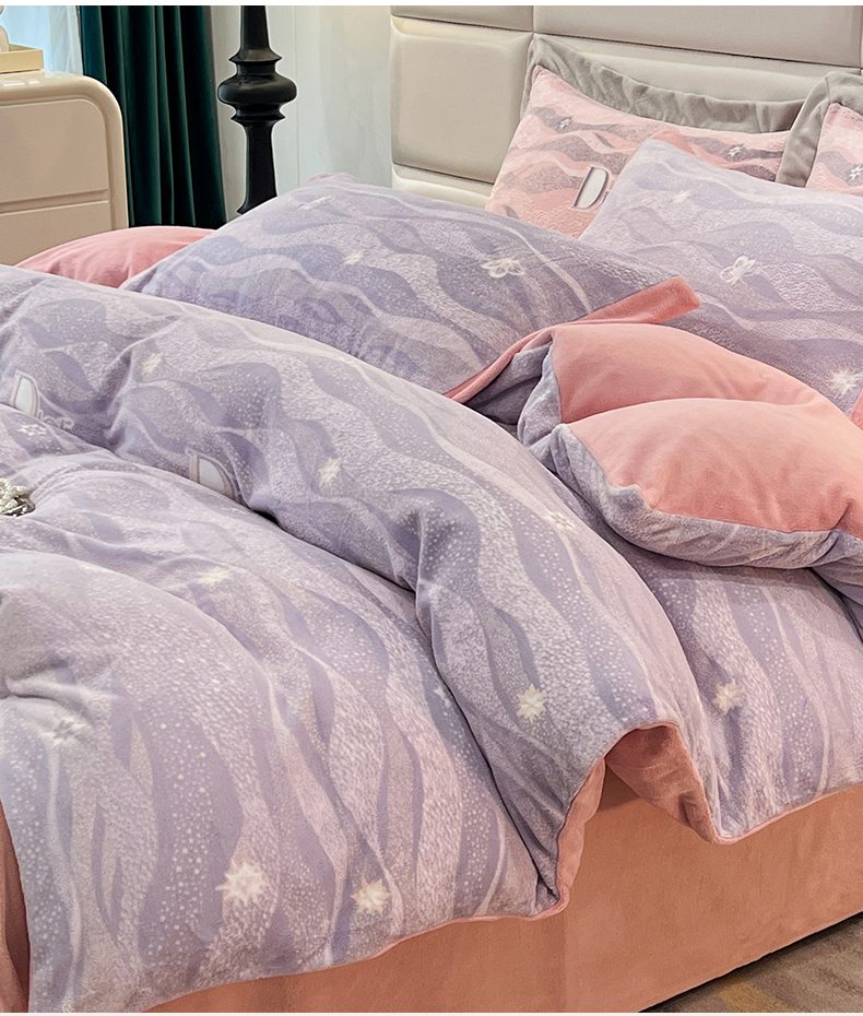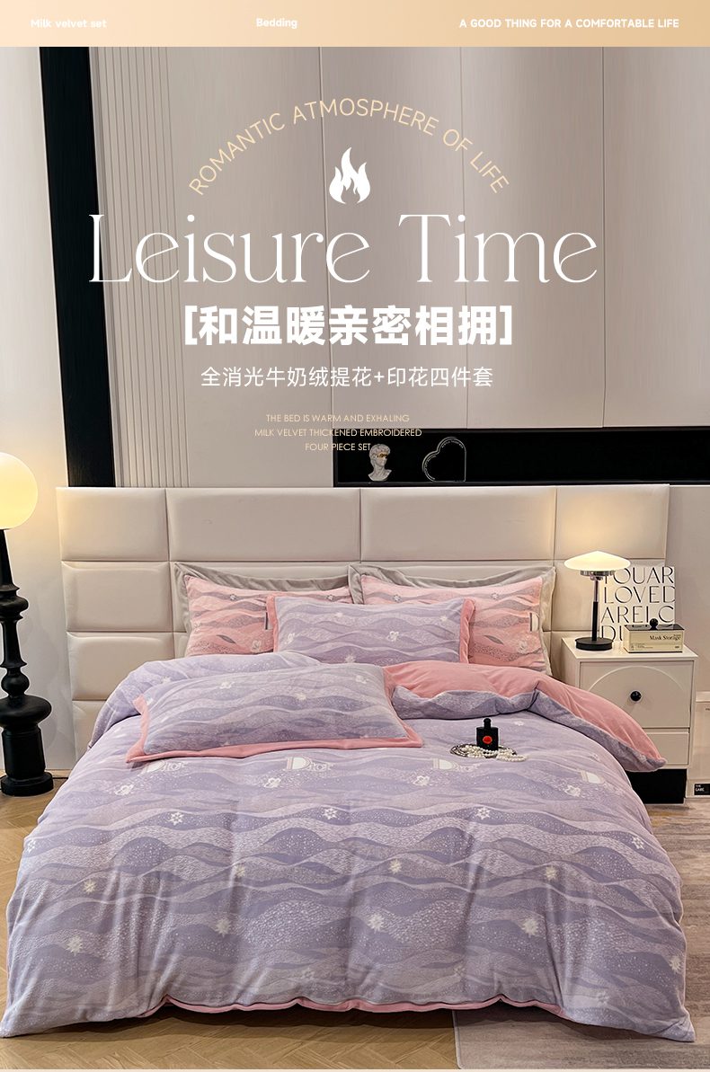 商品名称:花香四季家纺 2025新款全消光工艺320克牛奶绒四件套 迷失幻境-紫