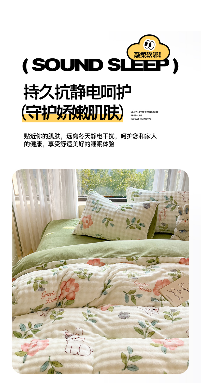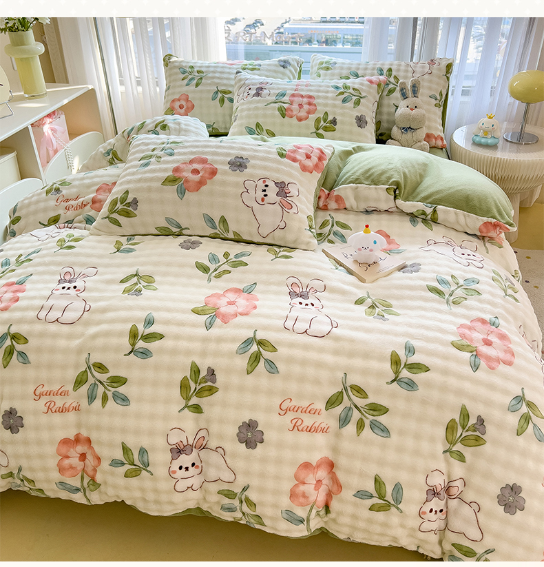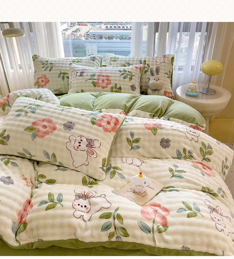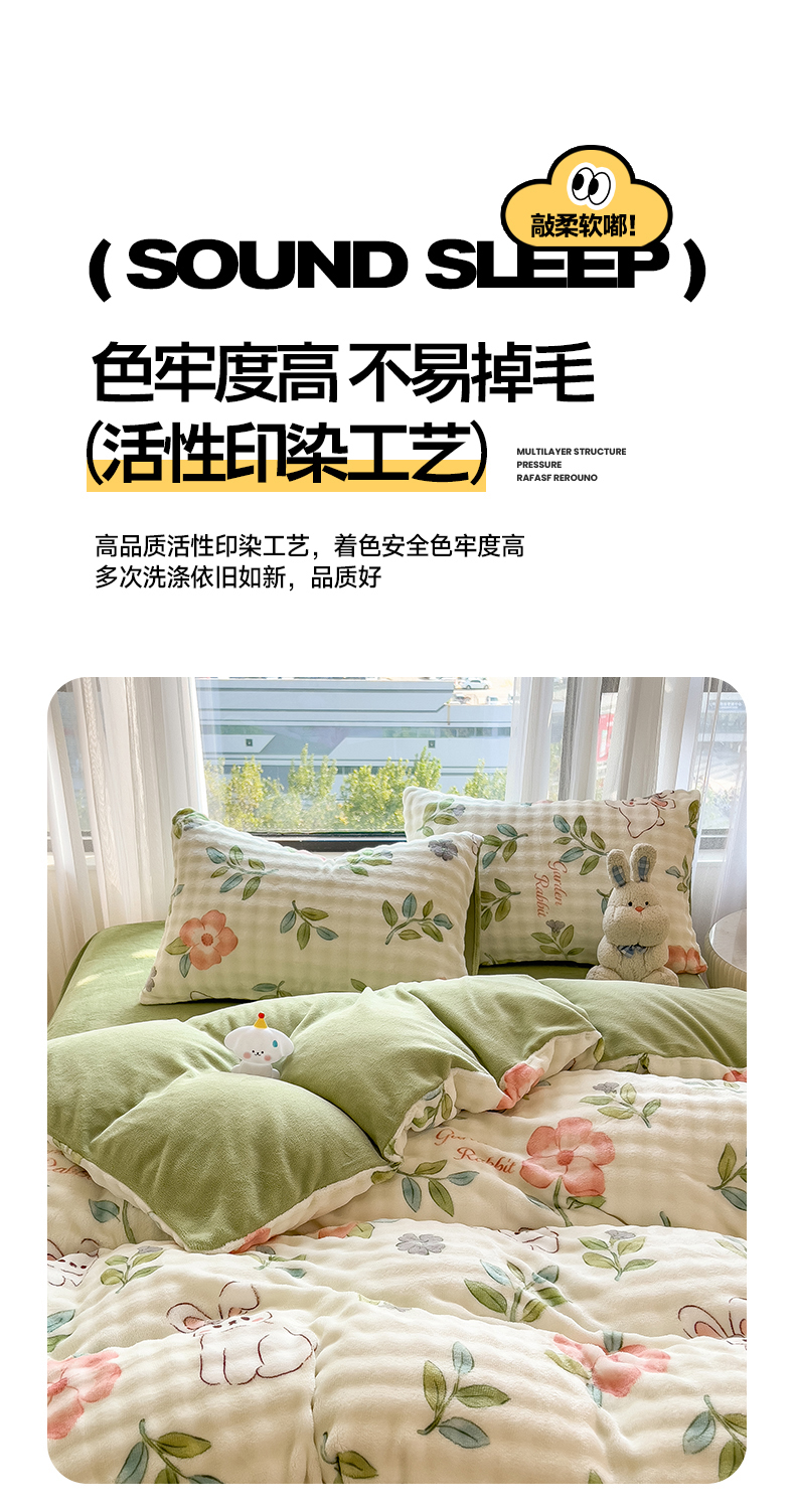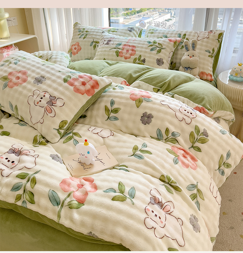 当前位置: 91家纺网 > 商品网购 > 床品套件 > 四件套 > 牛奶绒四件套 > 摩妮卡 2025新款小清新加厚260克牛奶绒泡泡绒四件套 暮雅