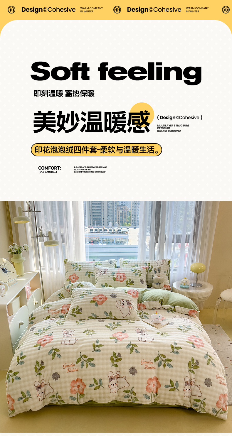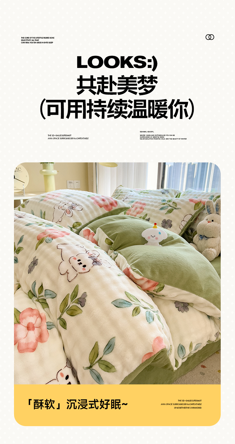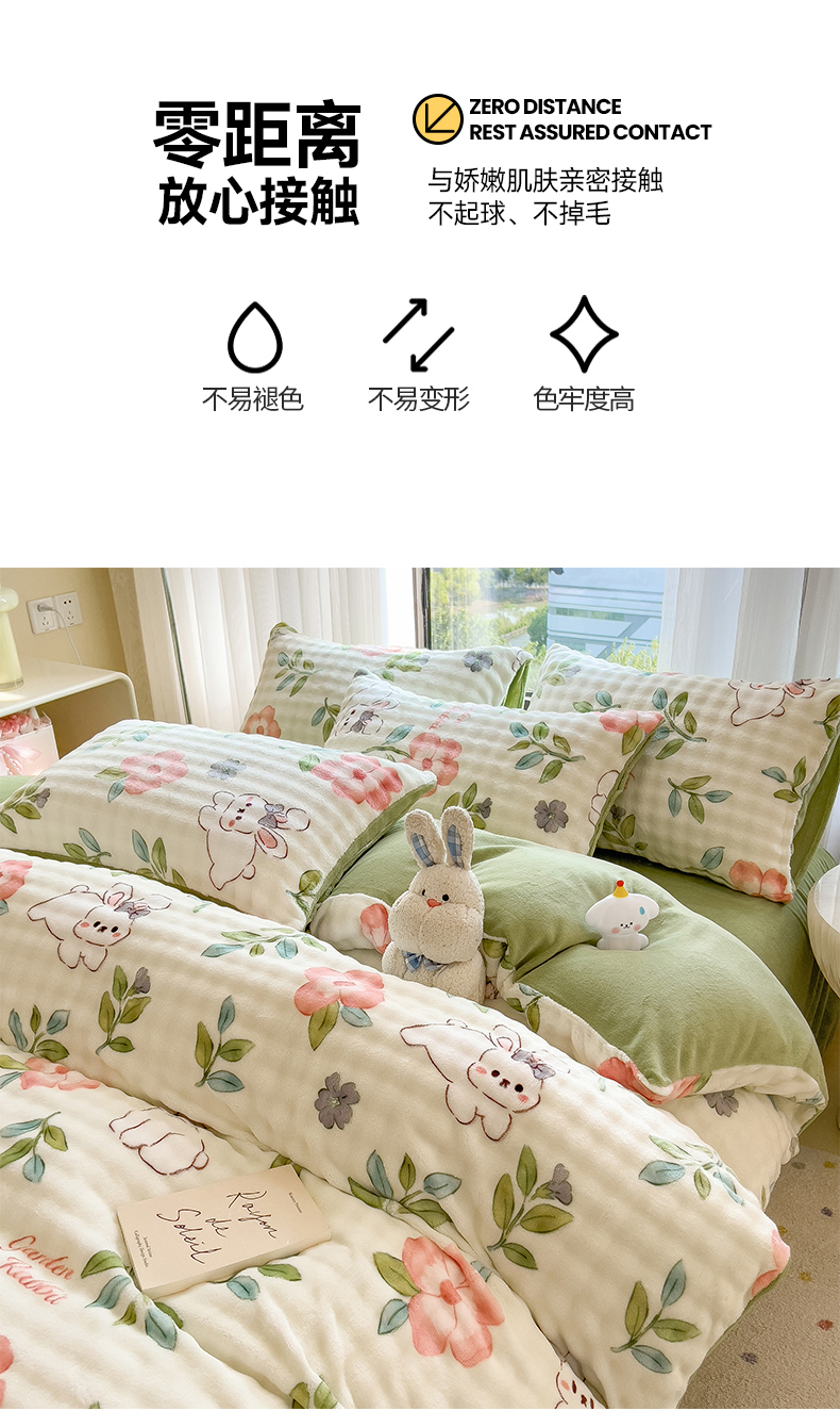 当前位置: 91家纺网 > 商品网购 > 床品套件 > 四件套 > 牛奶绒四件套 > 摩妮卡 2025新款小清新加厚260克牛奶绒泡泡绒四件套 暮雅