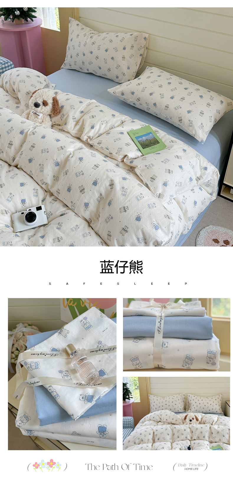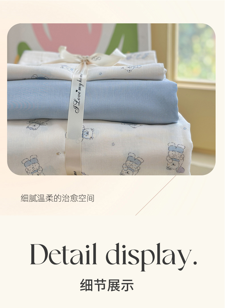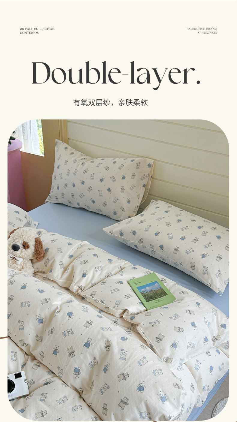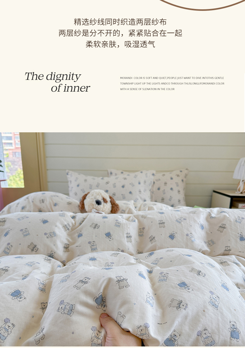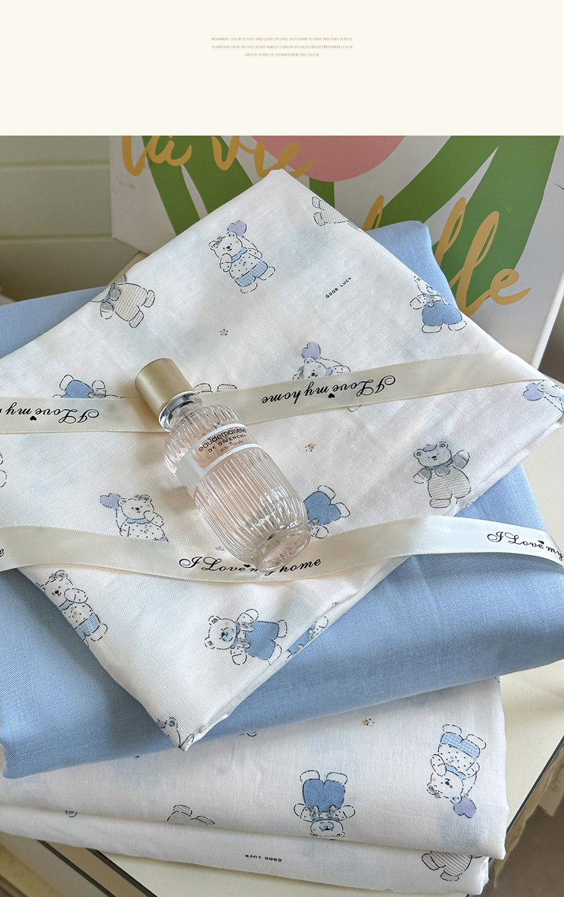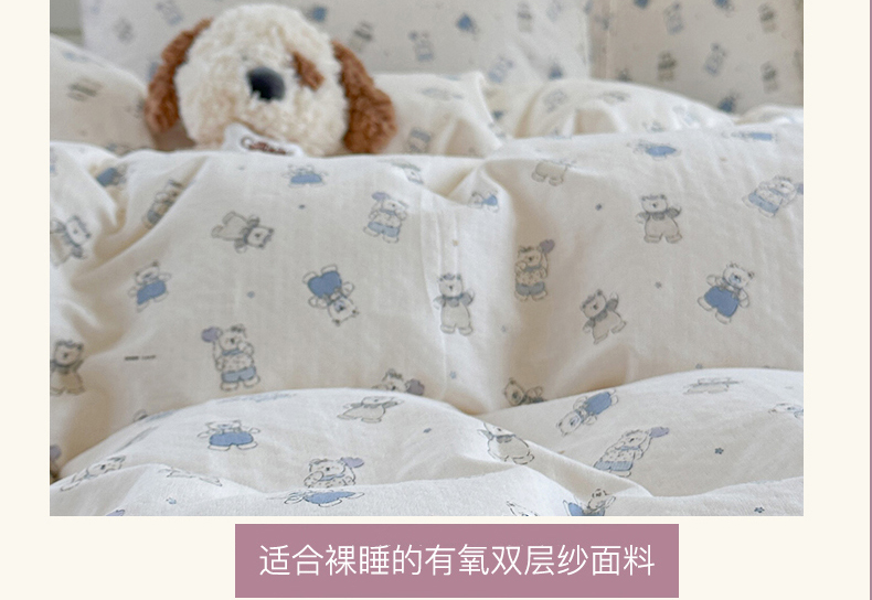 当前位置: 91家纺网 > 商品网购 > 床品套件 > 四件套 > 全棉普通四件套 > 麦伦 2025年新品 --全棉有氧双层纱简约款系列 蓝仔熊