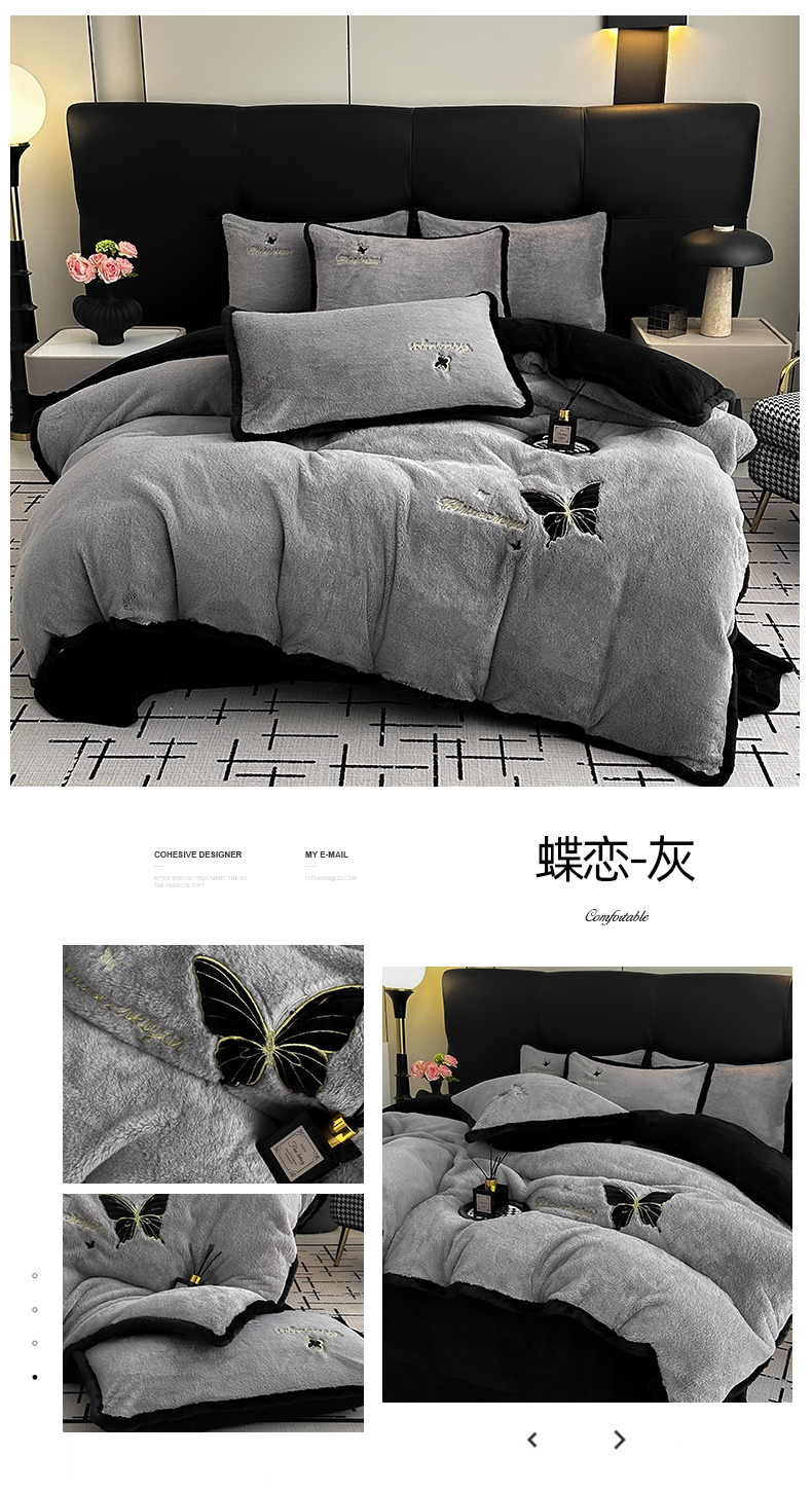商品名称:2025兔毛包边贴布绣花牛奶绒四件套蝶恋 蝶恋-灰
