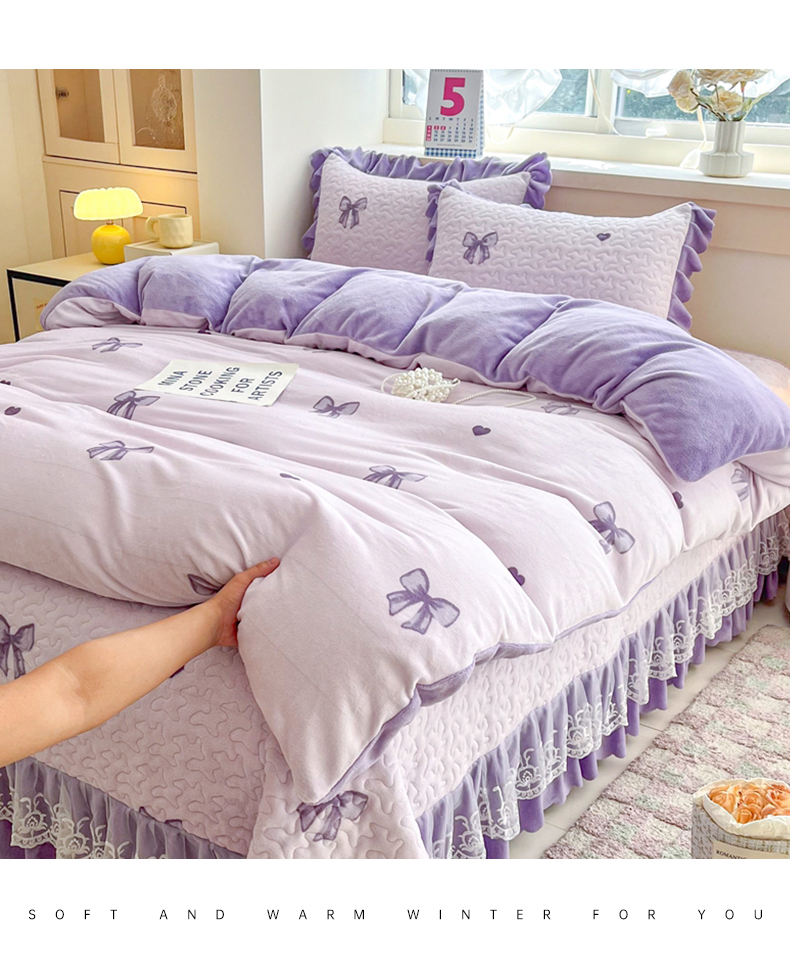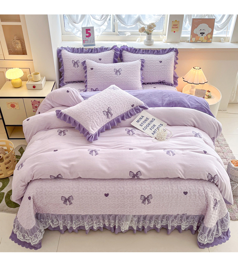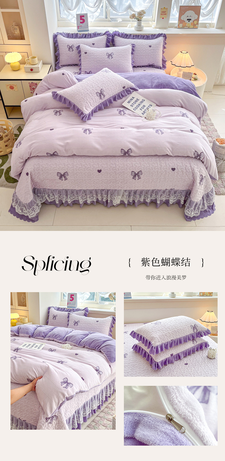 当前位置: 91家纺网 > 商品网购 > 床品套件 > 四件套 > 牛奶绒四件套 > 铠畅 2025新款加厚牛奶绒床盖四件套 紫色蝴蝶结