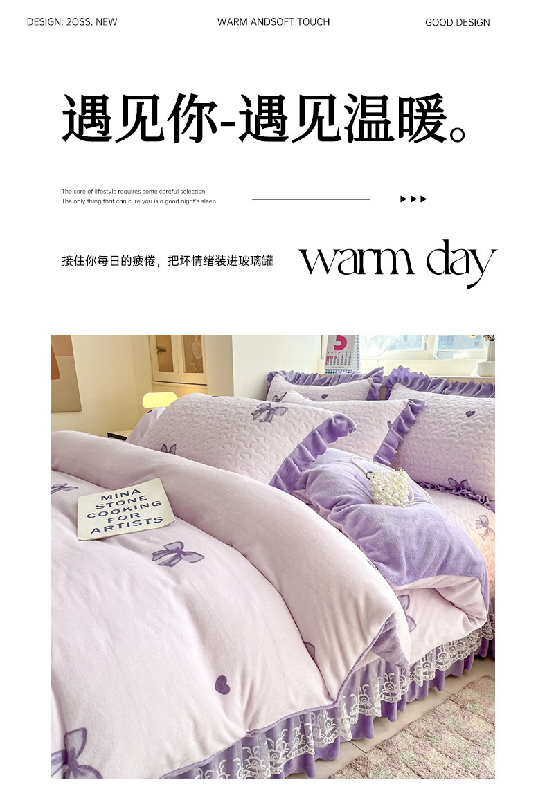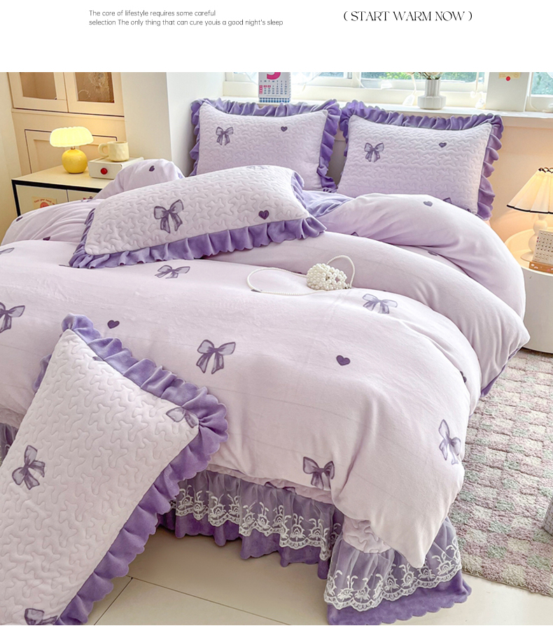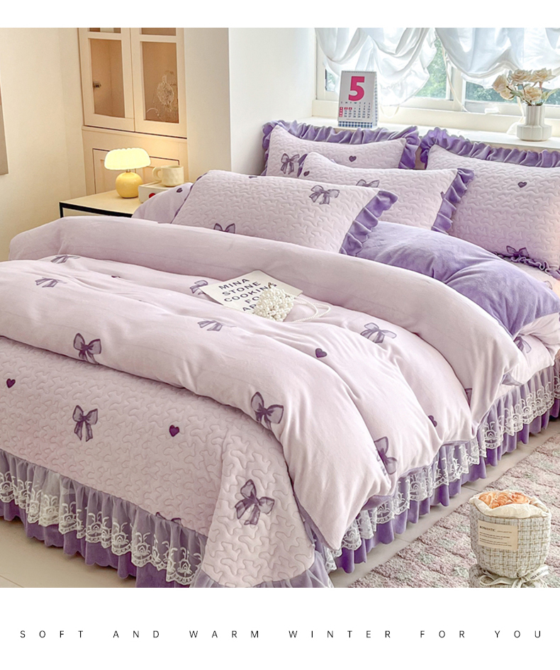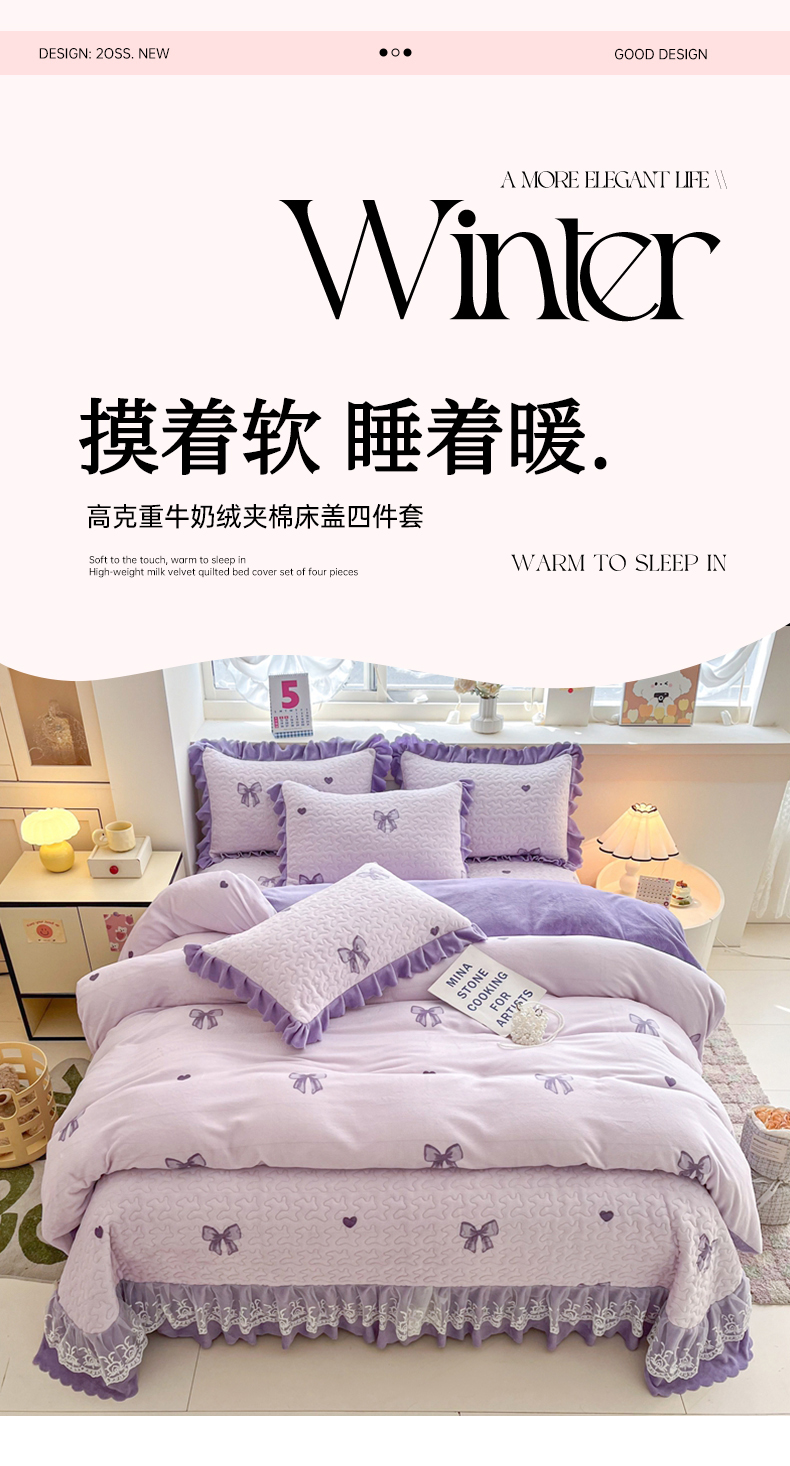当前位置: 91家纺网 > 商品网购 > 床品套件 > 四件套 > 牛奶绒四件套 > 铠畅 2025新款加厚牛奶绒床盖四件套 紫色蝴蝶结