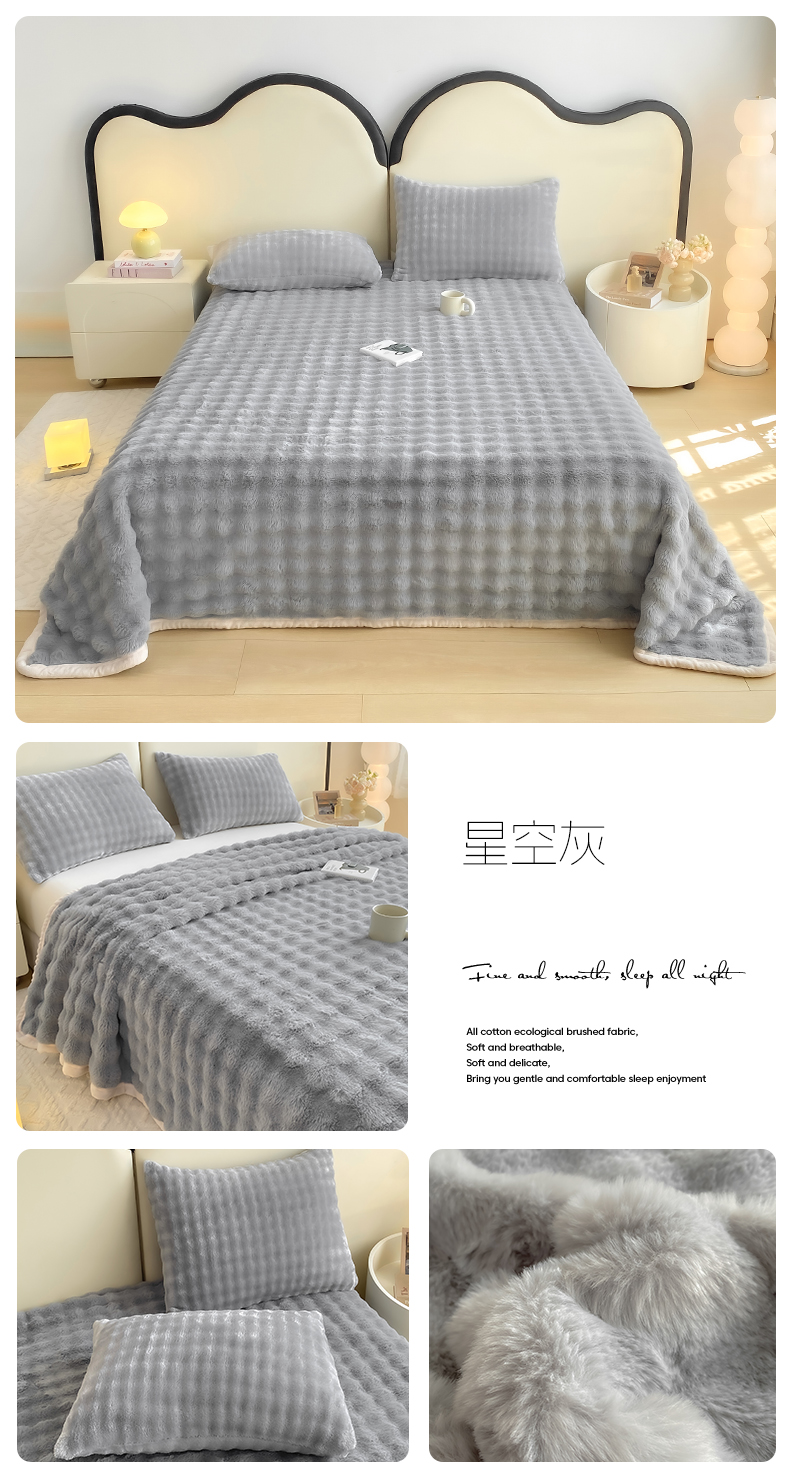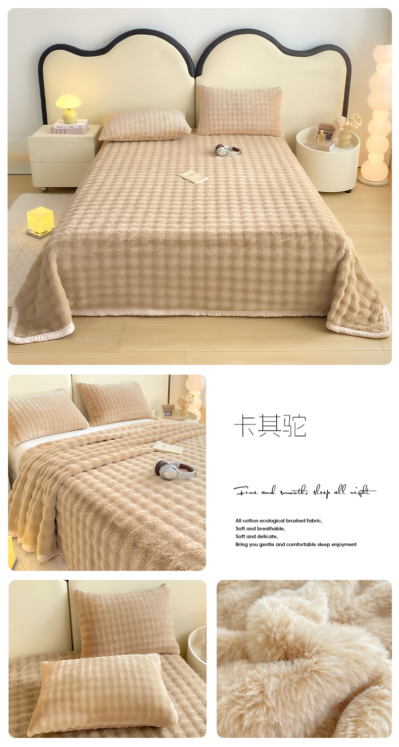 • 91家纺网 家纺一手货源 找家纺 品乐家纺 2025新款秋冬A类高克重300g泡泡兔绒保暖床单单品床单单件床单 炫彩 清水兰