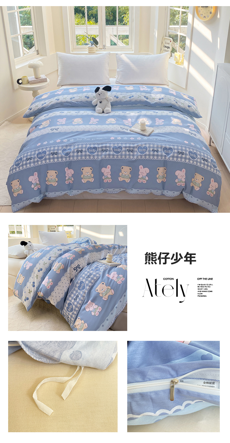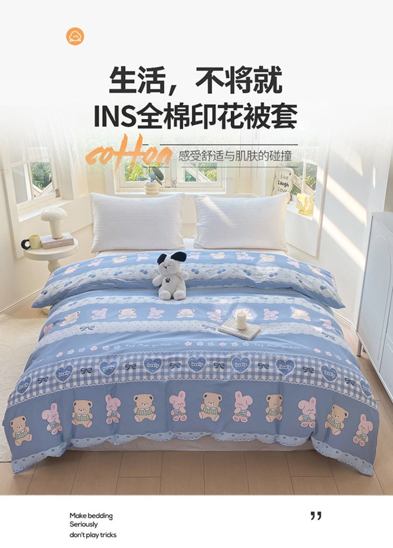 商品名称:麋兔 2025新款全棉纯棉ins印花单品被套 被套单件 熊仔少年