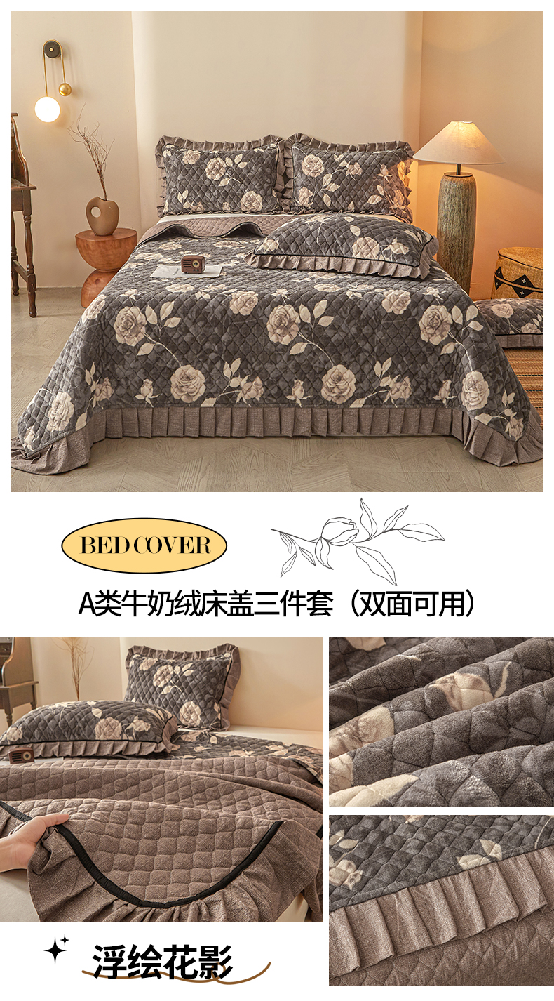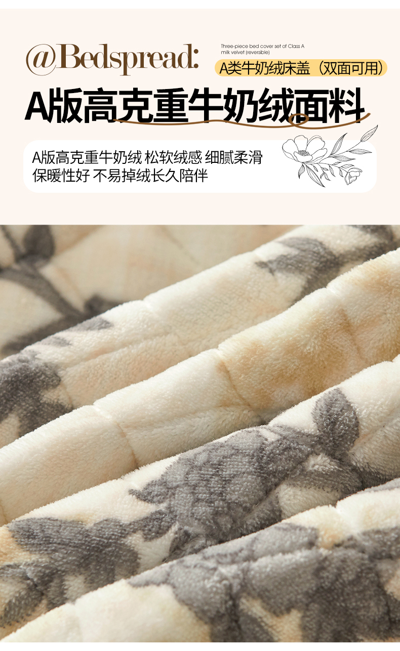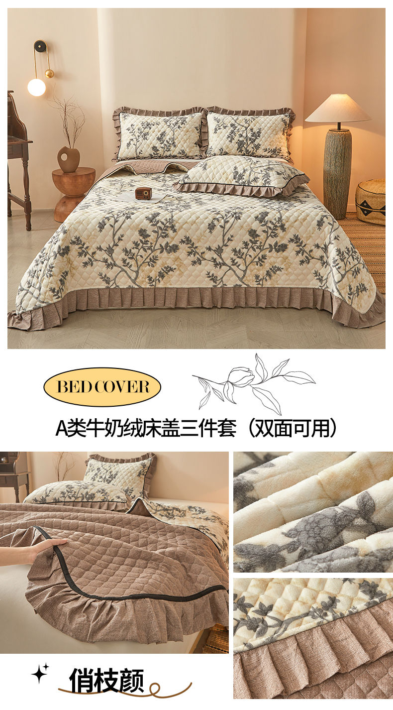 当前位置: 91家纺网 > 商品网购 > 床品套件 > 三件套 > 宜凡家纺 2025新款牛奶绒床盖三件套(双面可用) 宽斜纹