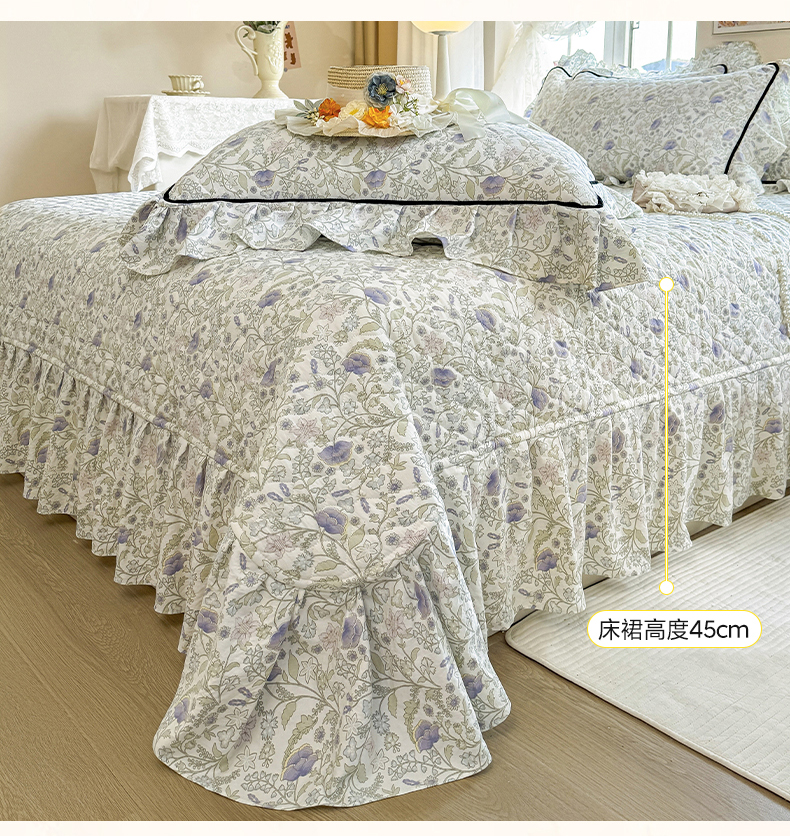 (总)宜凡家纺 2025新款全棉数码印花床裙三件套系列一,静若幽兰,浮云织梦,梦幻花园,陌上花开