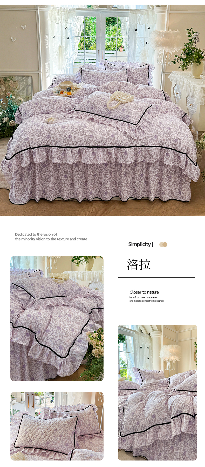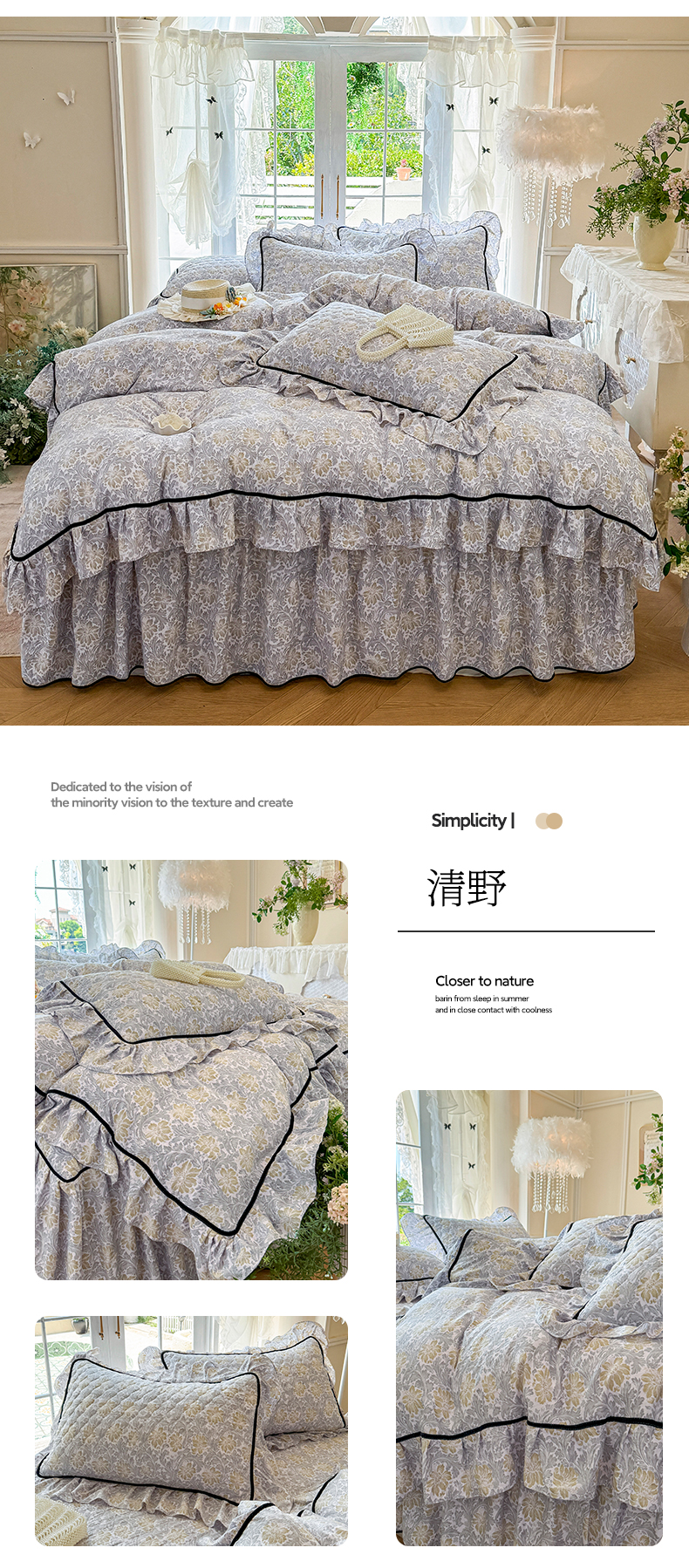 当前位置: 91家纺网 > 商品网购 > 床品套件 > 四件套 > 其它四件套 > 宜凡家纺 2025新款A类水洗珍珠棉夹棉床裙四件套 夕雾