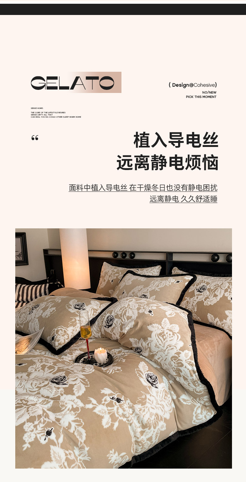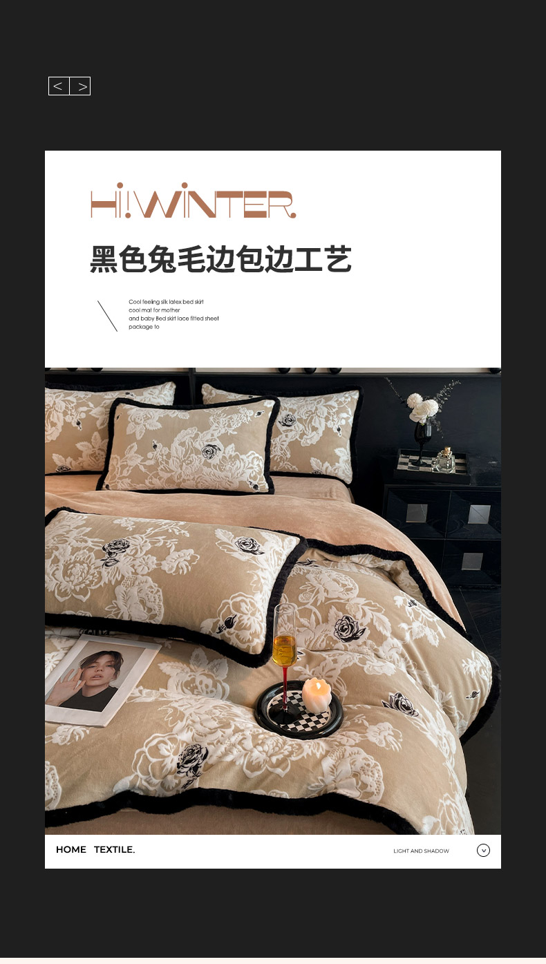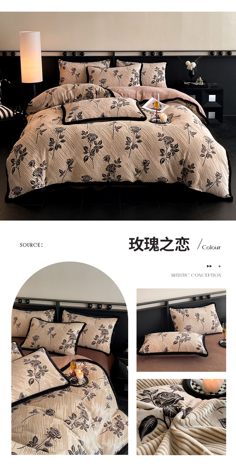 商品名称:吾诺家居 2025新款美拉德雕花绒黑金系列四件套 花之恋