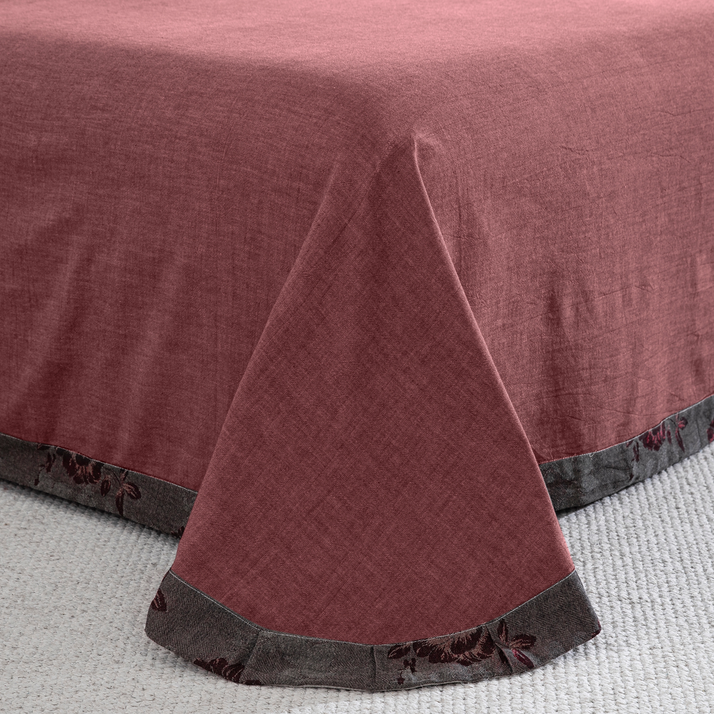 商品名称:鲁爱家纺供货 2025新款全棉色织提花(花边镂空款)四件套 云纱-中古色