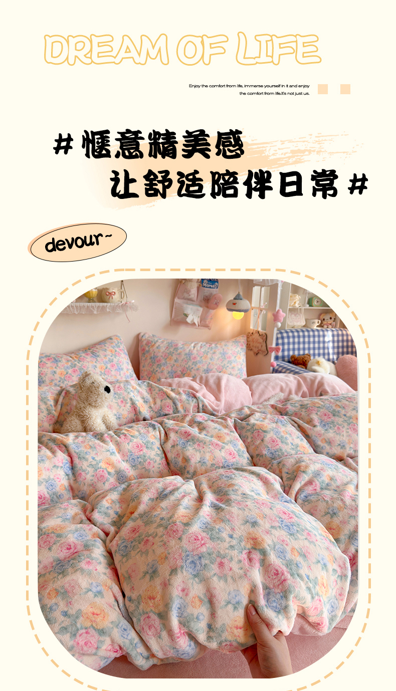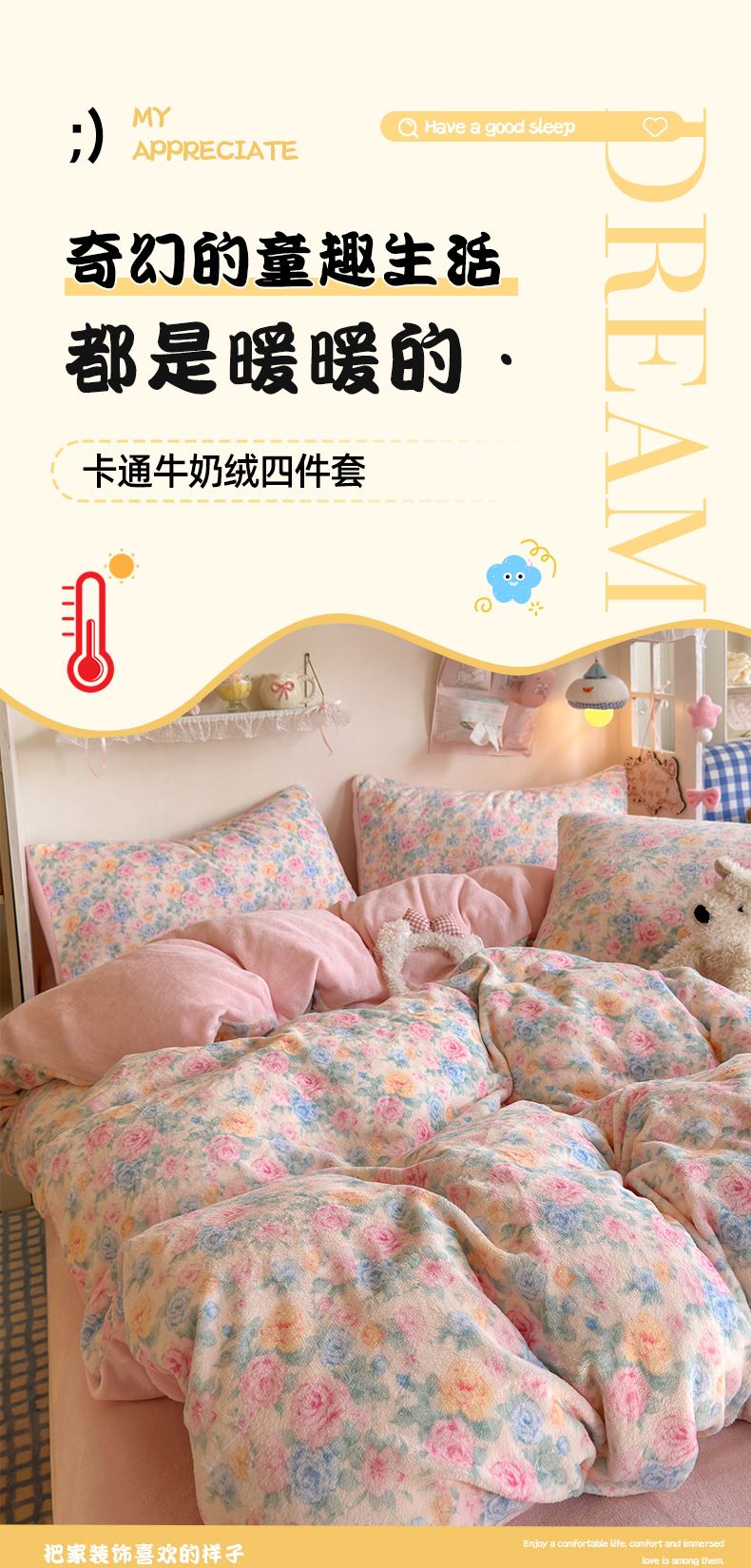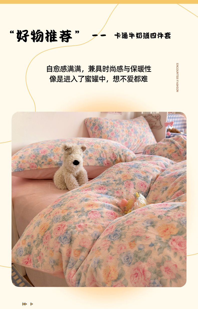 当前位置: 91家纺网 > 商品网购 > 床品套件 > 四件套 > 牛奶绒四件套 > 初念 2025新款加厚高克重保暖可爱系牛奶绒床品套件系列(小红书推荐)(提供买家秀) 风沙沙