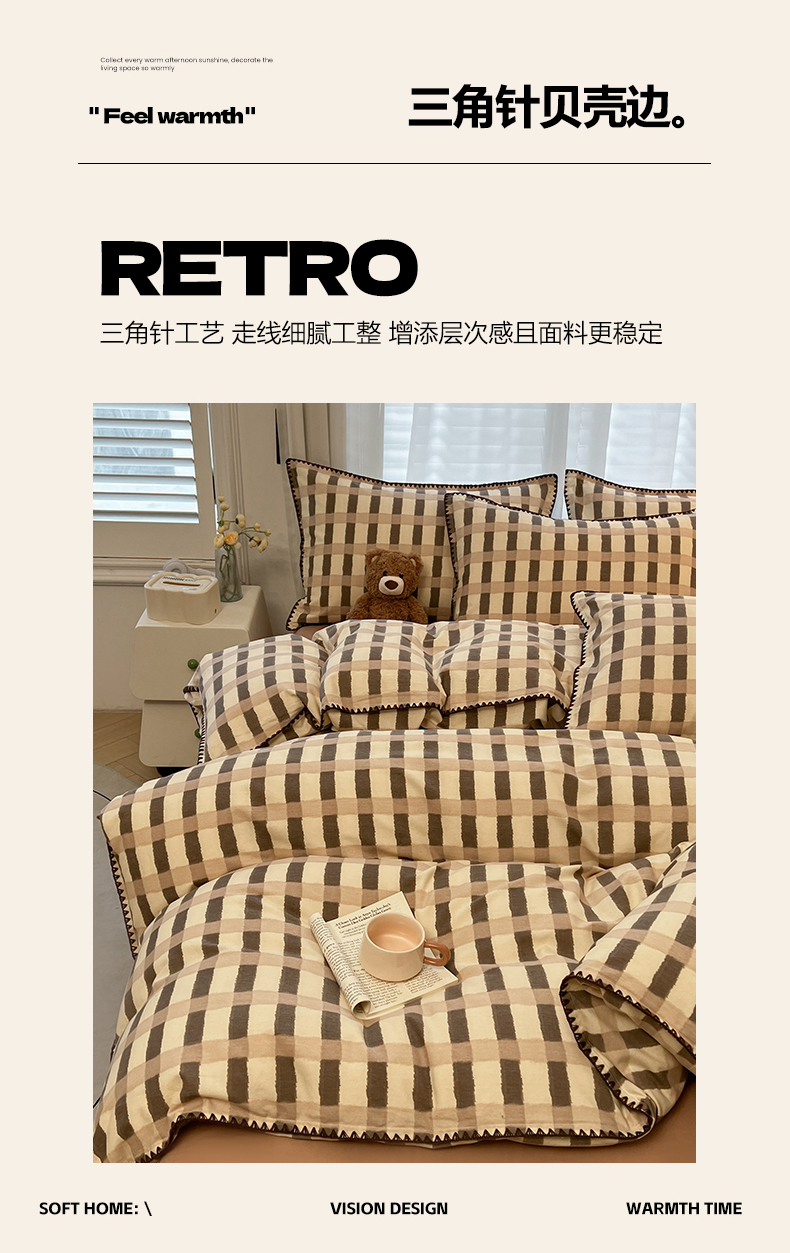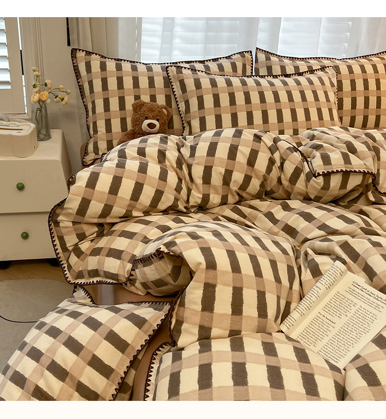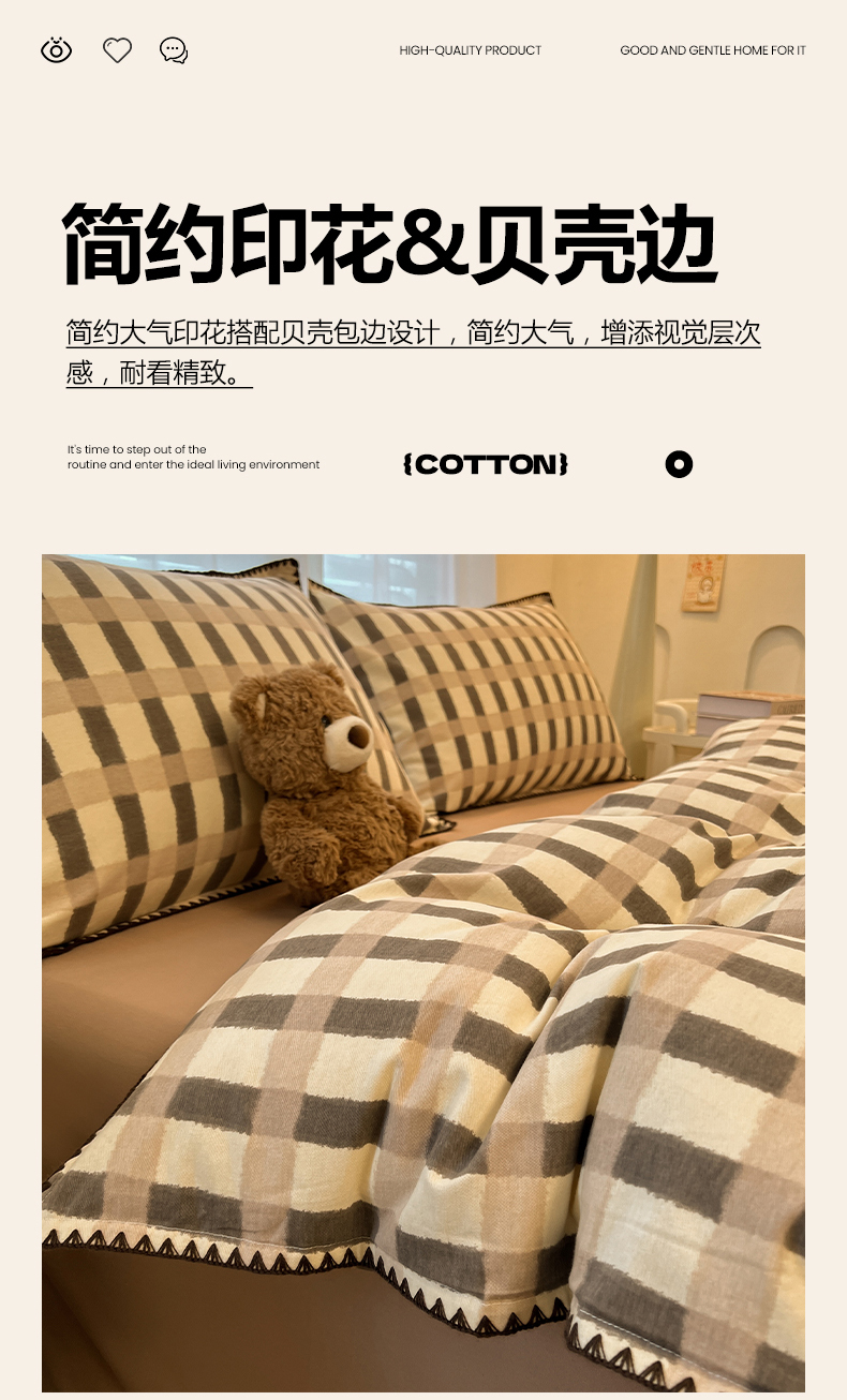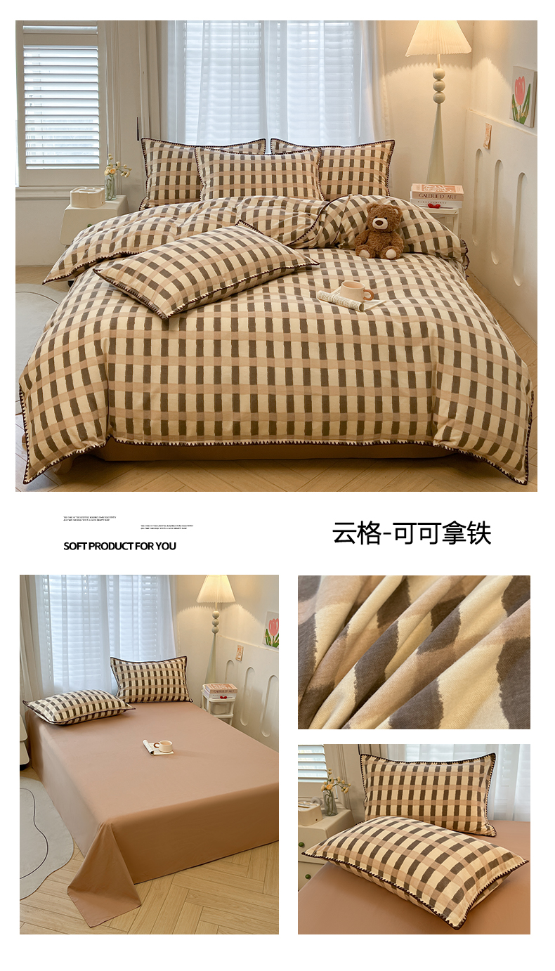 (总)莱茵家居 2025新款全棉磨毛贝壳边四件套,粉豆沙絮,咖棕英伦,蓝黄格韵,奶棕渐柔,暖红松影,浅咖叠影,柔粉深砚,雾灰墨韵,棕林青雾,雾丝-晨露米,雾丝-青花蓝,雾丝-云絮灰,旋栖-暮江灰,旋栖-柔雾粉,云格-红米焦糖,云格-可可拿铁
