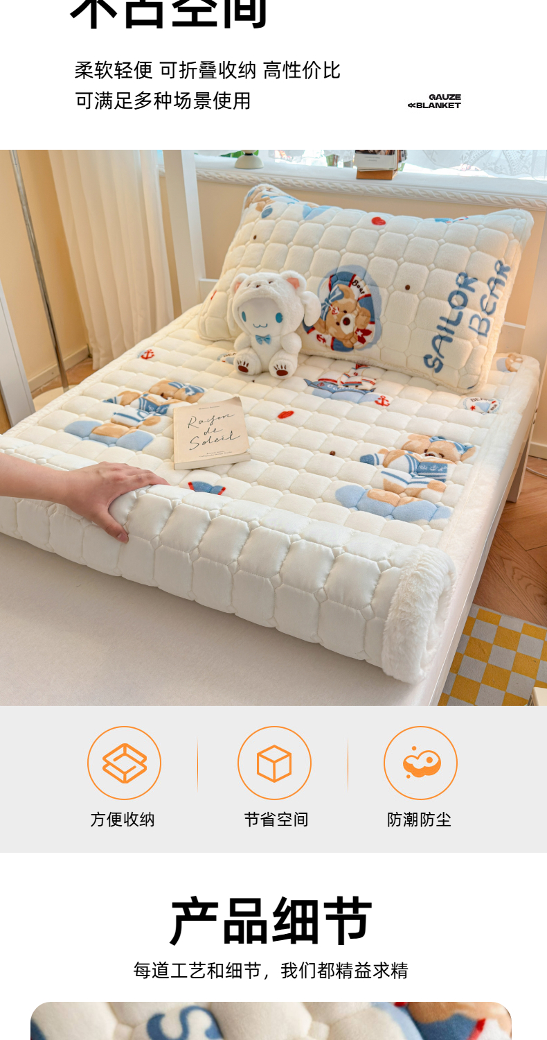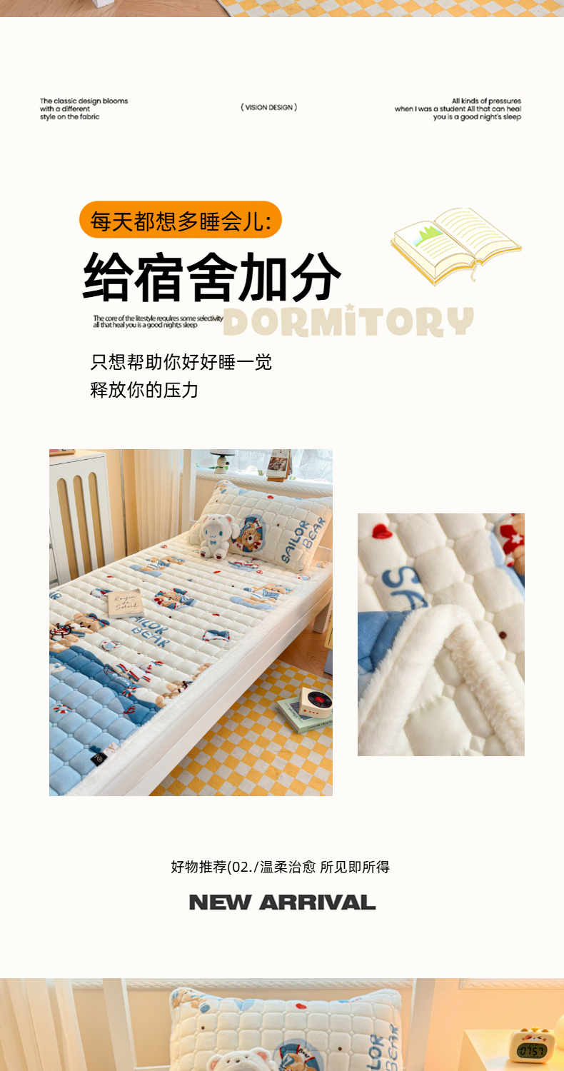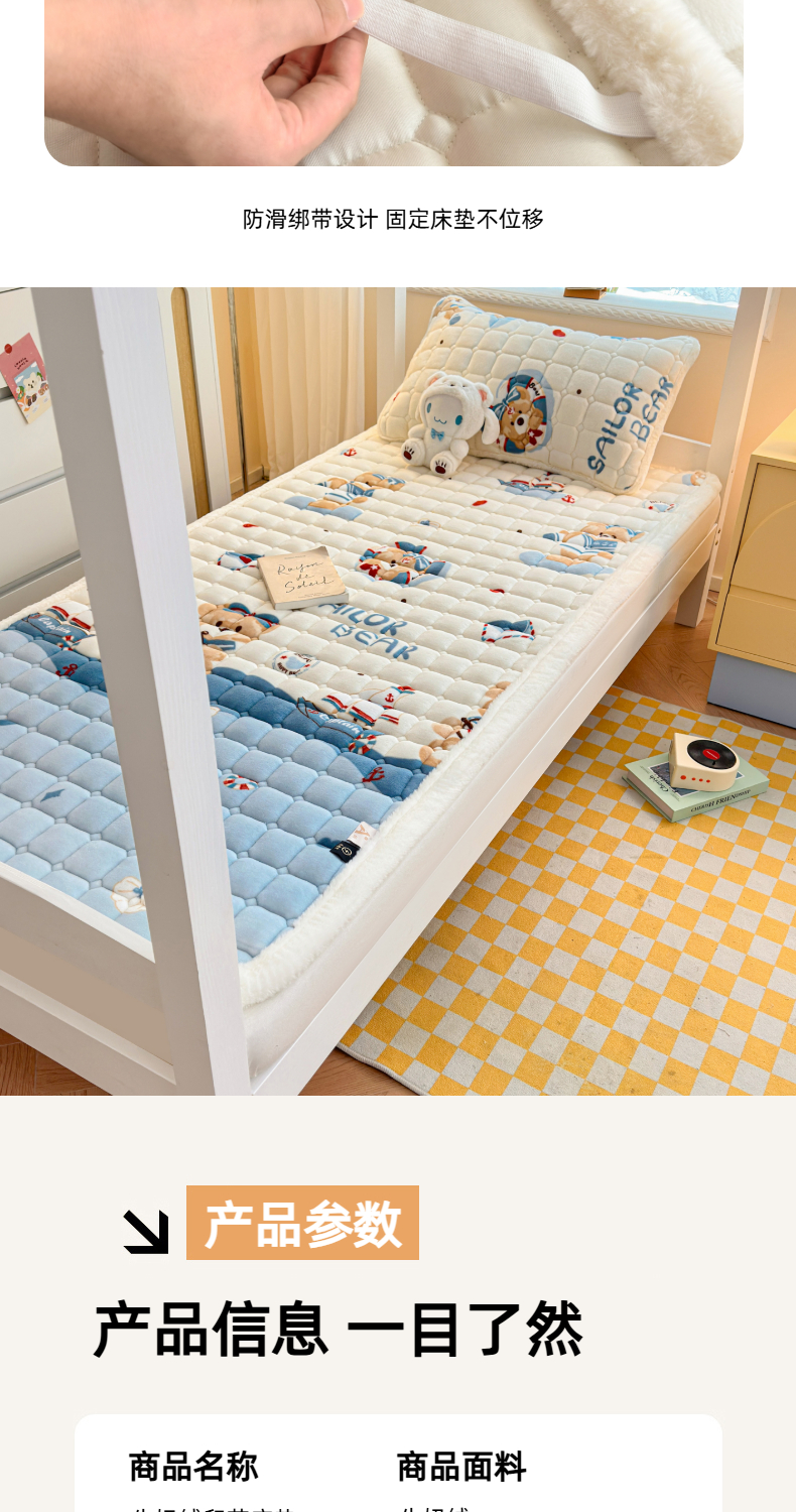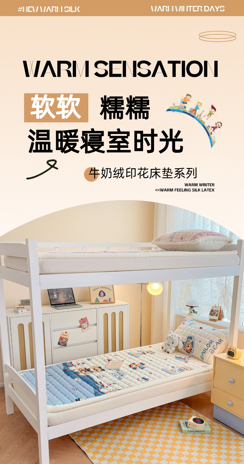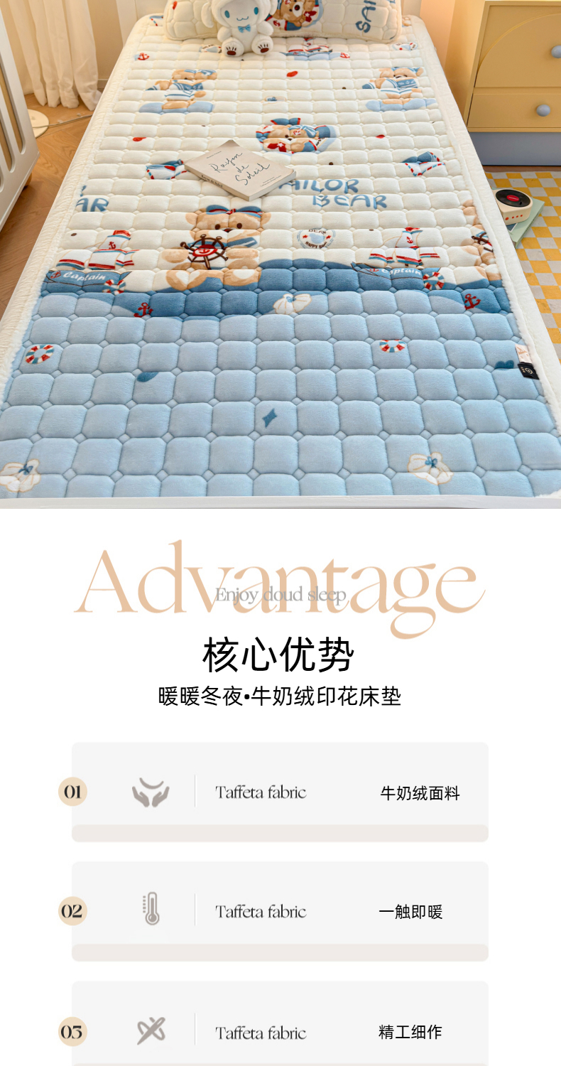 当前位置: 91家纺网 > 商品网购 > 床垫/床褥 > 普通床垫 > 爱屋及屋 2025新款牛奶绒印花床垫-宿舍床 冲浪小熊