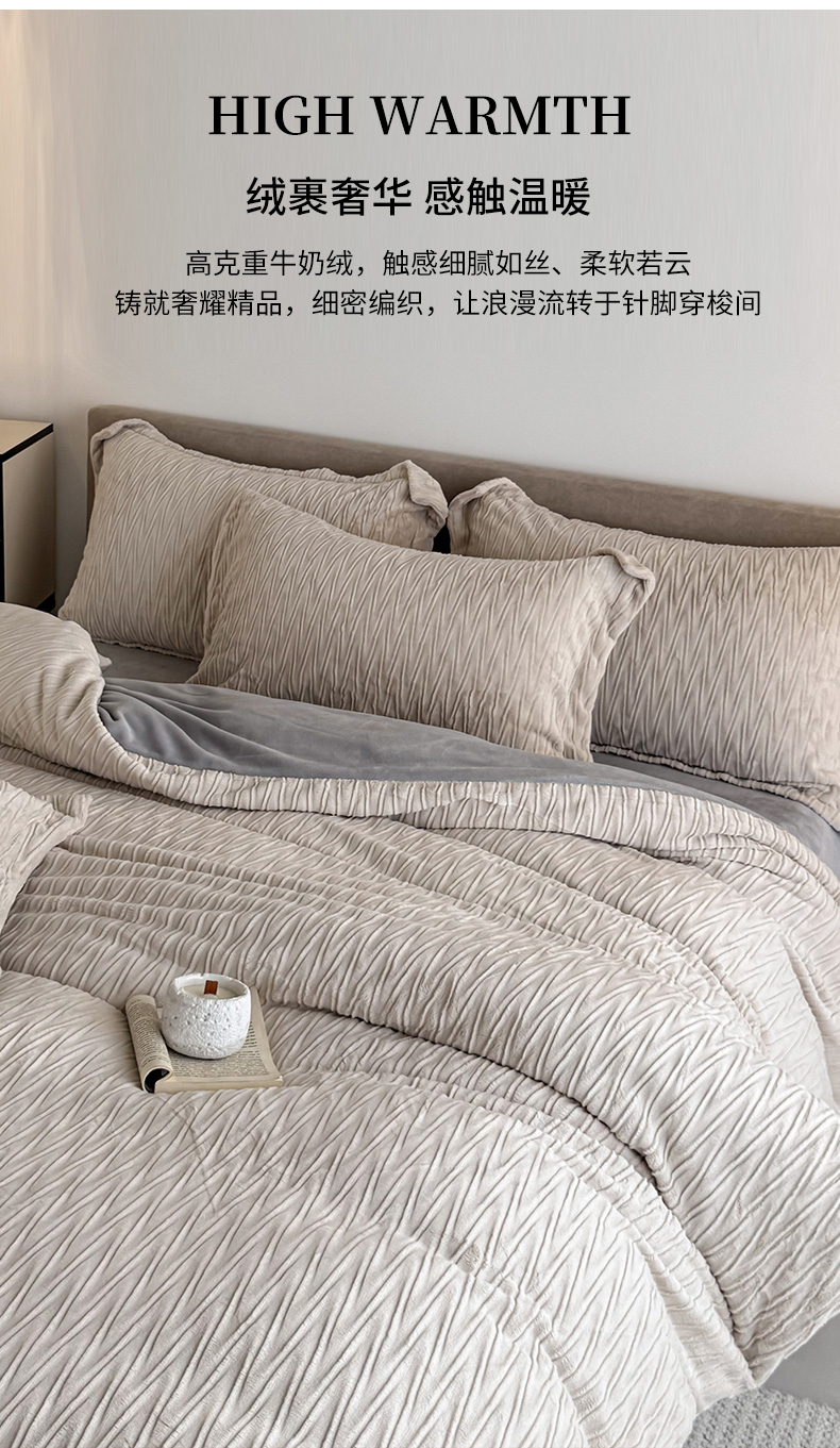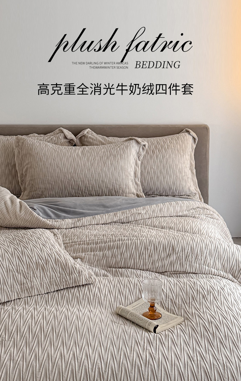 当前位置: 91家纺网 > 商品网购 > 床品套件 > 四件套 > 牛奶绒四件套 > 锦罗绣 2025新款全消光烂花230克牛奶绒四件套 提花灰