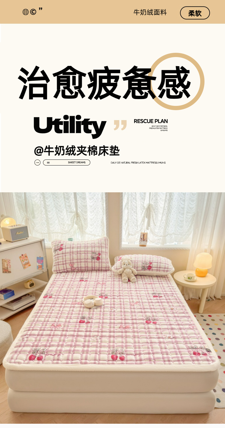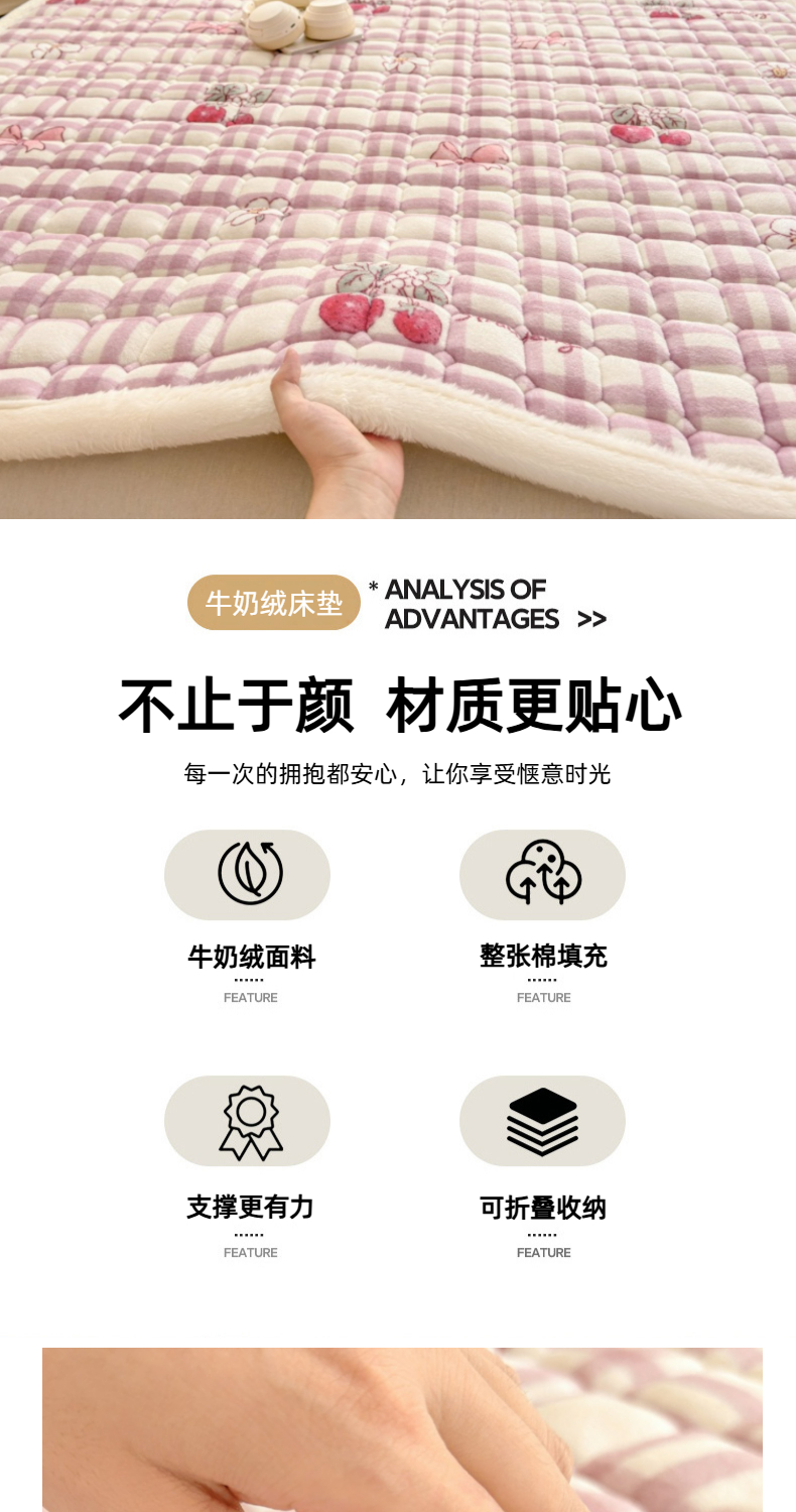 当前位置: 91家纺网 > 商品网购 > 床垫/床褥 > 普通床垫 > 爱屋及屋 2025新款牛奶绒印花床垫-大床款 紫色草莓