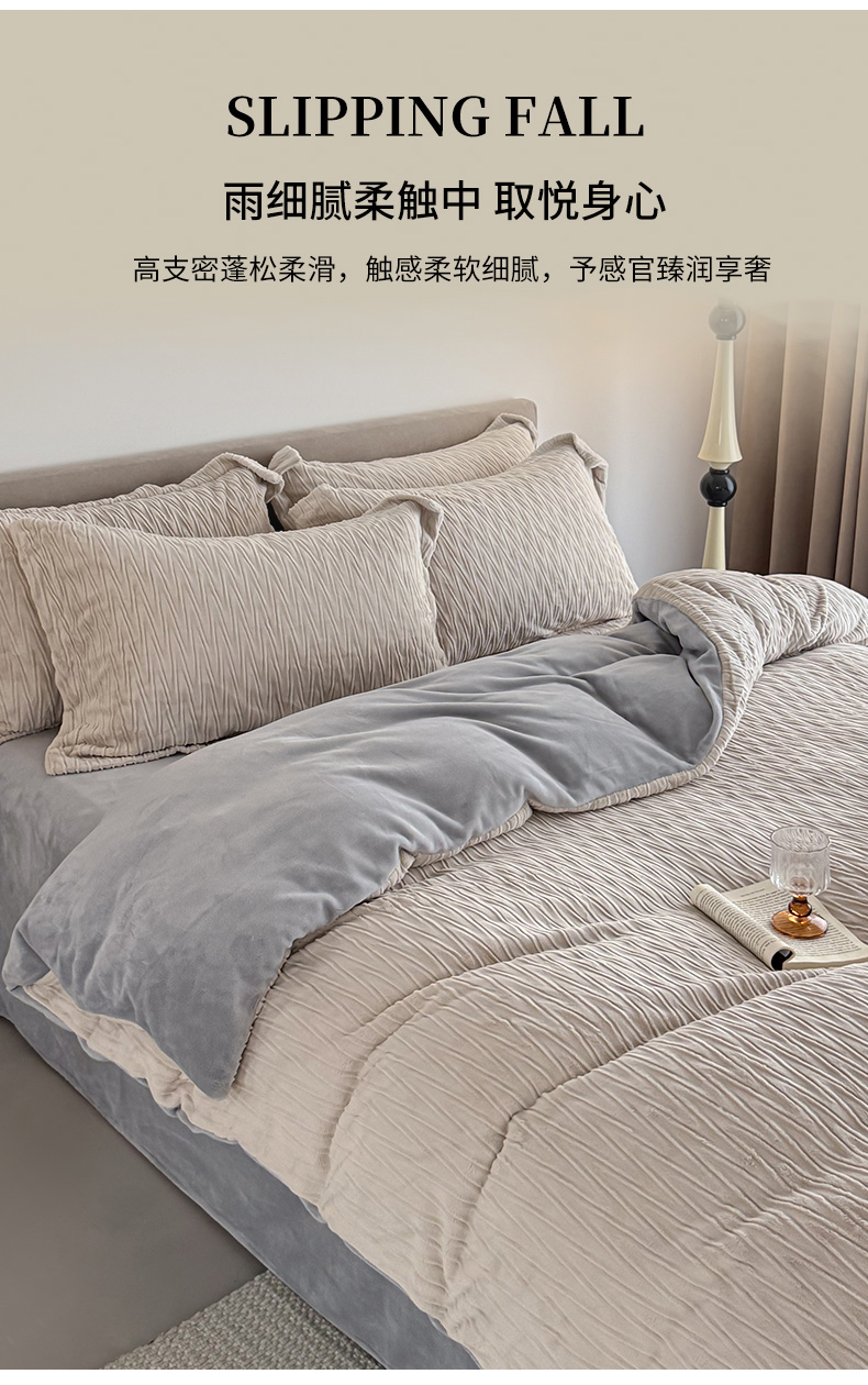 当前位置: 91家纺网 > 商品网购 > 床上用品 > 被套 > 锦罗绣 2025新款全消光烂花230克牛奶绒单被套 提花-灰