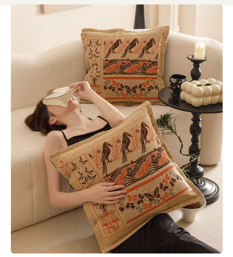 爱港家纺 2025新款全棉纯棉纱布抱枕 靠枕 可拆洗 腰枕 客厅卧室汽车纯棉方枕套 雀阁