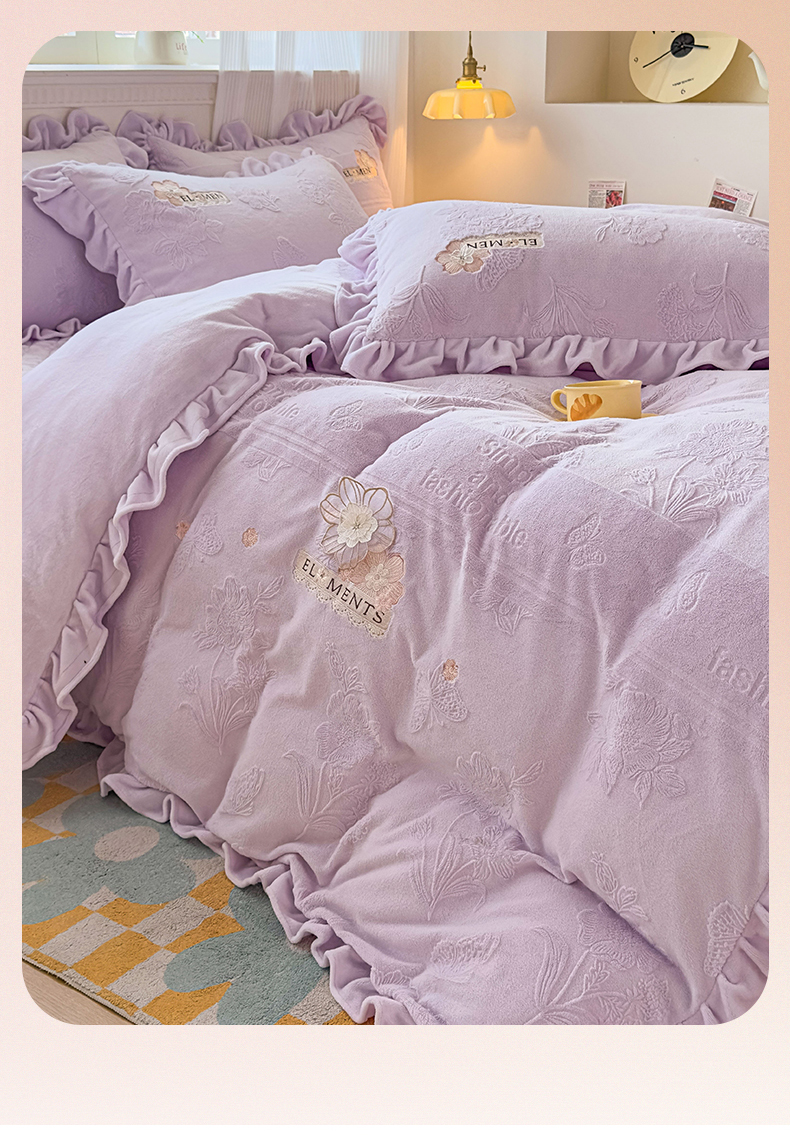 恒爱家纺 2025新款牛奶绒立体剪花床盖四件套-心魅 心魅-浪漫紫