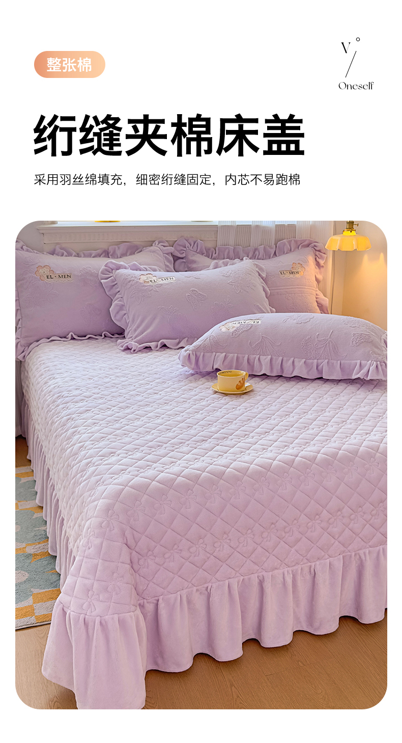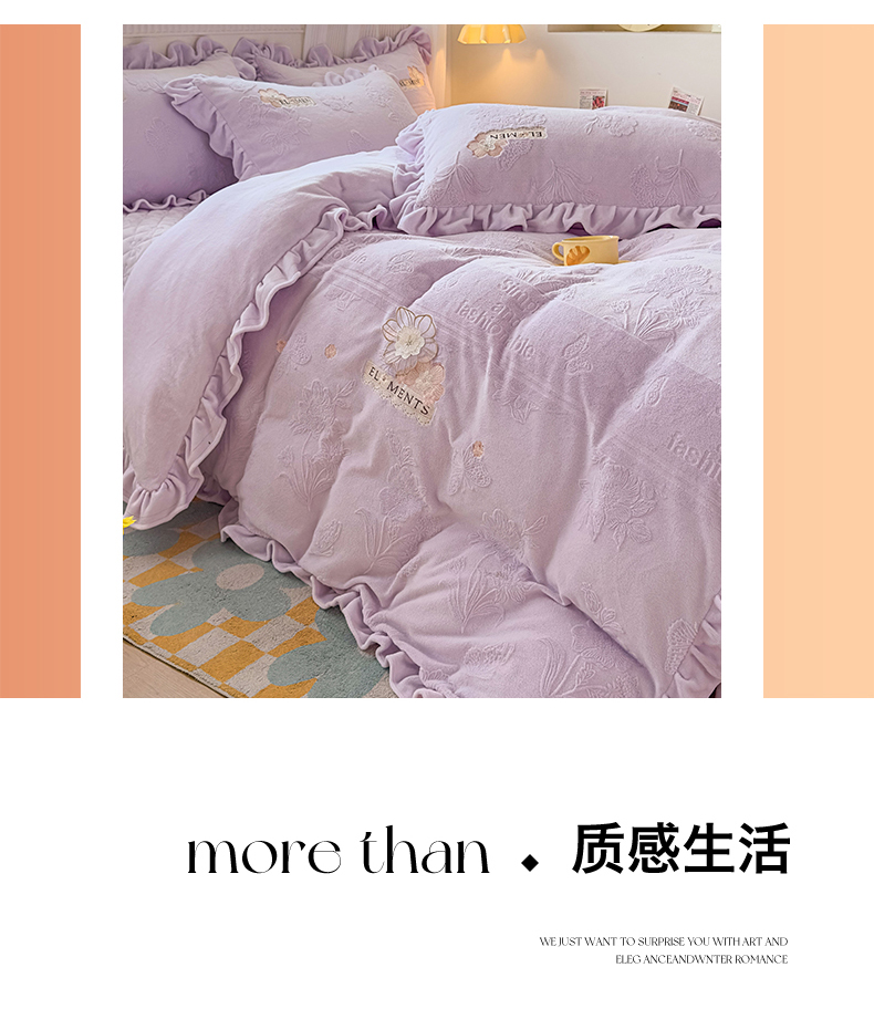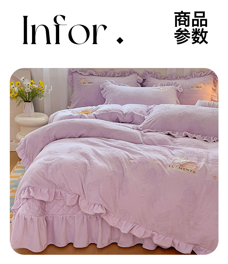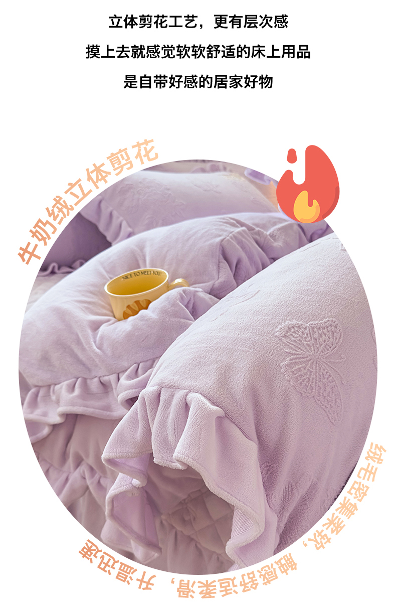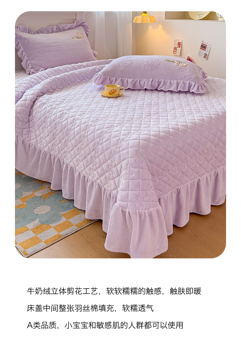 商品名称:恒爱家纺 2025新款牛奶绒立体剪花床盖四件套-心魅 心魅-浪漫紫