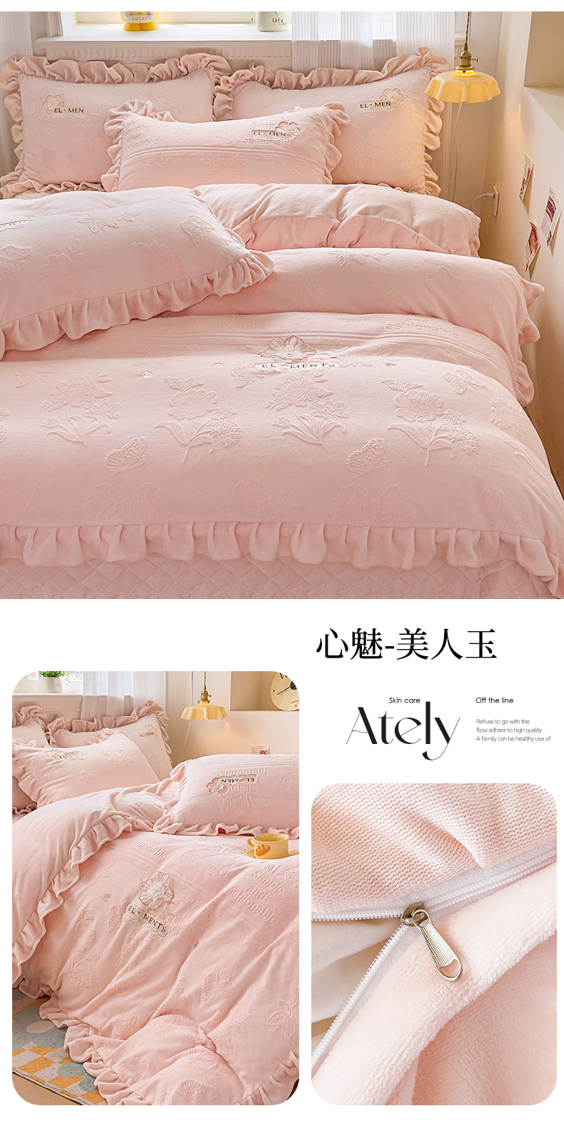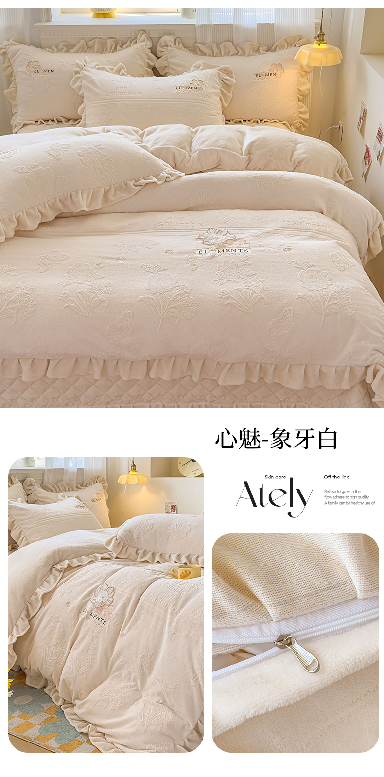(总)恒爱 2022秋冬水晶绒翩翩花舞夹棉床裙四件套,大红色,豆沙红,橄榄绿,公主粉,桔色,咖啡色,孔雀绿,拉菲红,罗兰紫,玫红色,美人玉,米白色,米驼色,抹茶绿,浅灰色,紫色