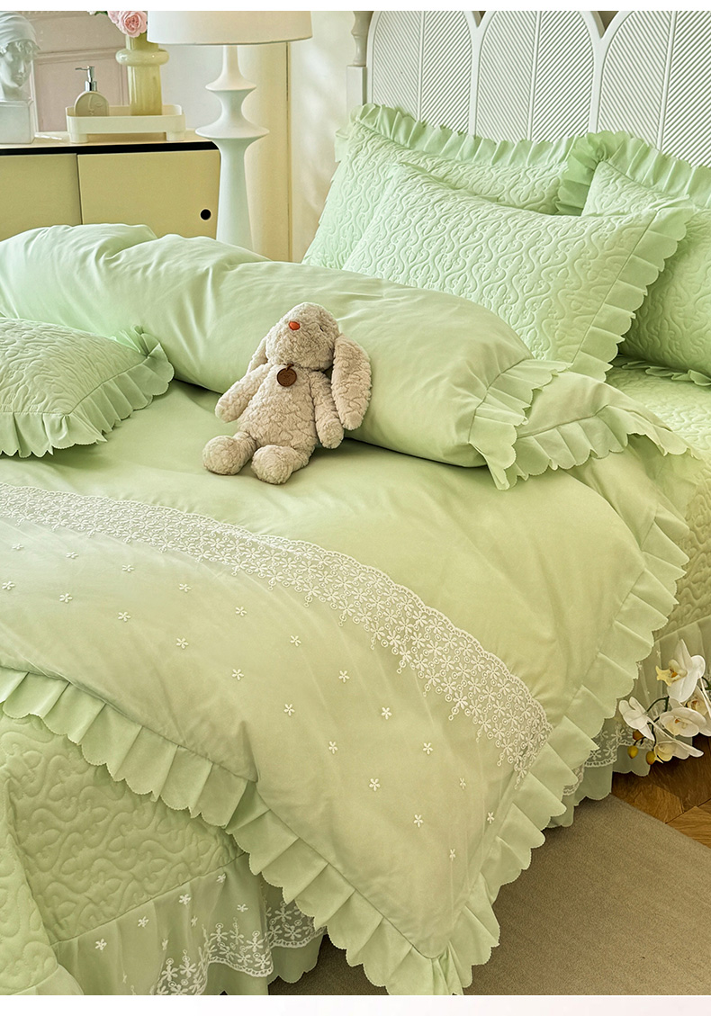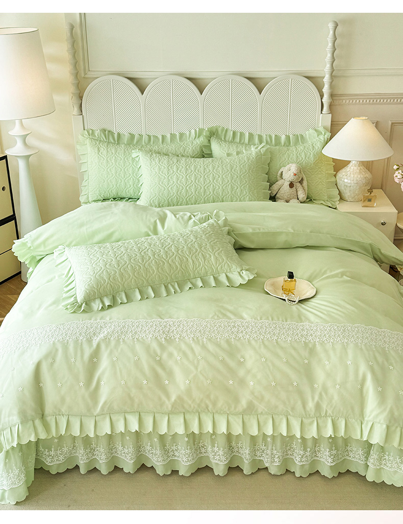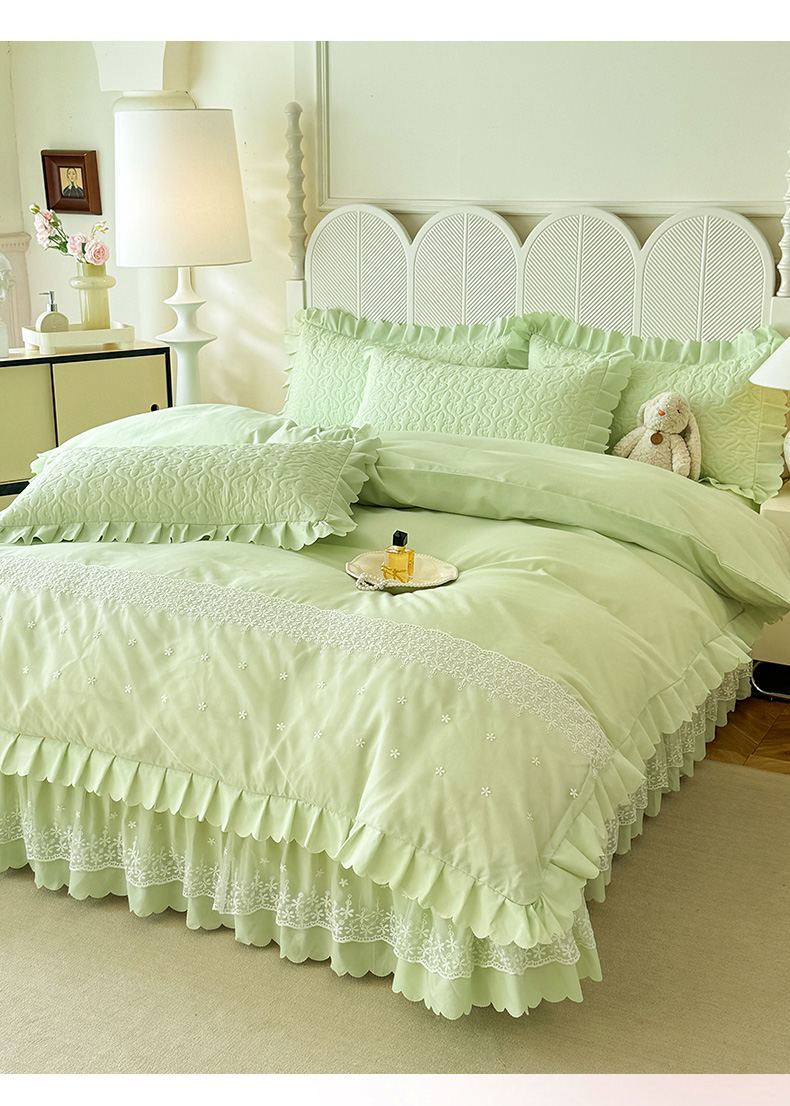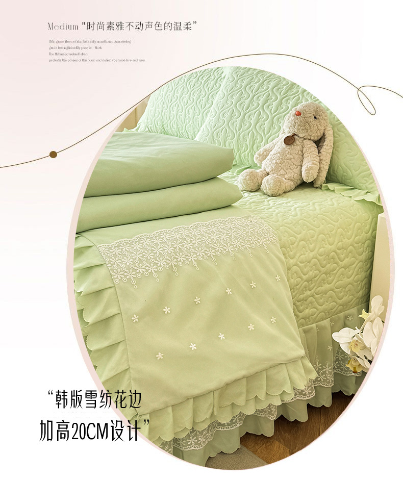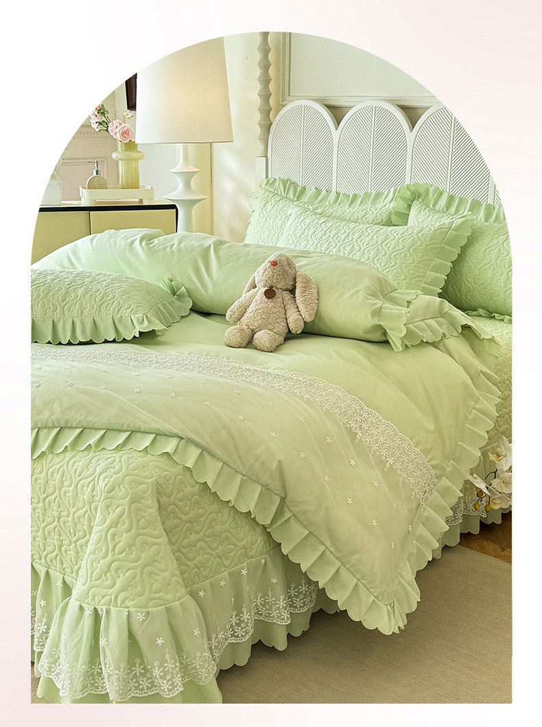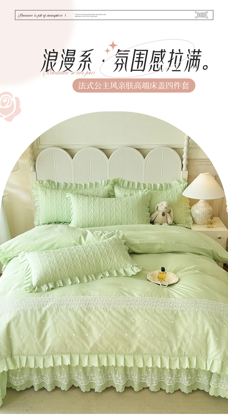 当前位置: 91家纺网 > 商品网购 > 床品套件 > 四件套 > 其它四件套 > 后庭寝室 2025新款法式公主风亲肤床盖四件套-满天星系列 满天星-嫩绿
