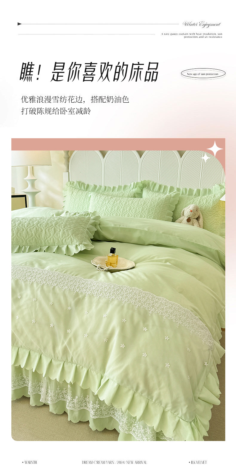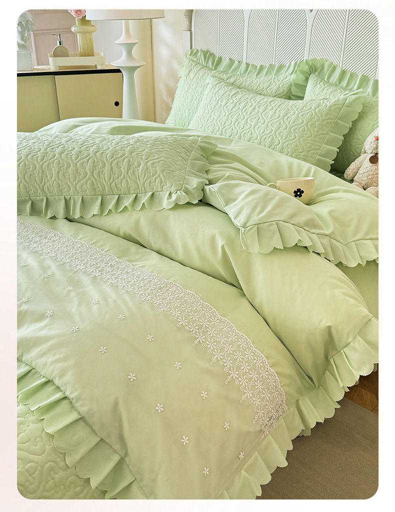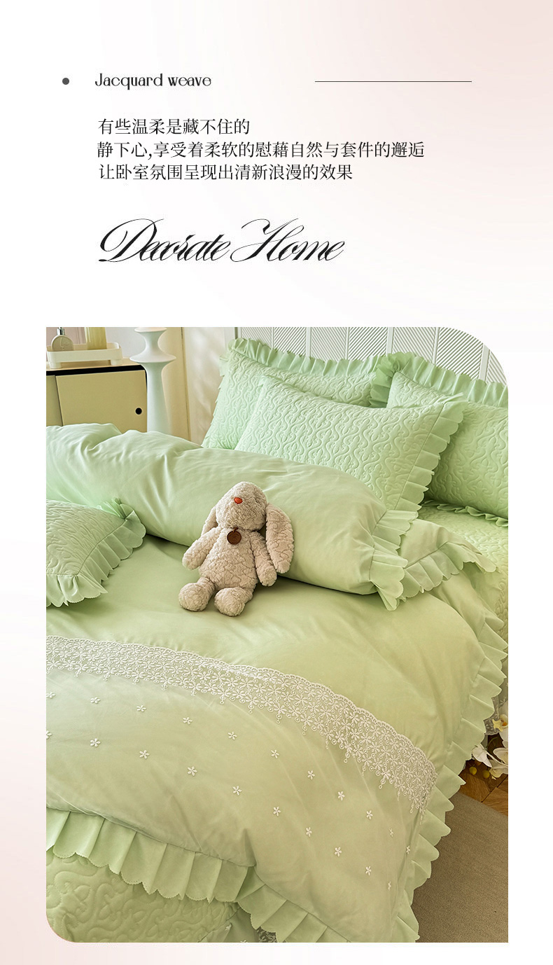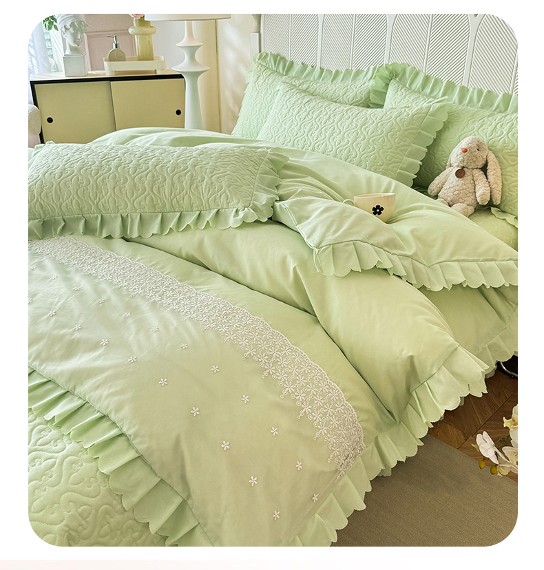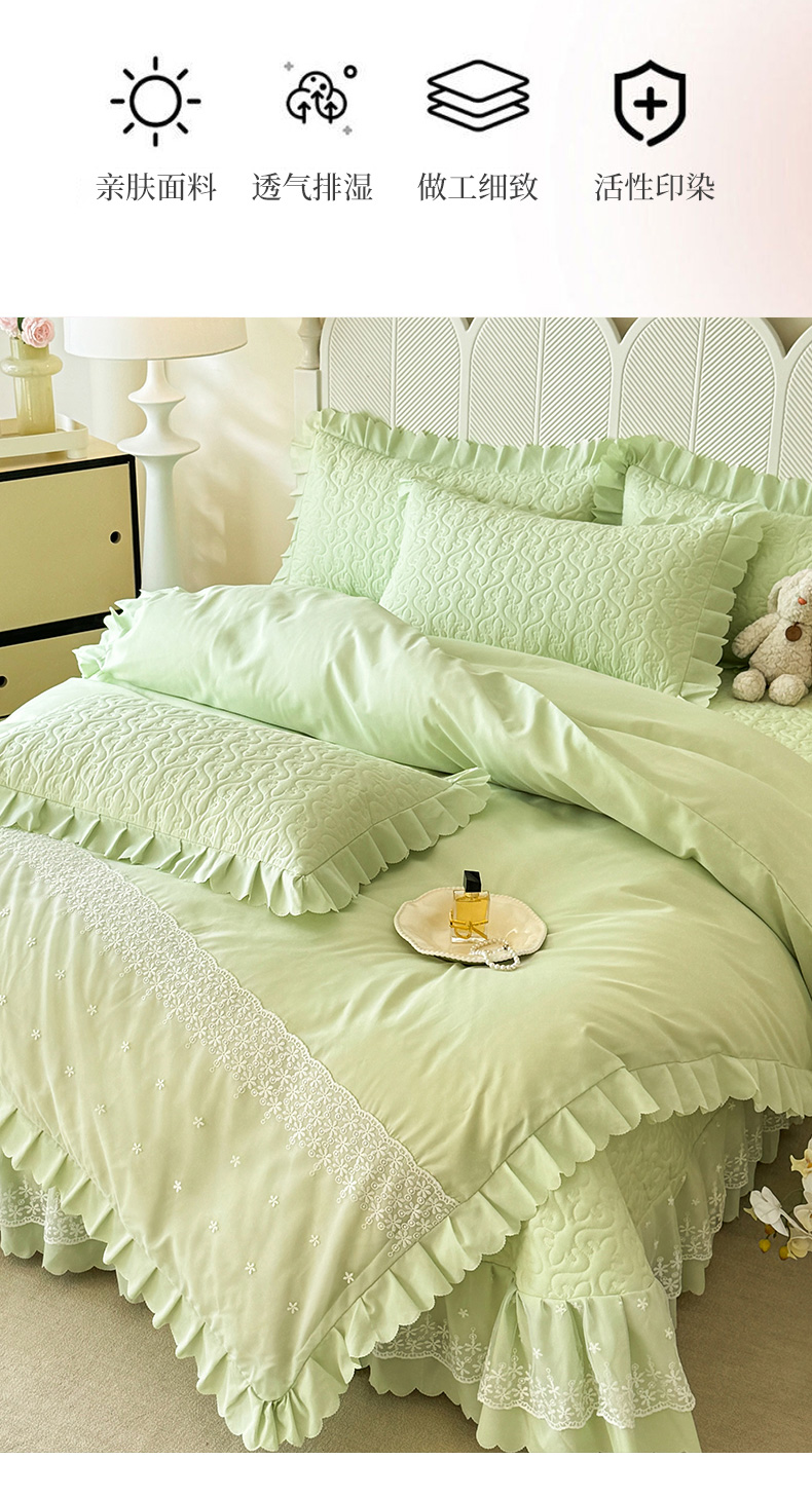 当前位置: 91家纺网 > 商品网购 > 床品套件 > 四件套 > 其它四件套 > 后庭寝室 2025新款法式公主风亲肤床盖四件套-满天星系列 满天星-嫩绿