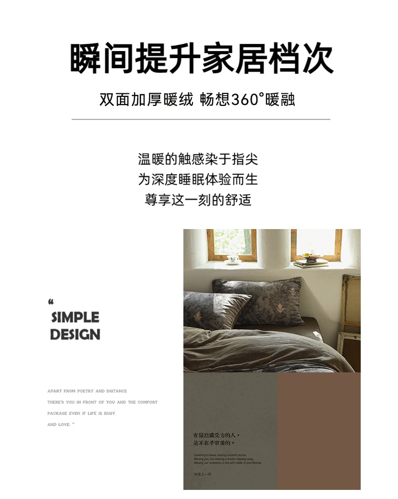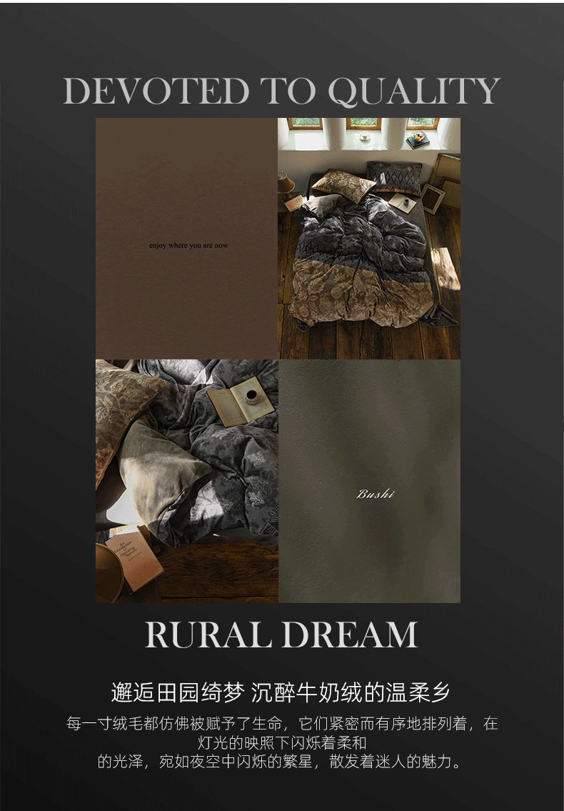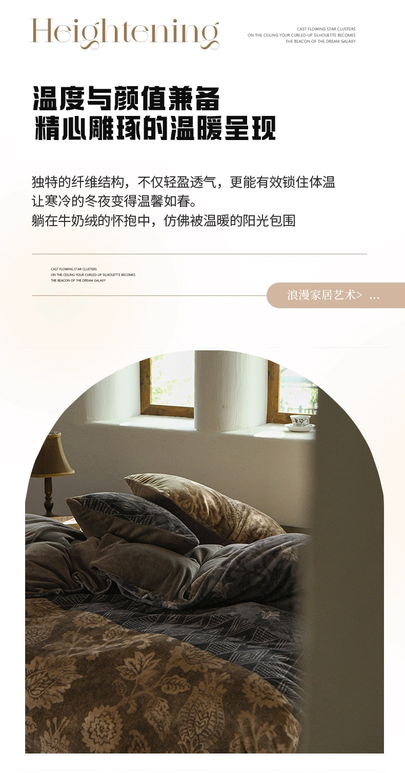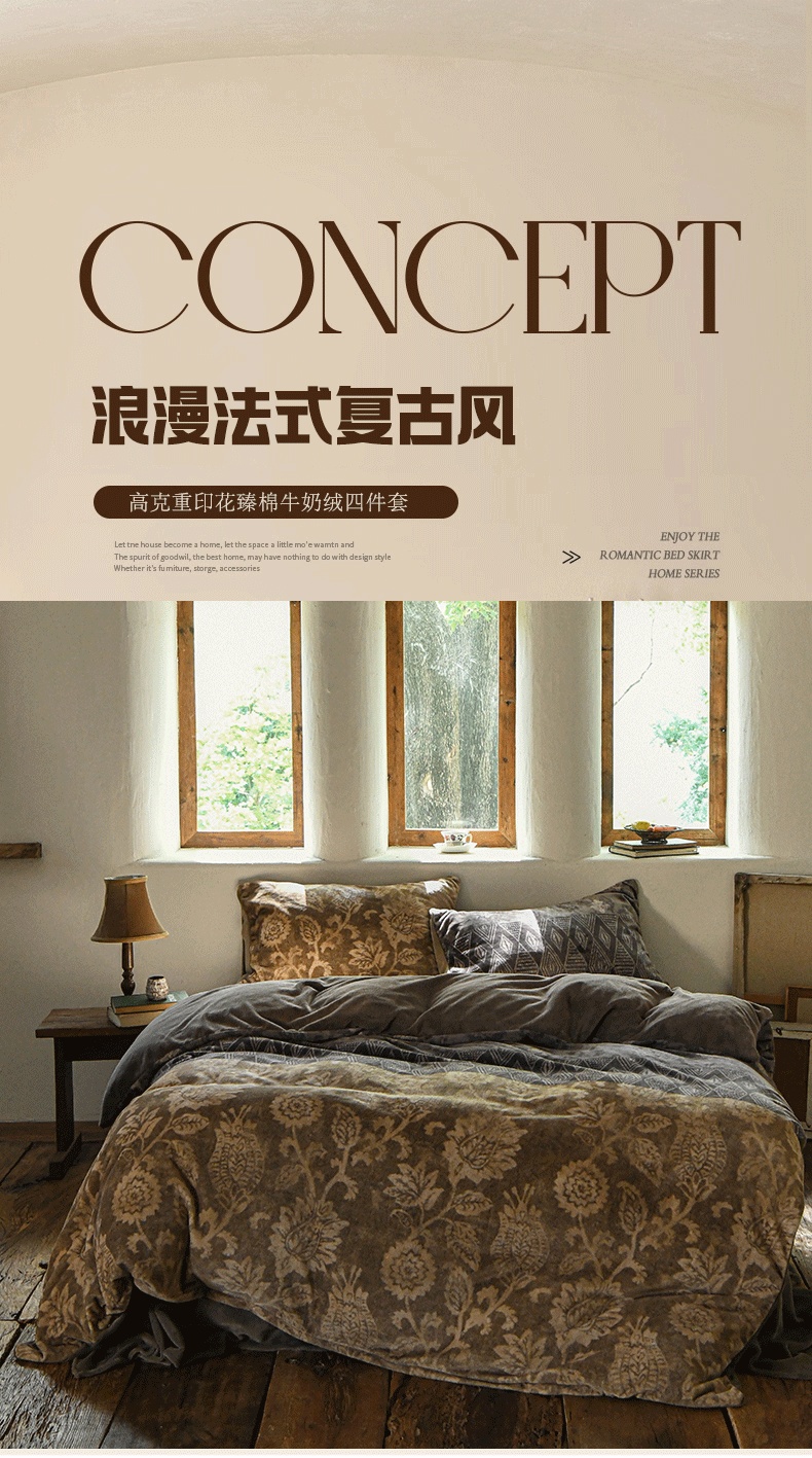 当前位置: 91家纺网 > 商品网购 > 床品套件 > 四件套 > 牛奶绒四件套 > 花漾家居 2025秋冬新品法式复古简约诧寂风牛奶绒四件套 雅致生活咖