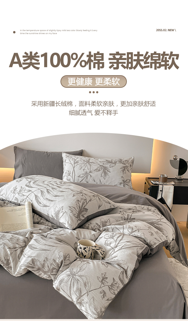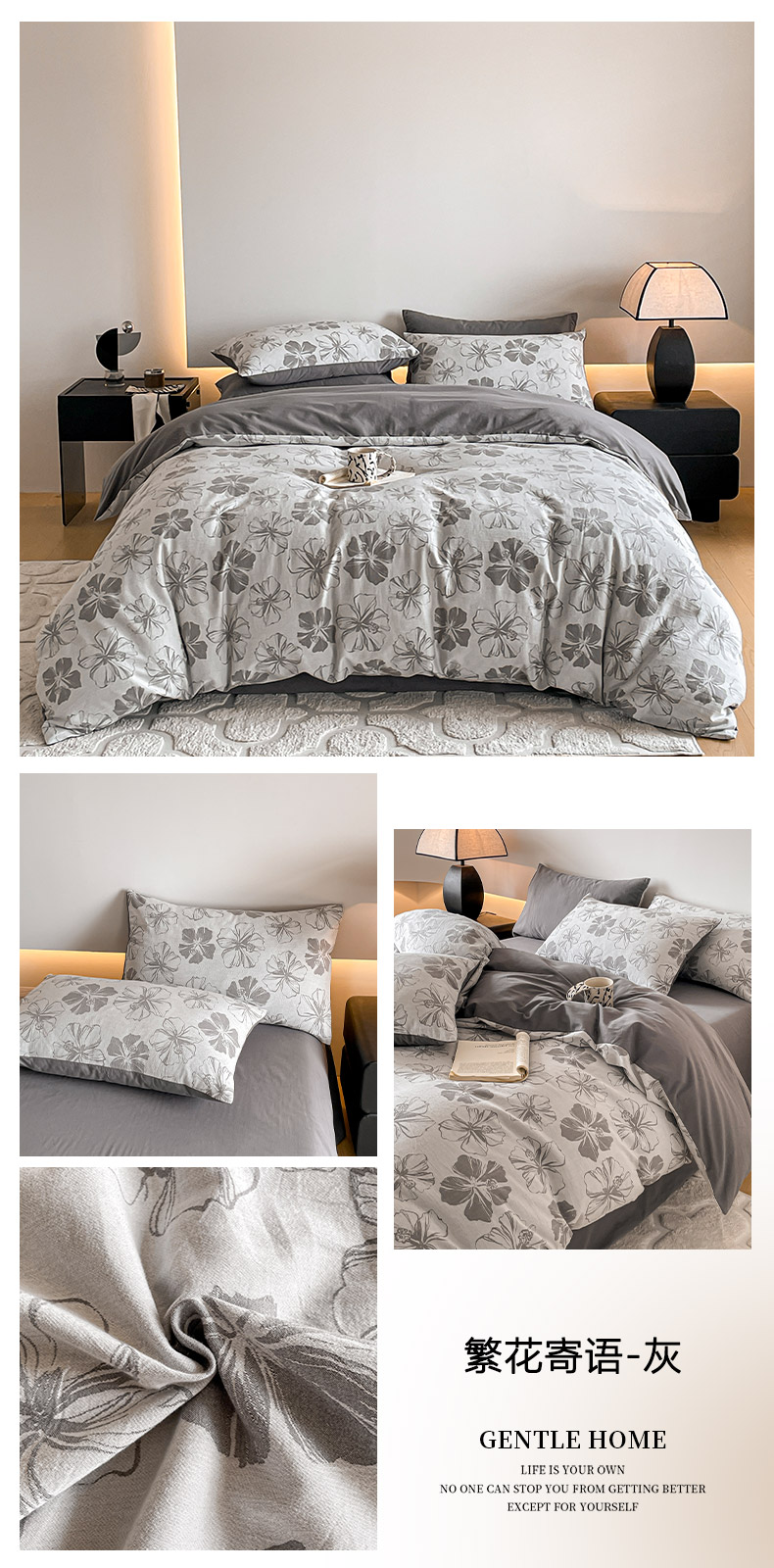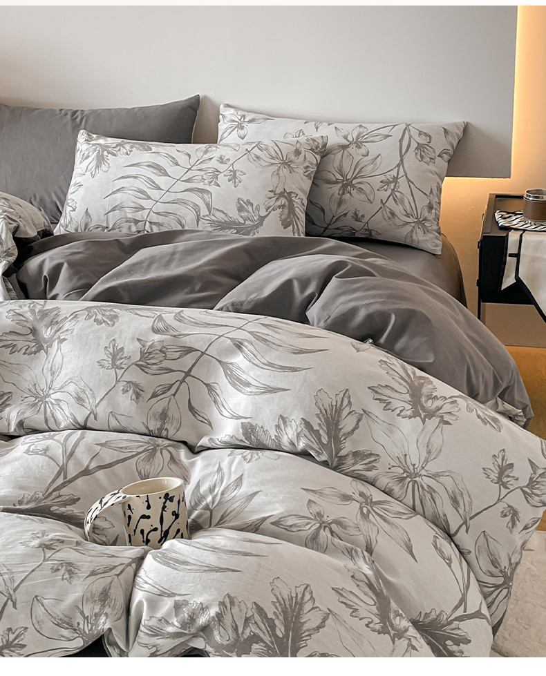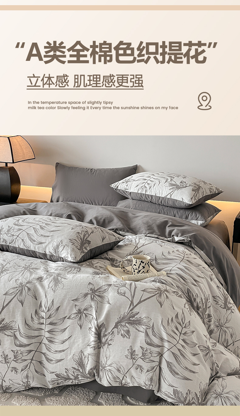 当前位置: 91家纺网 > 商品网购 > 床品套件 > 四件套 > 全棉普通四件套 > 小叮当家纺仓储工厂店 2025新款(买家秀 不断货)A类亲肤全棉纯棉色织大提花磨毛四件套床单床笠-花漾 花间入梦-灰