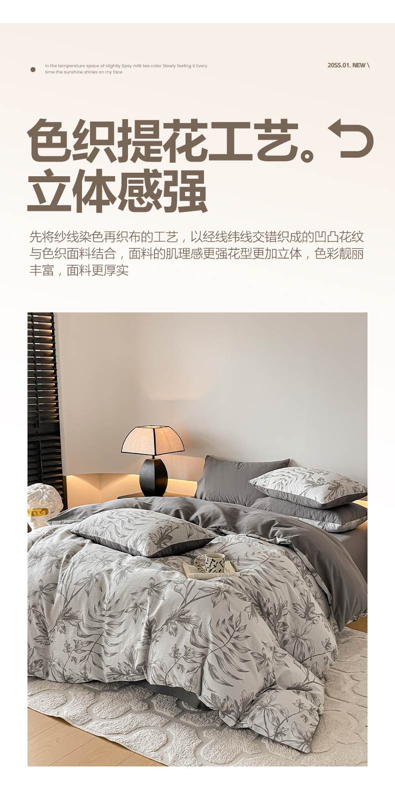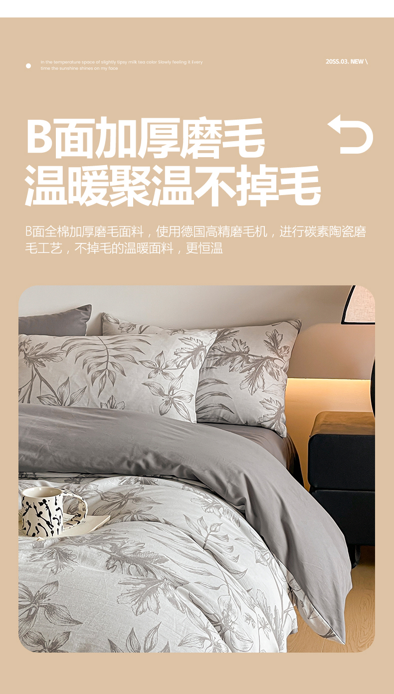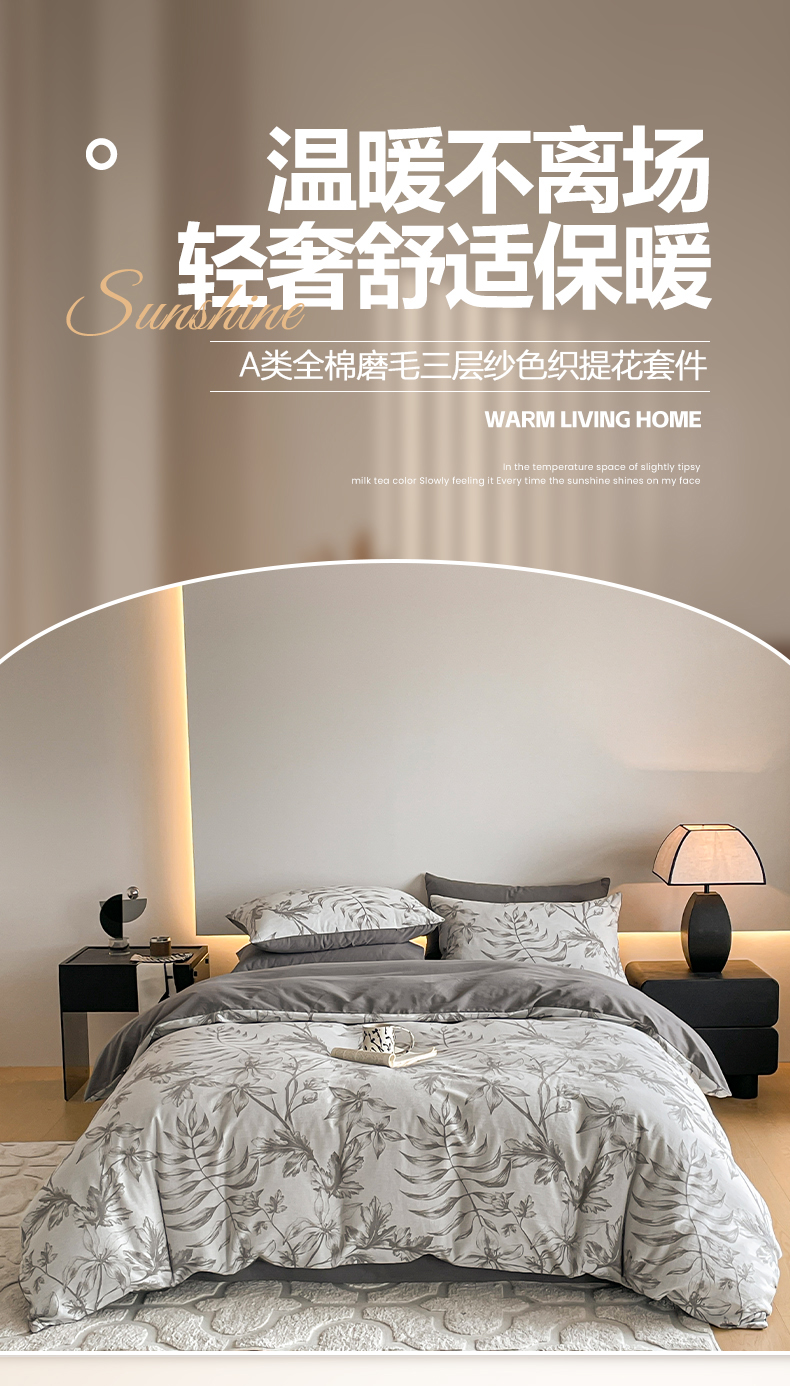当前位置: 91家纺网 > 商品网购 > 床品套件 > 四件套 > 全棉普通四件套 > 小叮当家纺仓储工厂店 2025新款(买家秀 不断货)A类亲肤全棉纯棉色织大提花磨毛四件套床单床笠-花漾 花间入梦-灰