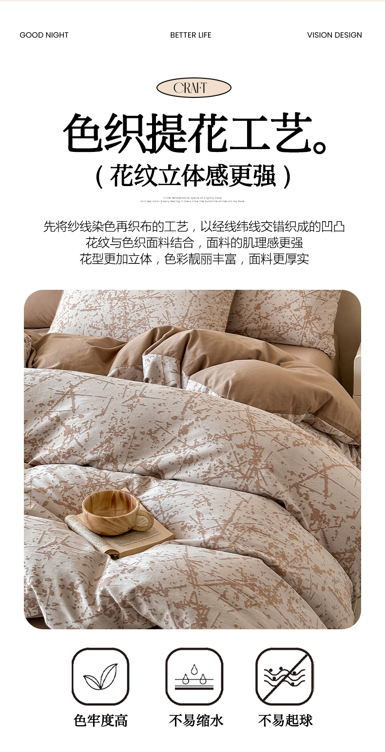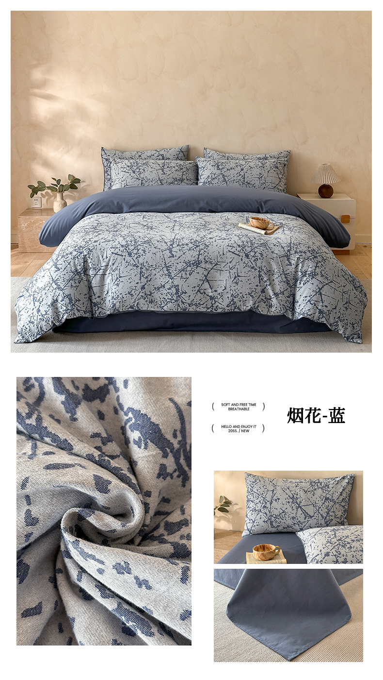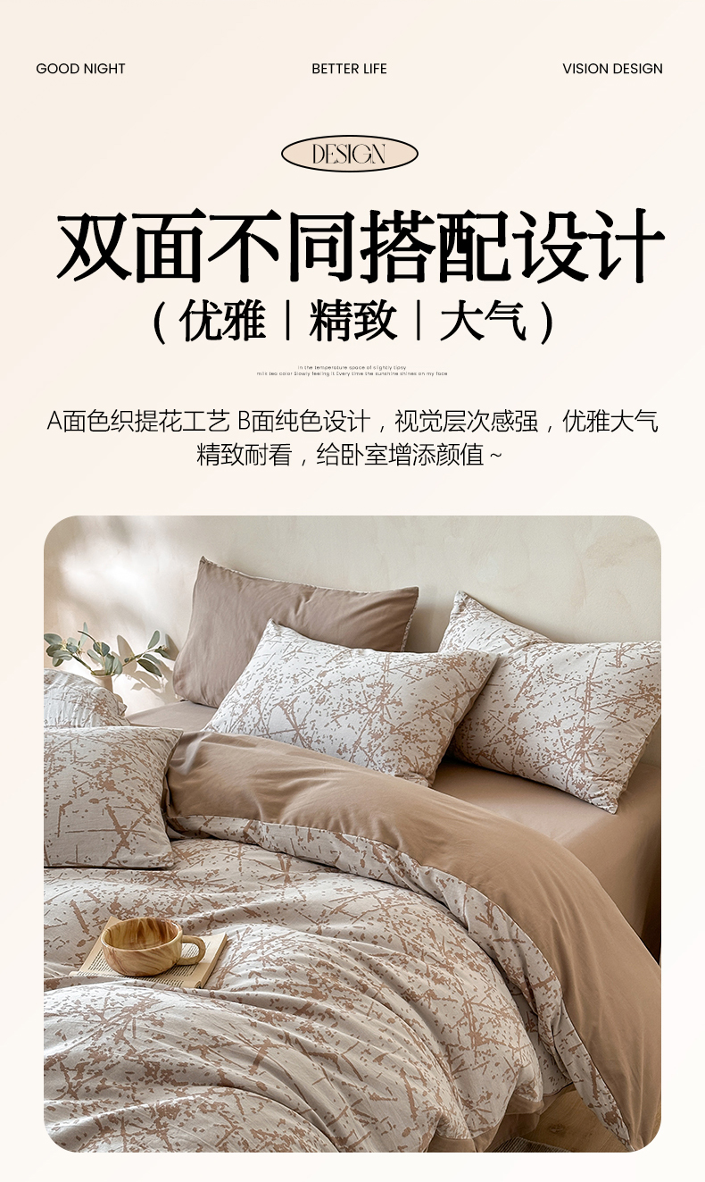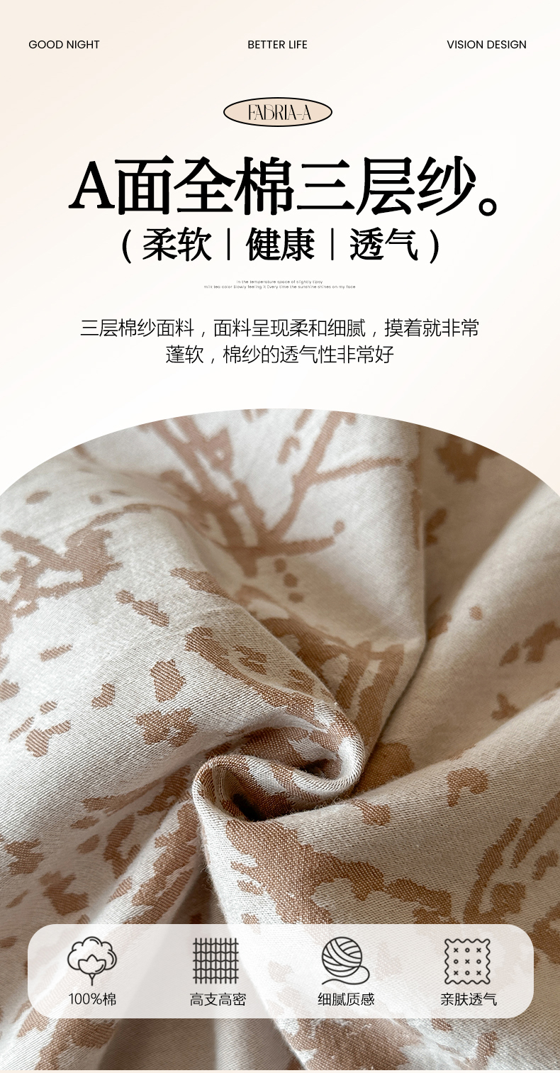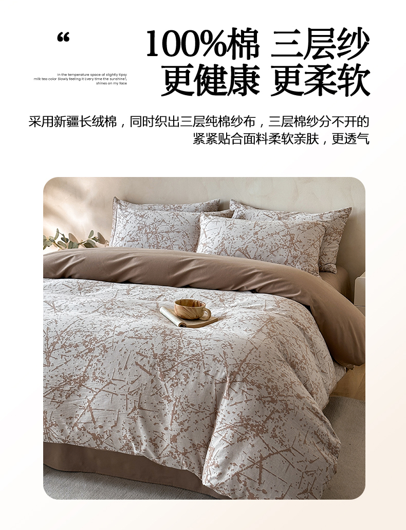 当前位置: 91家纺网 > 商品网购 > 床品套件 > 四件套 > 全棉普通四件套 > 小叮当家纺仓储工厂店 2025新款(买家秀 不断货)亲肤A类母婴级全棉纯棉三层纱色织提花磨毛四件套素影 素影-烟花-咖