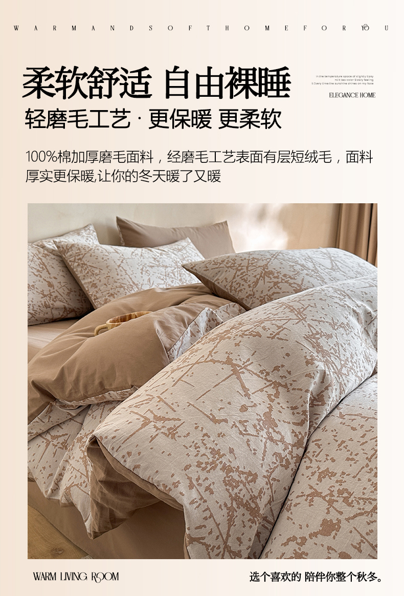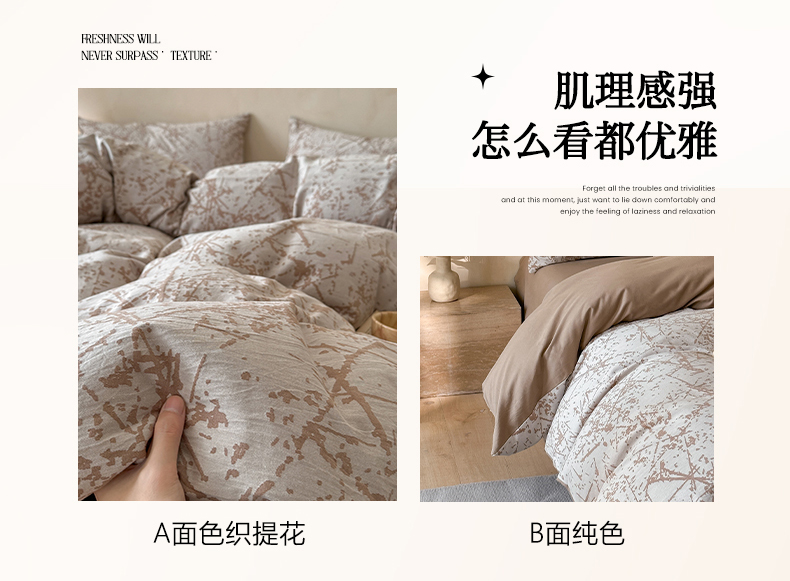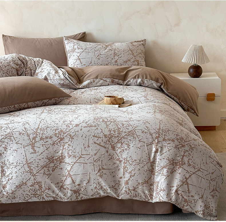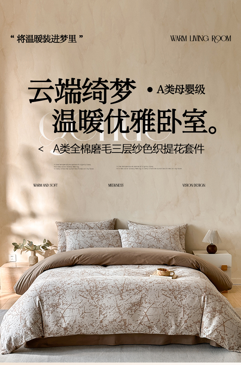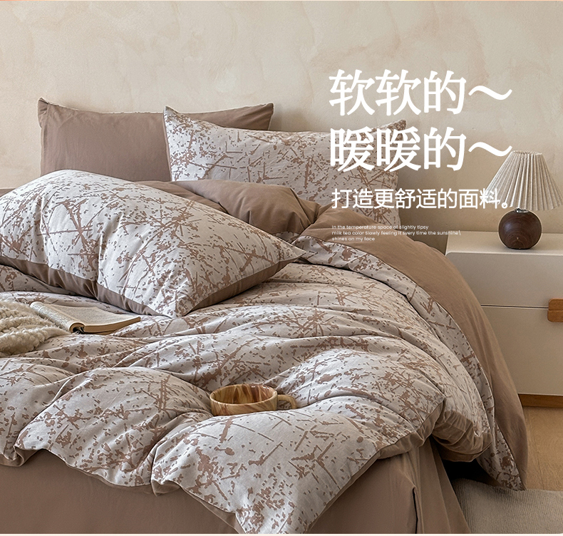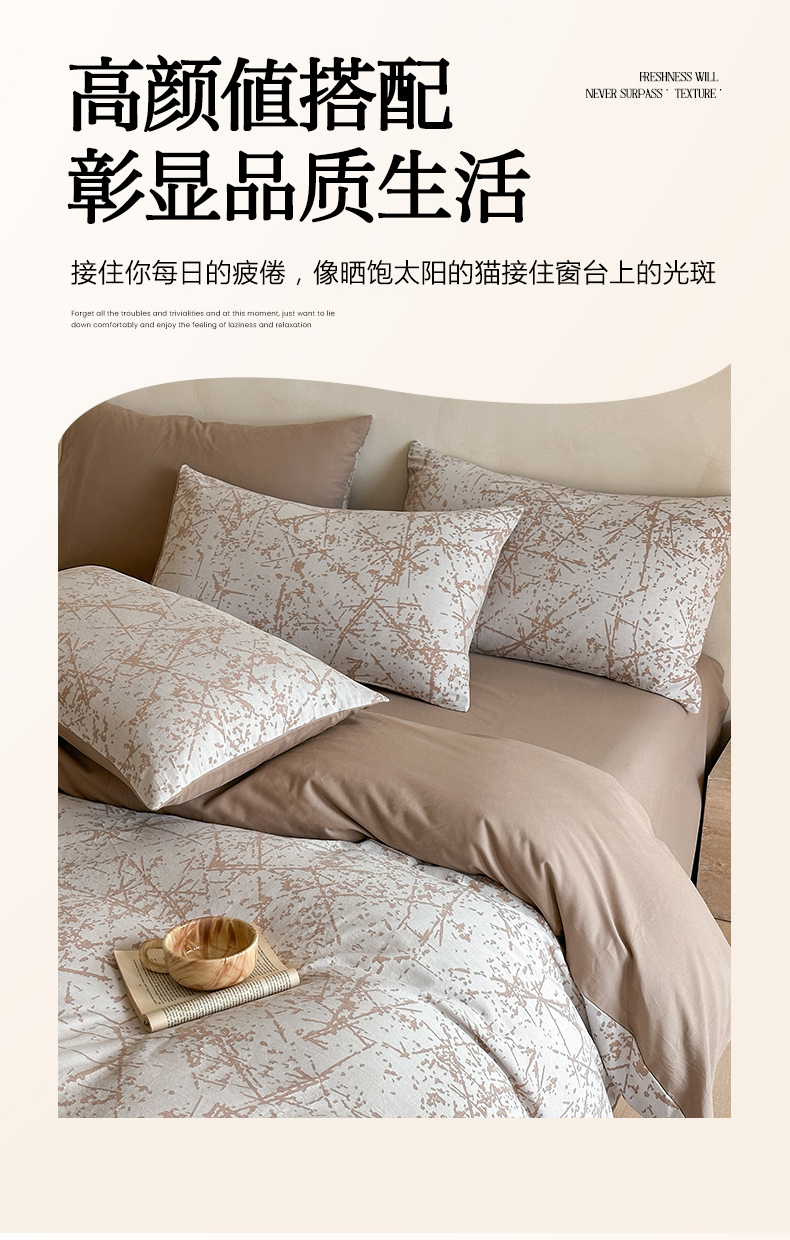 当前位置: 91家纺网 > 商品网购 > 床品套件 > 四件套 > 全棉普通四件套 > 小叮当家纺仓储工厂店 2025新款(买家秀 不断货)亲肤A类母婴级全棉纯棉三层纱色织提花磨毛四件套素影 素影-烟花-咖