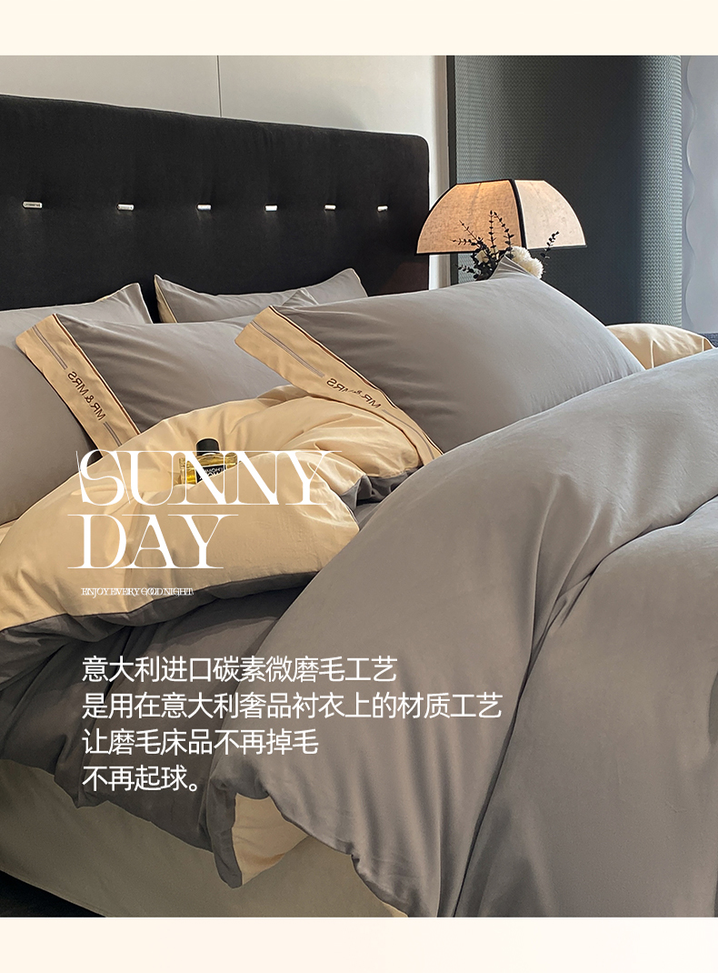小叮当家纺仓储工厂店 2025新款 (买家秀 不断货)更细腻A类全棉纯棉100支长绒棉磨毛四件套不毛 慕斯灰