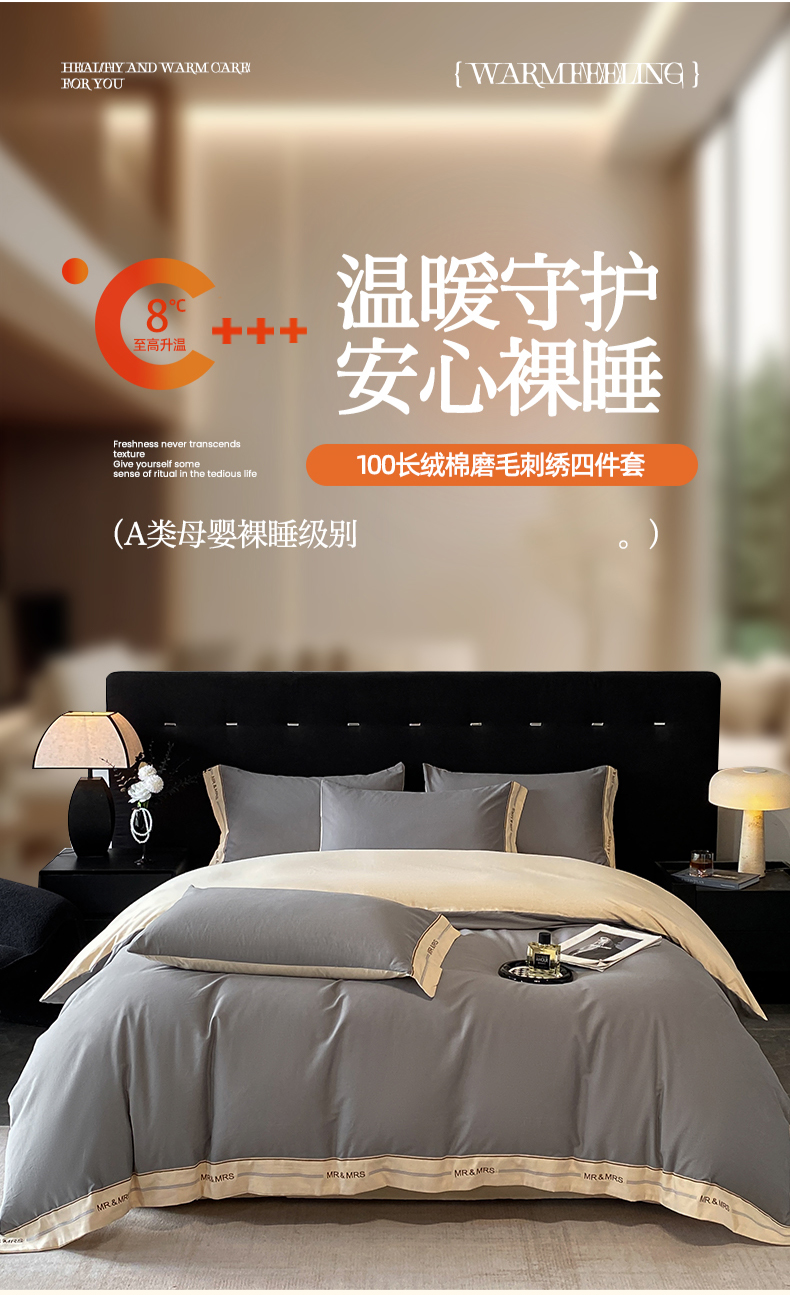 商品名称:小叮当家纺仓储工厂店 2025新款 (买家秀 不断货)更细腻A类全棉纯棉100支长绒棉磨毛四件套不毛 慕斯灰