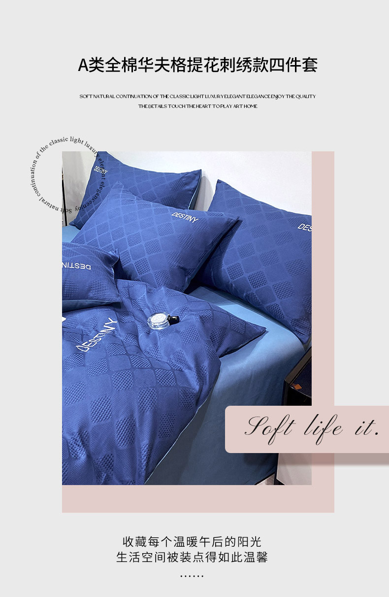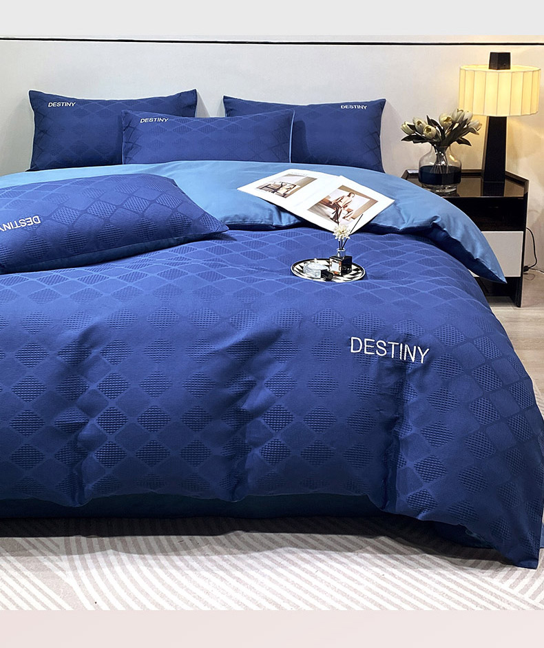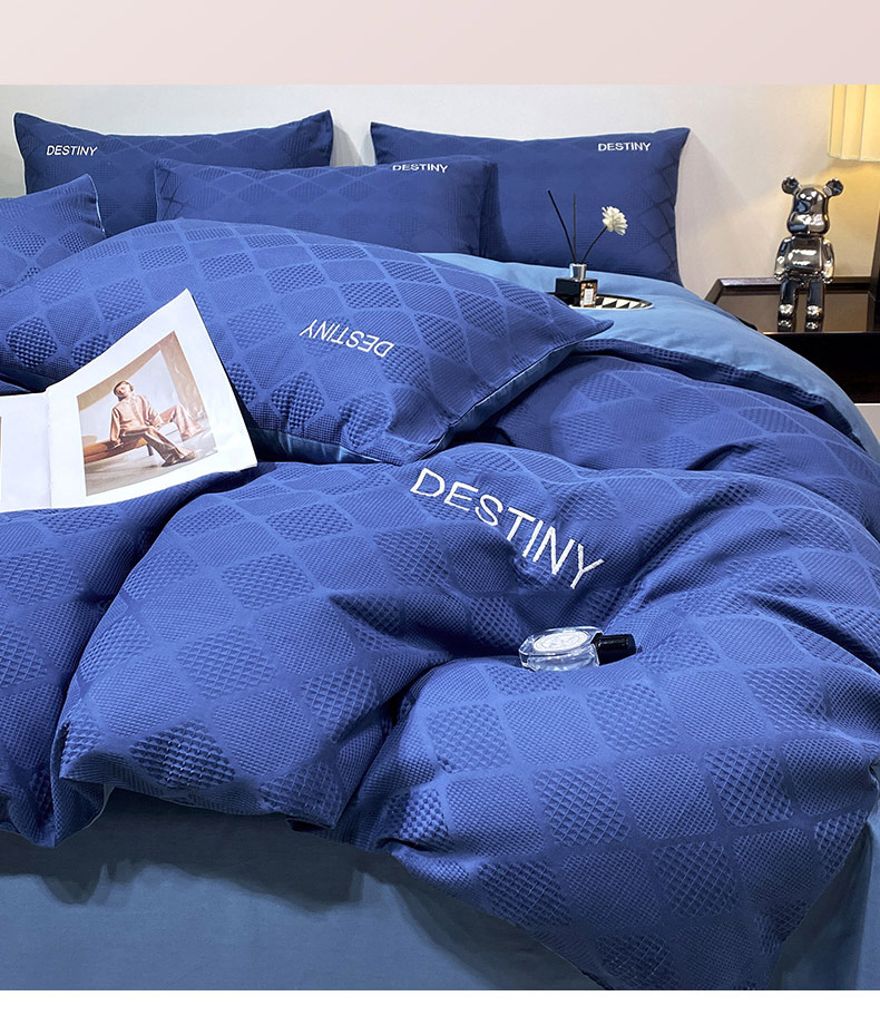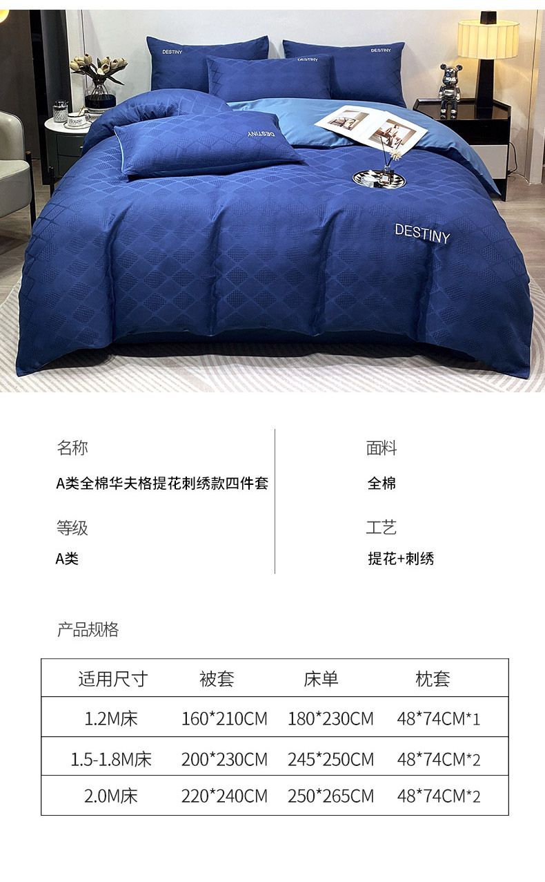 当前位置: 91家纺网 > 商品网购 > 床品套件 > 四件套 > 全棉普通四件套 > 小叮当家纺仓储工厂店 2025新款秋冬(热买家秀不断货)A类母婴级亲肤全棉纯棉华夫格提花纯棉刺绣四件套 菱形格-灰兰