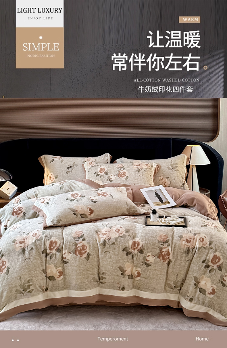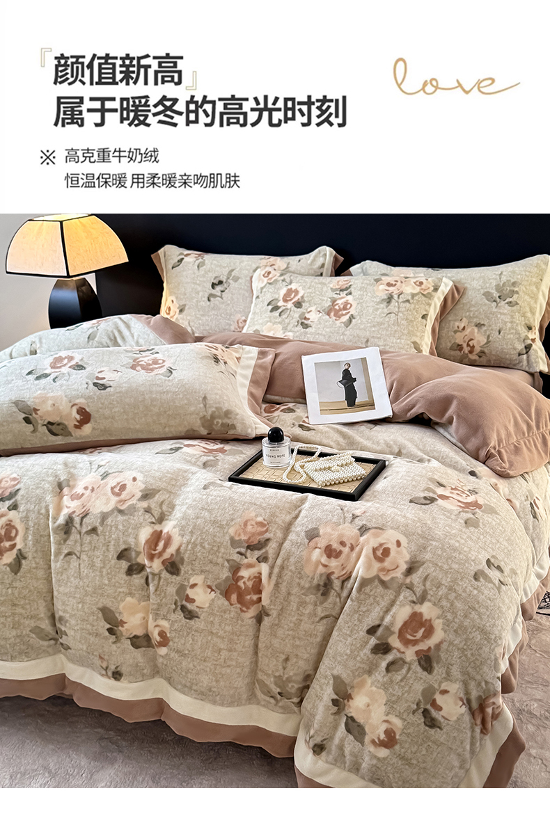 当前位置: 91家纺网 > 商品网购 > 床品套件 > 四件套 > 牛奶绒四件套 > KA家纺 2025新款秋冬轻奢高克重双拼角牛奶绒四件套 木棉花