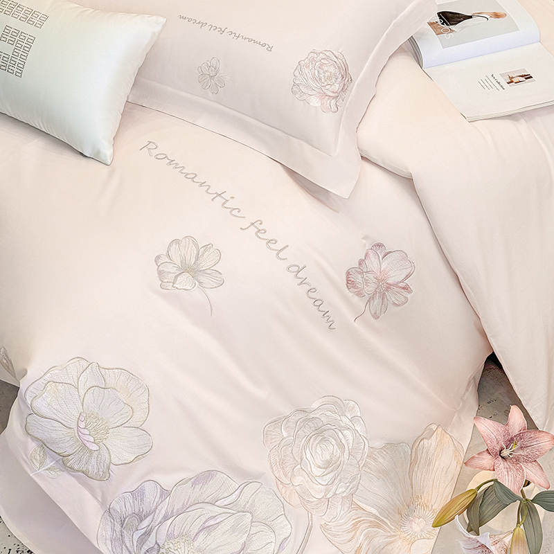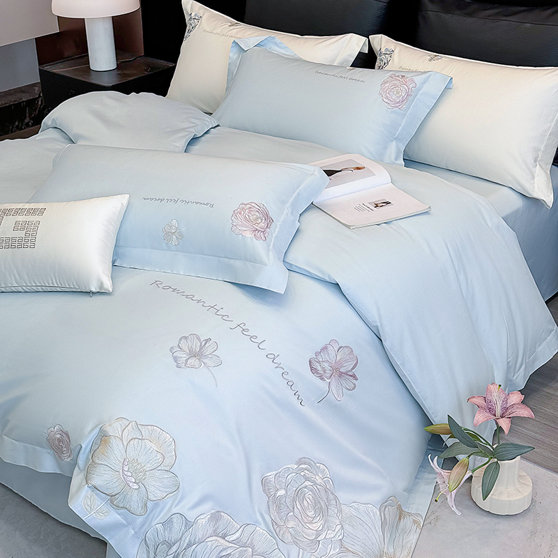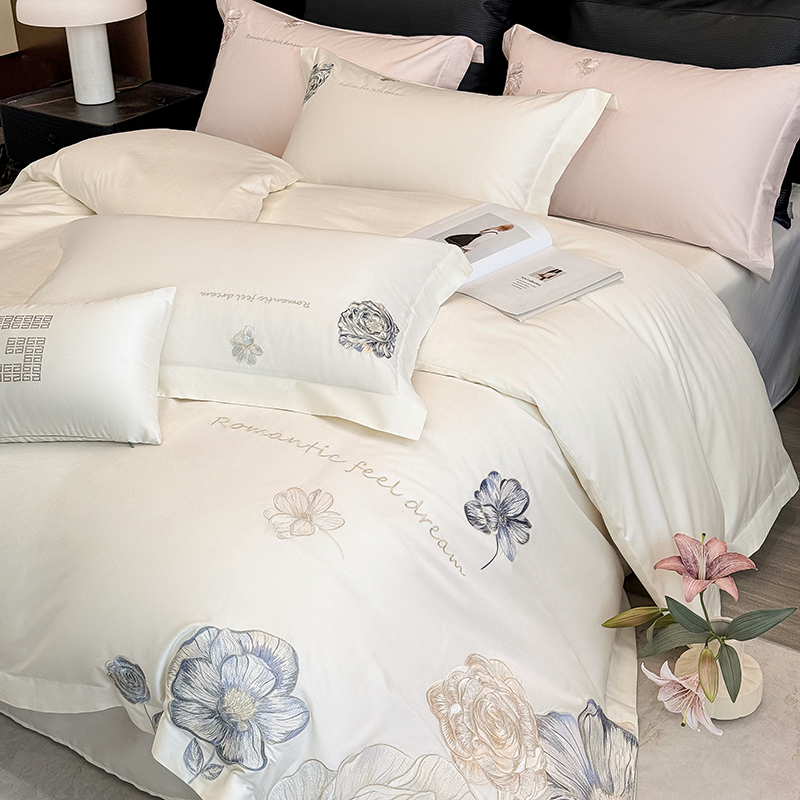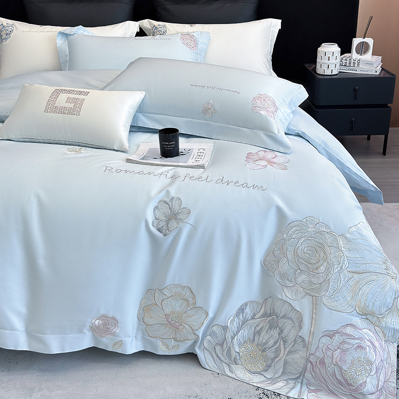 (总)优悦生活馆 2025新款全棉长绒棉四件套-梦想花园,梦想花园-海峰蓝,梦想花园-童话粉,梦想花园-云朵白