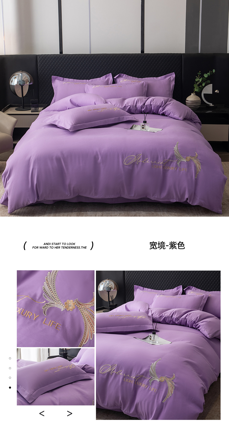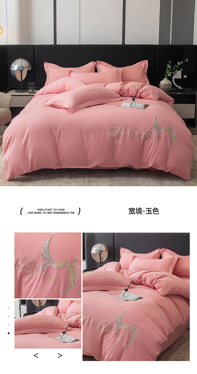 商品名称:悦织湾家纺 90克磨毛刺绣纯色四件套2025新款轻奢韩版公主风精致床上用品绣花亲肤水洗棉4件套 宽境-玉色