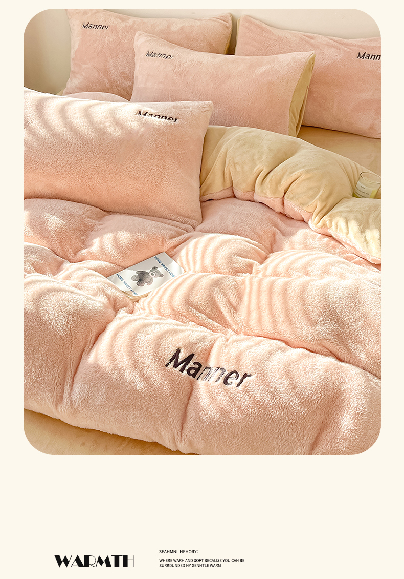 当前位置: 91家纺网 > 商品网购 > 床品套件 > 四件套 > 牛奶绒四件套 > 梦幻之城 2025新款牛奶绒刺绣四件套-凯勒系列B款 凯勒-暖心粉+香槟色