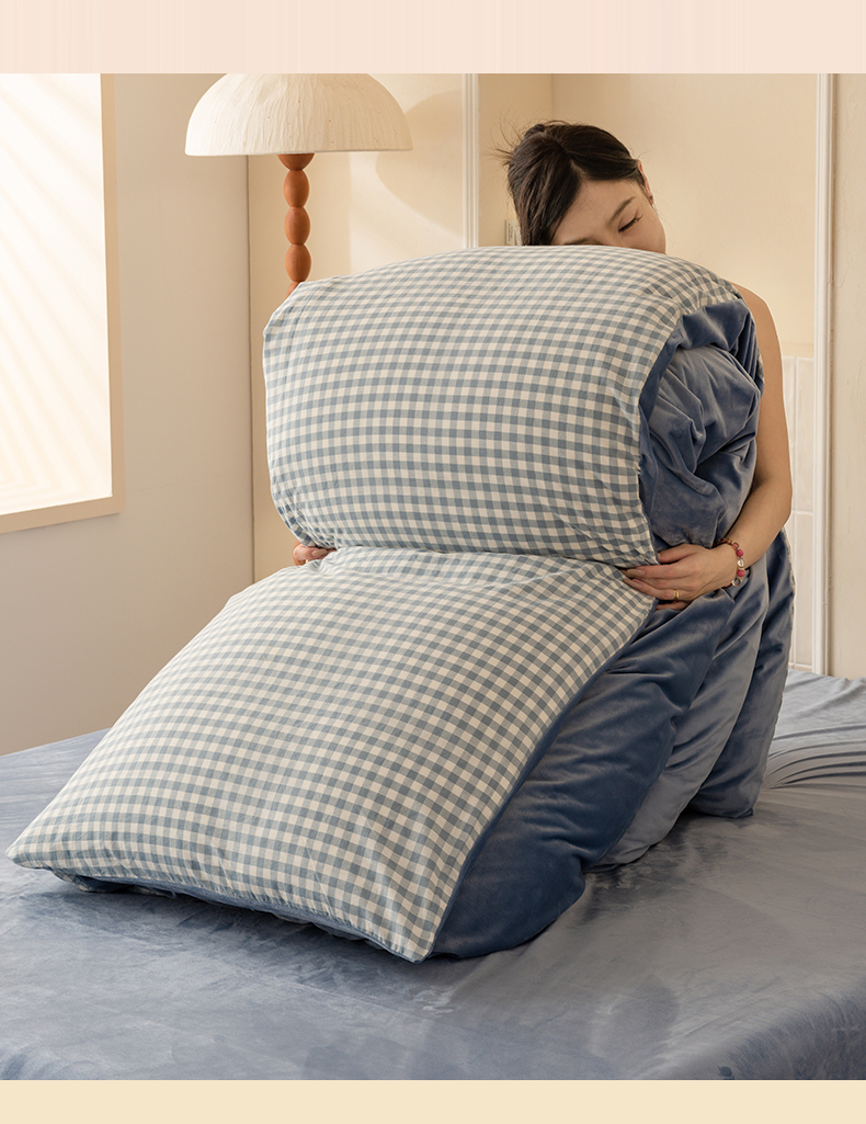 • 91家纺网 家纺一手货源 找家纺 雯雨家纺 2025新款一面全棉一面牛奶绒可拆洗冬被被子被芯春秋被被子被芯 棉绒-蓝小格