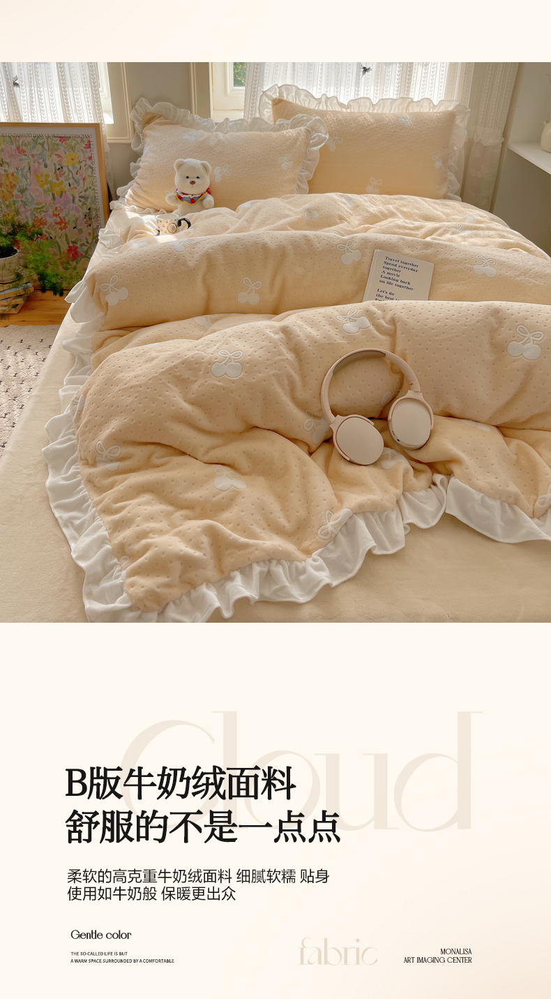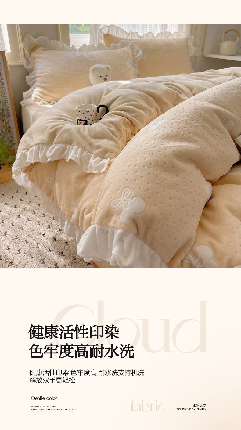 (总)三朵家纺 2025新款韩系花边雕花绒牛奶绒法莱绒四件套,茶语山樱-黄,茶语山樱-蓝,海棠秘境,精灵兔,恋花小经粉,恋花小经黄,绿野仙踪,蔷薇梦境,拾光里里,屋顶花园-黄,屋顶花园-紫,星点绮梦,鸢尾浅梦